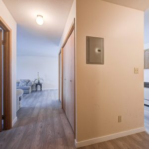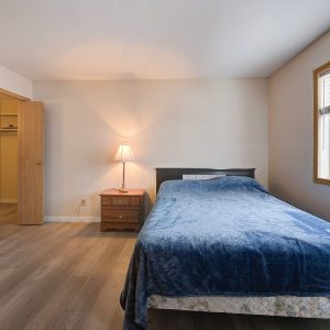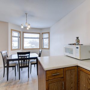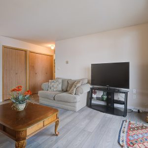 Welcome to Bridgewater Estates. This large 1-bedroom top floor corner unit is a rare find at this price point, and it’s just waiting for your vision and fresh ideas. The corner unit gives you the luxury of having neighbours on only one side, plus the extra windows surrounding the living and dining area flood the home with an abundance of natural light. Freshly painted with updated grey laminate flooring.