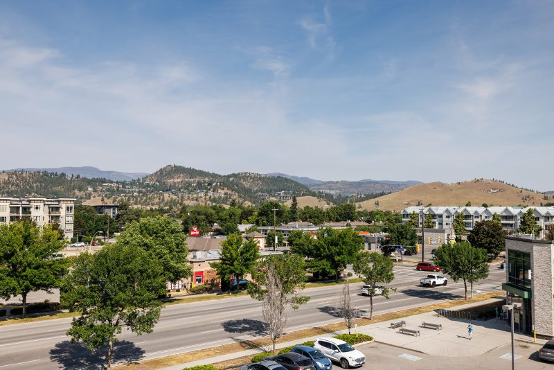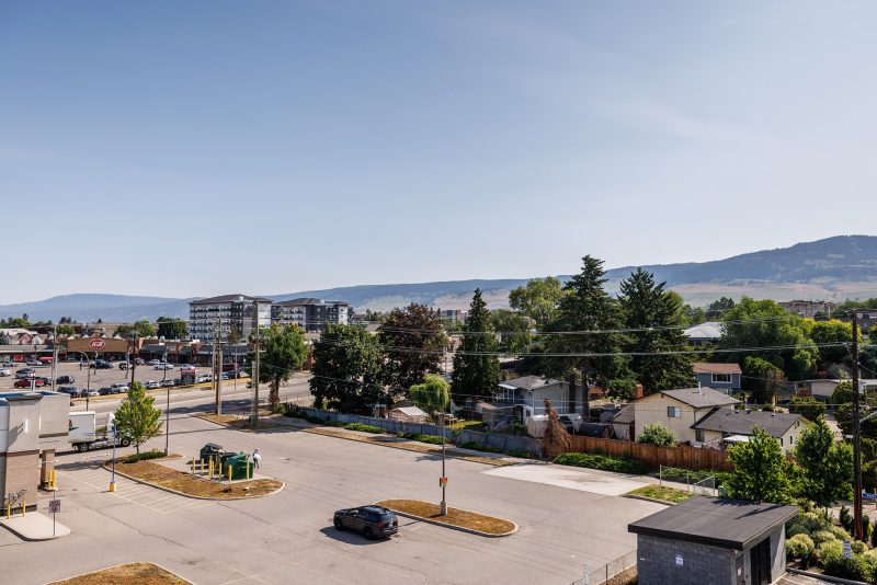 Enjoy casual dining or entertaining at the oversized peninsula. The bright and airy living area flows seamlessly to a covered deck with serene mountain views, a perfect extension of your living space. Retreat to the generous primary bedroom complete with a large walk-in closet and built-in shelving. The 4-piece bathroom includes a modern vanity with quartz counters and a tub/shower combo. Additional highlights include in-suite laundry, a secure underground parking stall, storage locker, and access to amenities including a fitness centre and party room. Just minutes to UBCO, shopping, the airport, and downtown. Exceptional value in a central location.