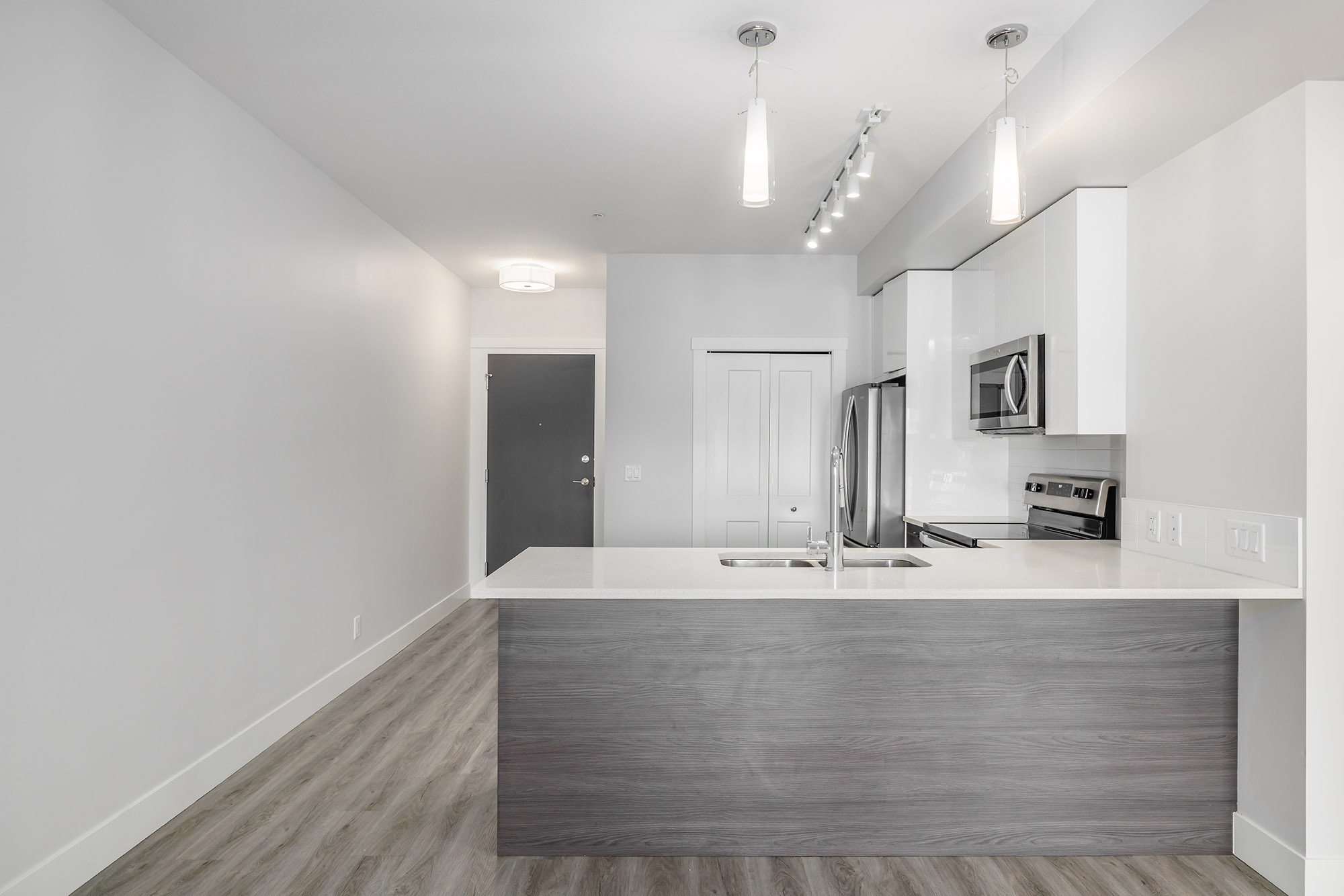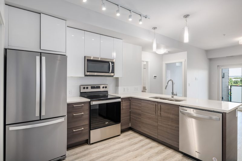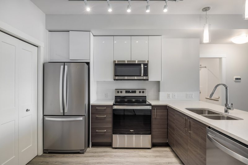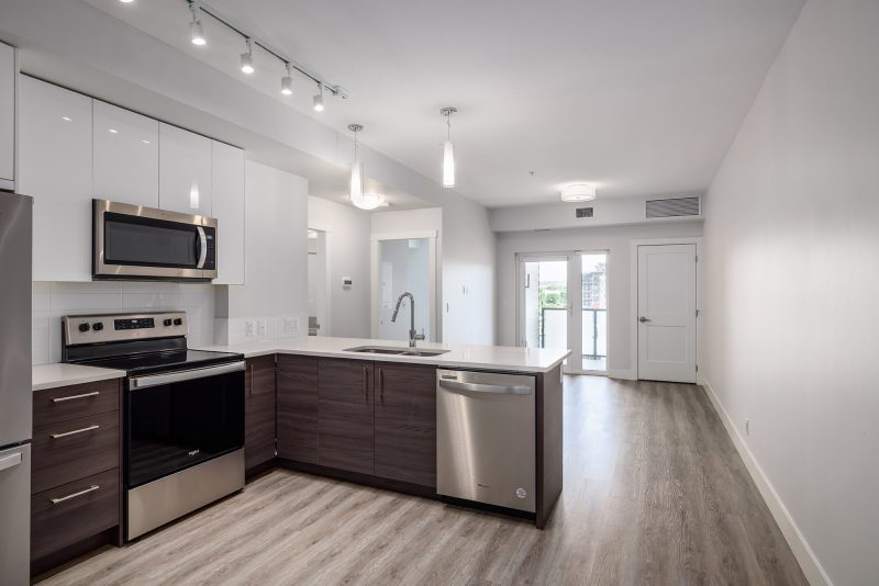 Welcome to SOHO, where modern design meets everyday convenience. This spacious 1 bedroom, 1 bathroom home offers the perfect blend of style and functionality, ideal for first-time buyers, students, or investors alike. Thoughtfully designed with an open-concept layout, 9-ft. ceilings, and large north-facing windows that fill the space with natural light. The sleek designer kitchen is a standout feature, with white shaker cabinets, rich wood-tone lowers, quartz countertops, and a Whirlpool stainless steel appliance package.