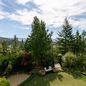 Outside, enjoy a pitch-and-putt golf green, sand trap, lush gardens, and water features. Additional highlights include slop-dash stucco, geothermal heating and cooling, heat recovery ventilation, water filtration, and cherry wide-plank hardwood floors. A detailed list of extras is available by request. Located just minutes from UBCO, the airport, and Kelowna’s best amenities.
