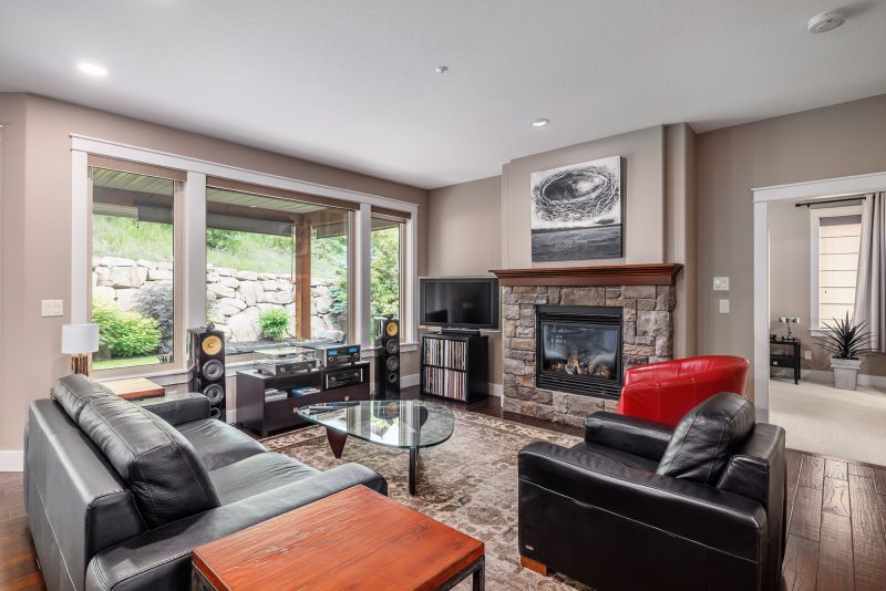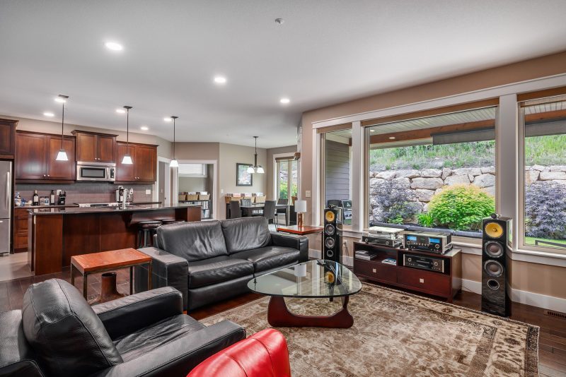 Immaculately maintained and thoughtfully designed, this 2 bedroom plus den, 2 bathroom rancher in Predator Ridge offers relaxed luxury in a world-class golf community. The open-concept layout is anchored by a chef-inspired kitchen featuring quartz countertops, heated tile floors, high-end KitchenAid appliances, a walk-in pantry, and a centre island with seating for four. Hardwood floors and expansive windows create a bright and seamless flow into the dining and living areas, where a stone-surround gas fireplace adds warmth and charm.