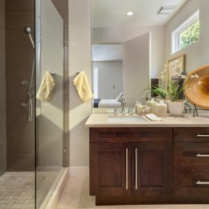 The gourmet kitchen is perfect for entertaining, complete with custom cabinetry, expansive counters, professional-grade appliances—including a gas range, double oven, and dual dishwashers plus a charming breakfast nook with lake views and patio access. The generous primary suite offers direct patio access, a spa-inspired ensuite, and a walk-in closet with a skylight and center island.