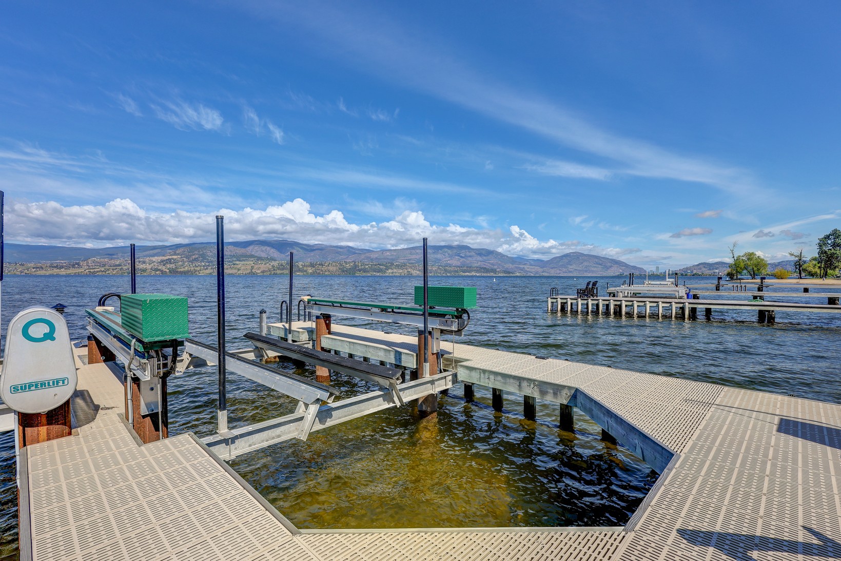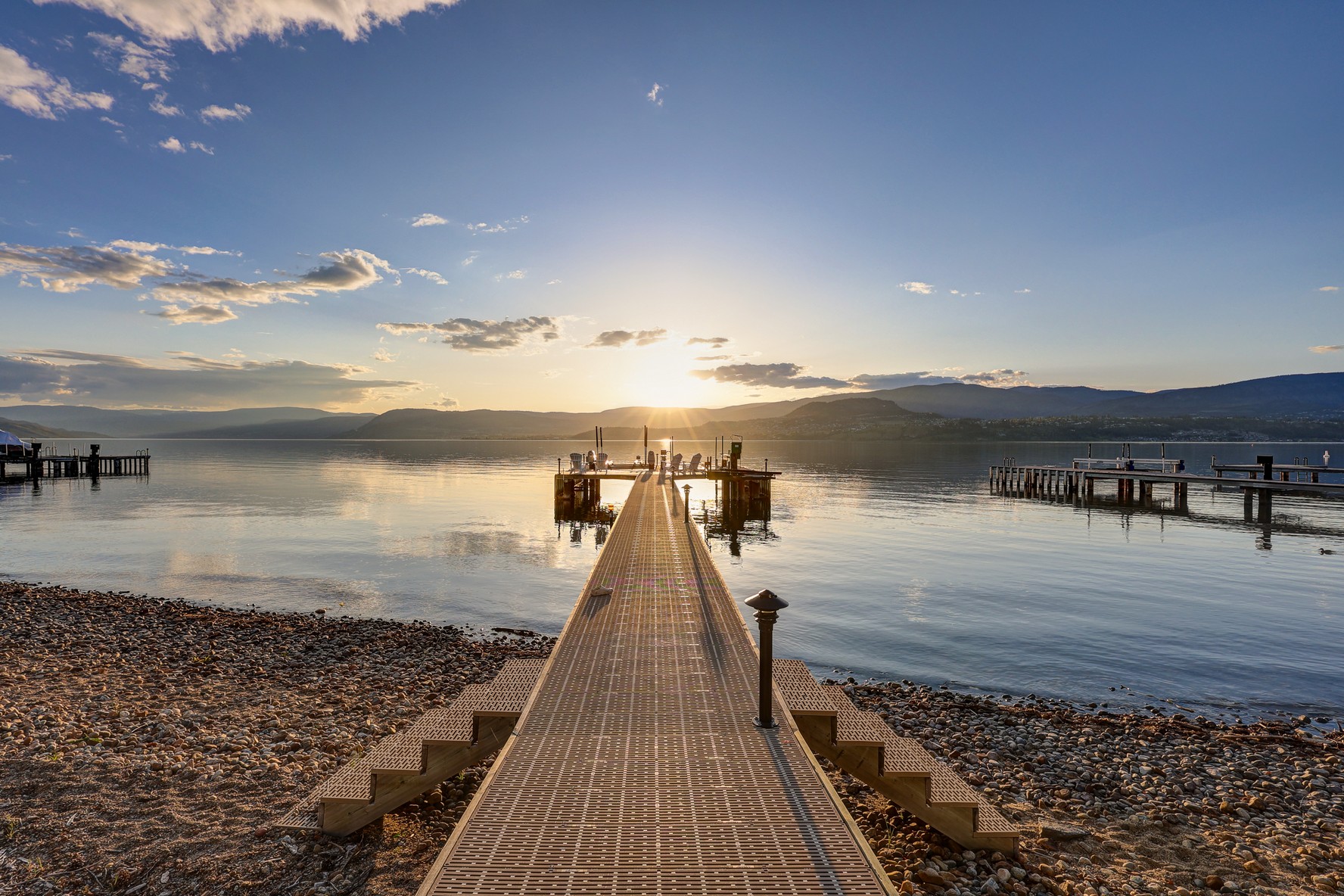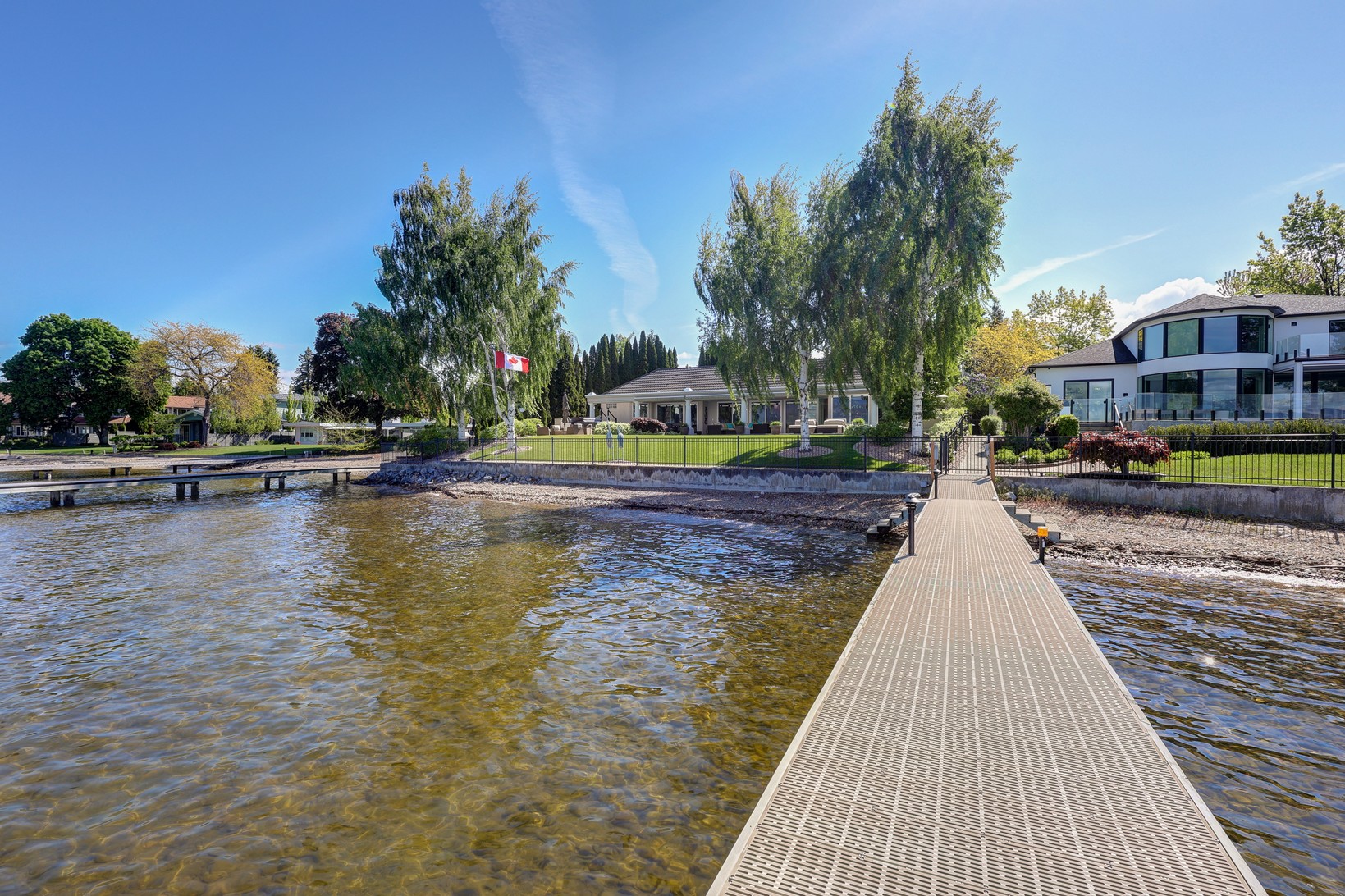 Rare offering on the shores of Okanagan Lake. This one-level lakeshore home in Kelowna’s coveted Lower Mission offers modern comfort with exceptional privacy. Set at the end of a quiet no-thru road, the .49-acre property boasts over 105 ft. of level beachfront, mature landscaping, and a shared dock with boat and Seadoo lifts. Spanning over 3,600 sq. ft, this 3-bedroom, 3-bath rancher with 1 bedroom/1 bath guest house is designed for effortless indoor-outdoor living, featuring floor-to-ceiling sliding doors and stunning lake views from nearly every room.