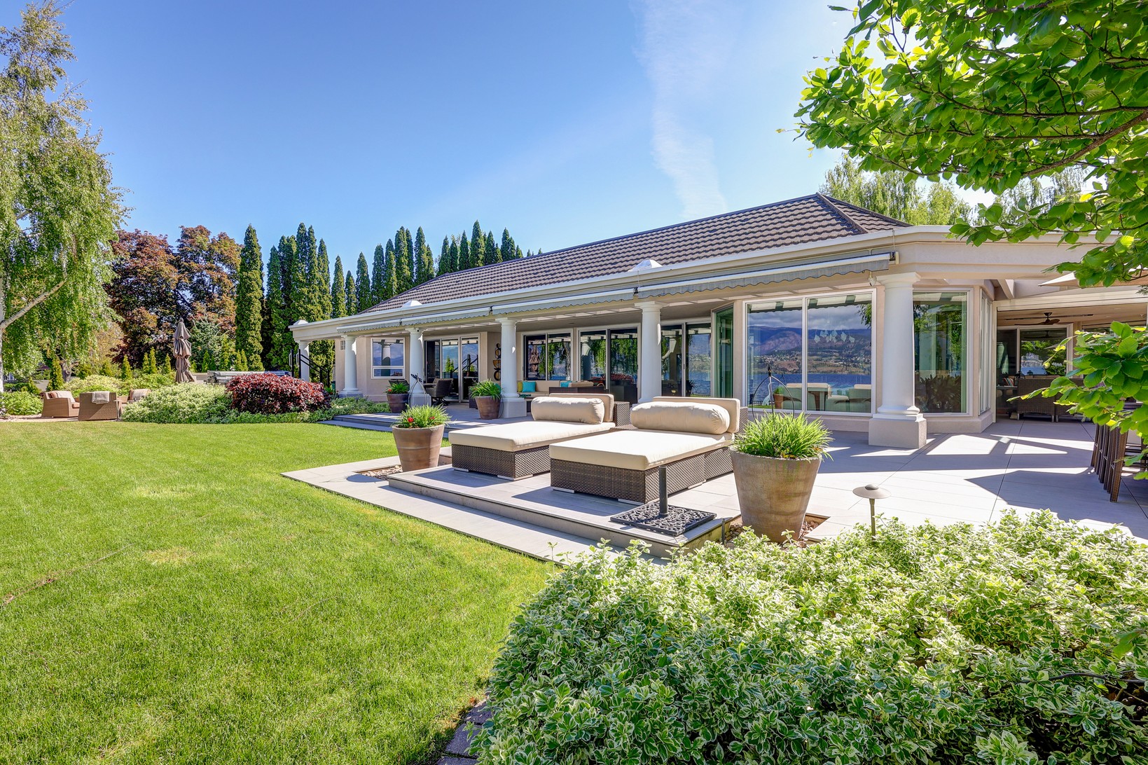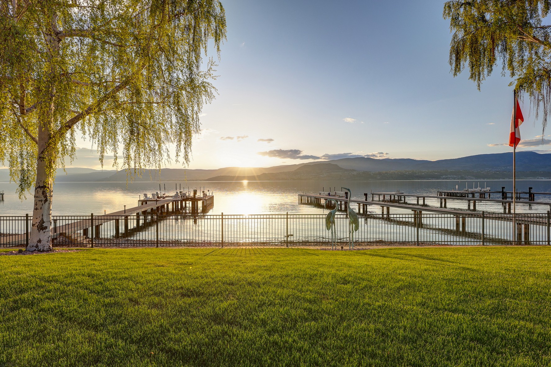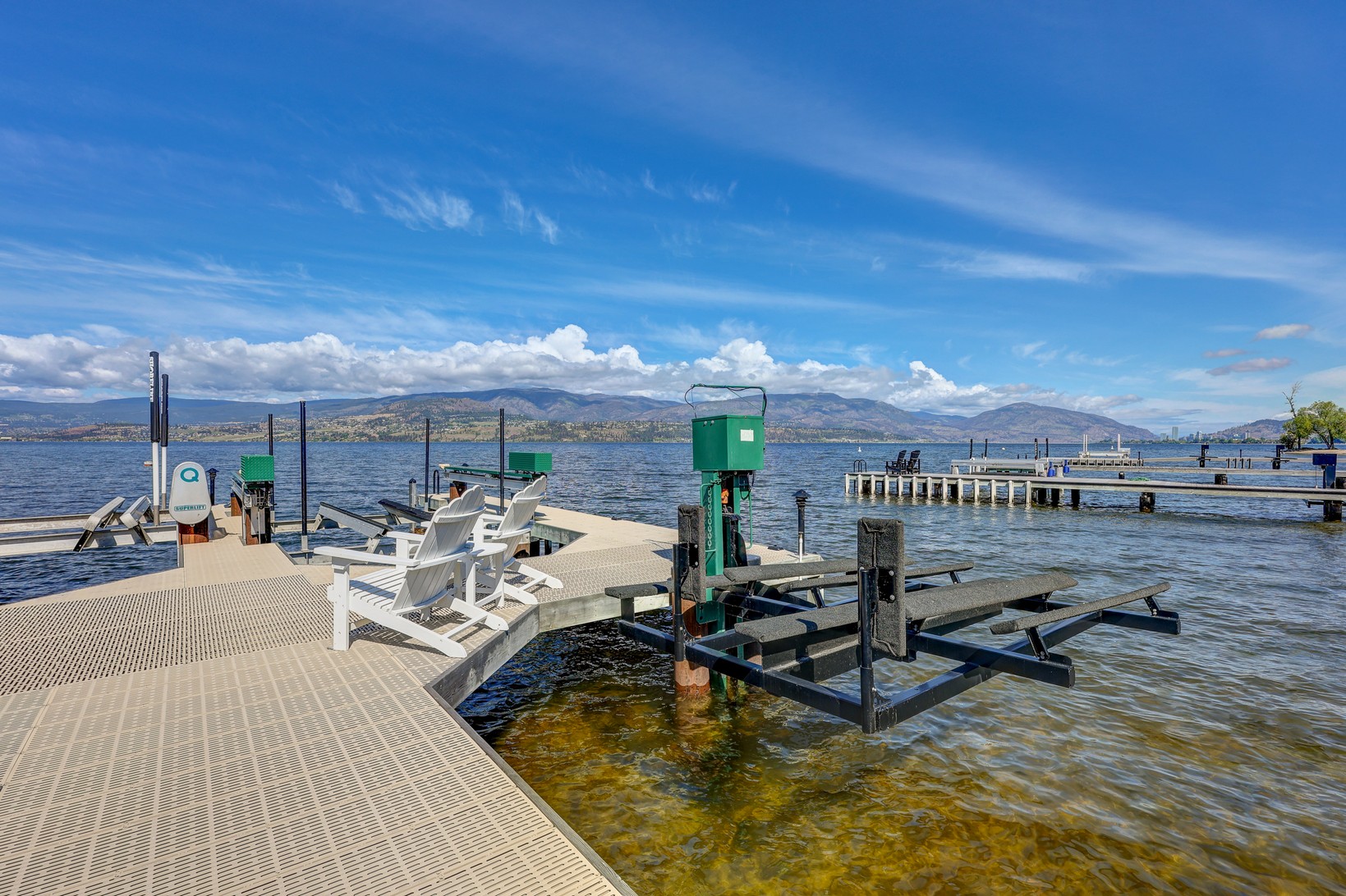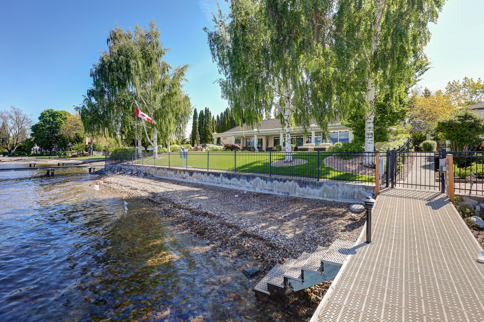Rare offering on the shores of Okanagan Lake. This one-level lakeshore home in Kelowna’s coveted Lower Mission offers modern comfort with exceptional privacy. Set at the end of a quiet no-thru road, the .49-acre property boasts over 105 ft. of level beachfront, mature landscaping, and a shared dock with boat and Seadoo lifts. Spanning over 3,600 sq. ft, this 3-bedroom, 3-bath rancher with 1 bedroom/1 bath guest house is designed for effortless indoor-outdoor living, featuring floor-to-ceiling sliding doors and stunning lake views from nearly every room.