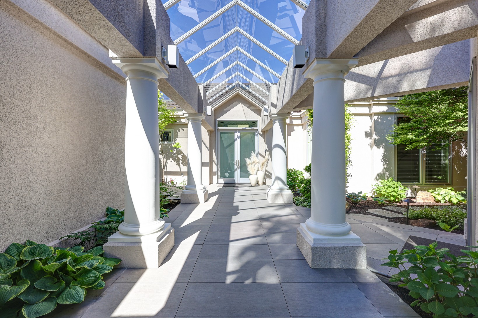 The gourmet kitchen is perfect for entertaining, complete with custom cabinetry, expansive counters, professional-grade appliances—including a gas range, double oven, and dual dishwashers plus a charming breakfast nook with lake views and patio access. The generous primary suite offers direct patio access, a spa-inspired ensuite, and a walk-in closet with a skylight and center island.