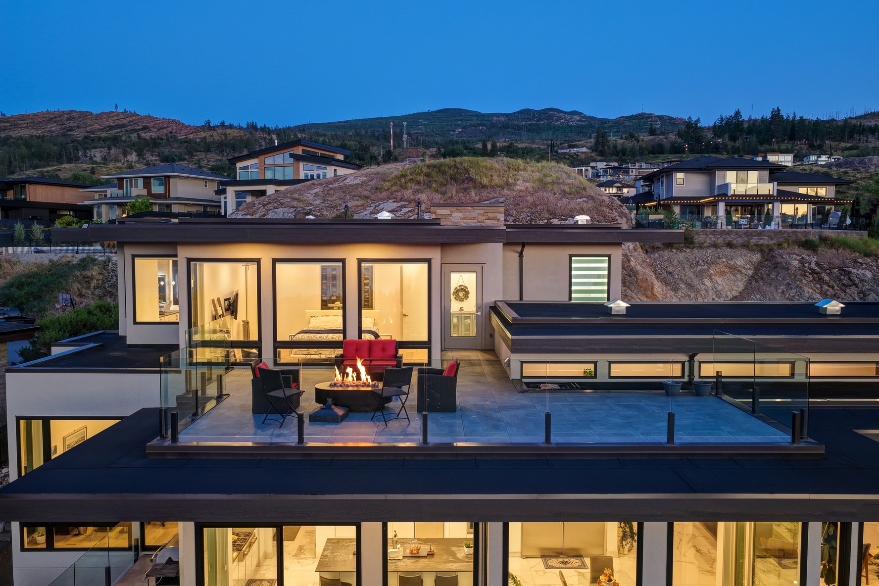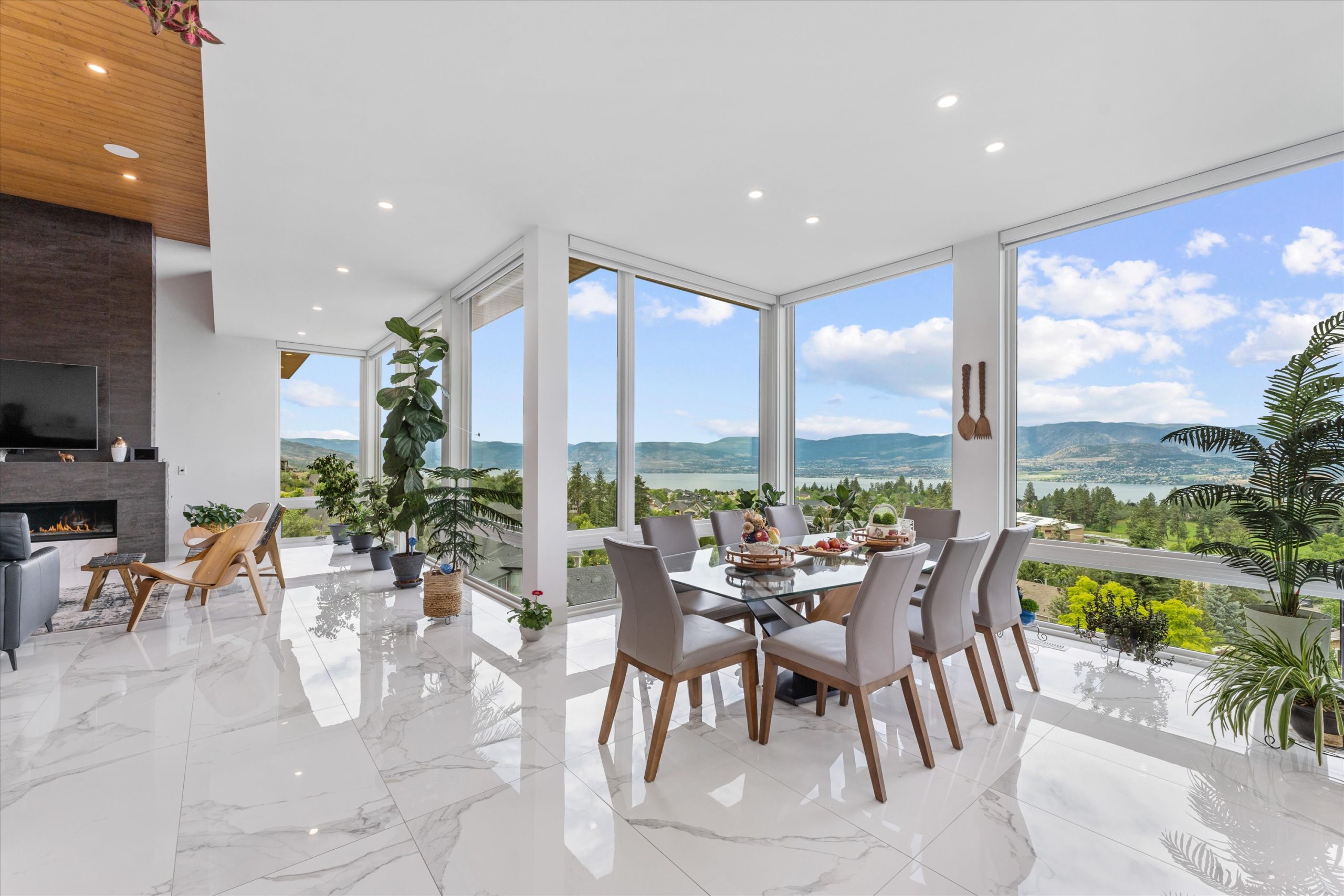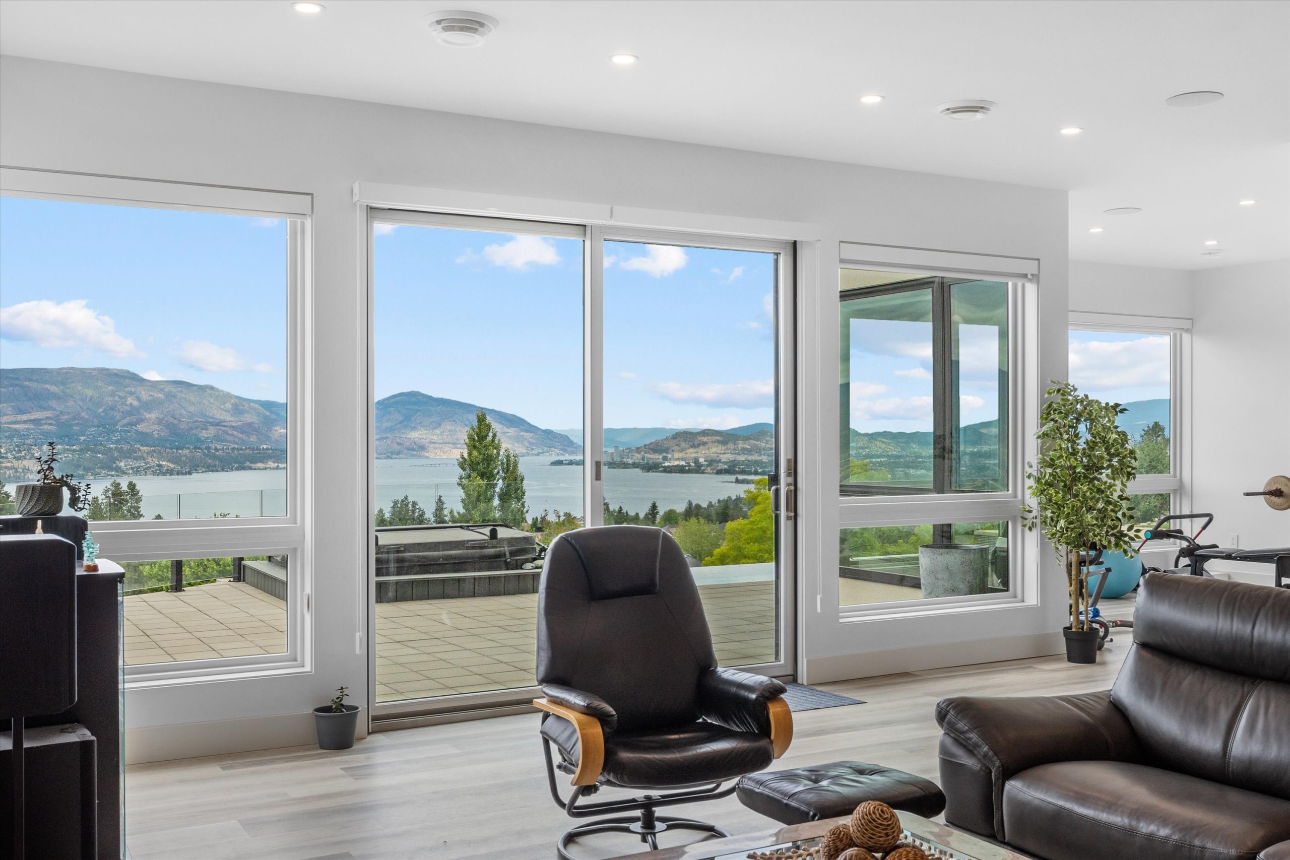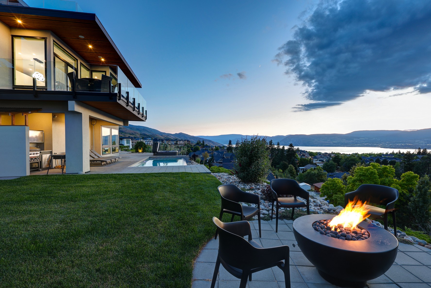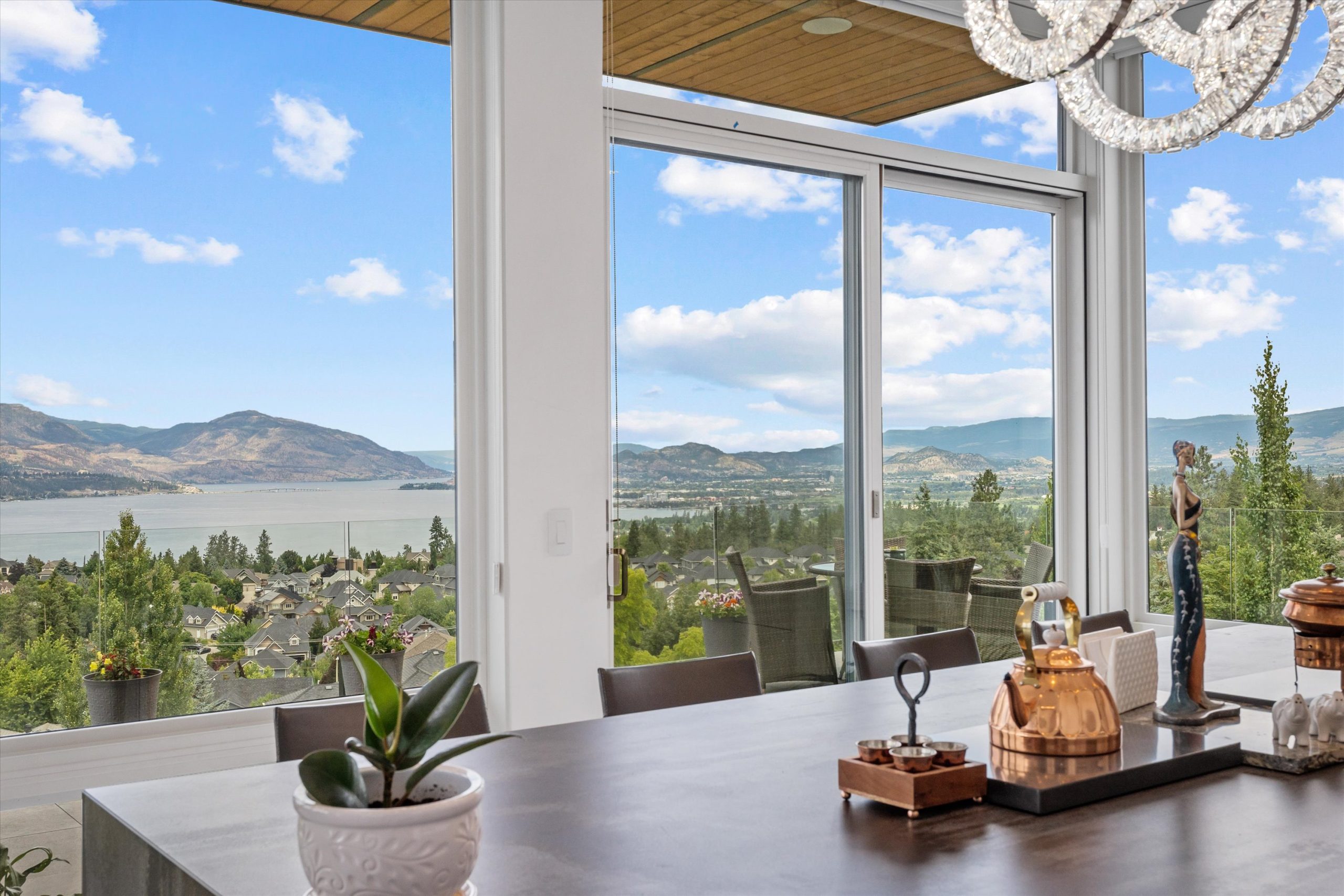 Outdoors, the backyard is a private oasis designed for both relaxation and entertaining—featuring a saltwater infinity pool with power cover, sunken hot tub, fire table, and lush landscaping. The covered patio with wood inlay ceilings, built-in speakers, and a full outdoor kitchen offers the perfect setting for alfresco dining. A fully self-contained suite with private entrance, heated floors, and sweeping views adds flexibility for multigenerational living, guests, or rental income. This is elevated Okanagan living thoughtfully designed, beautifully finished, and truly unforgettable.