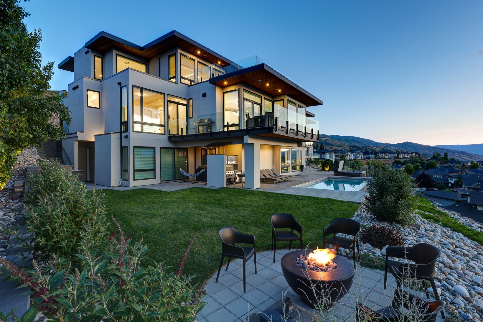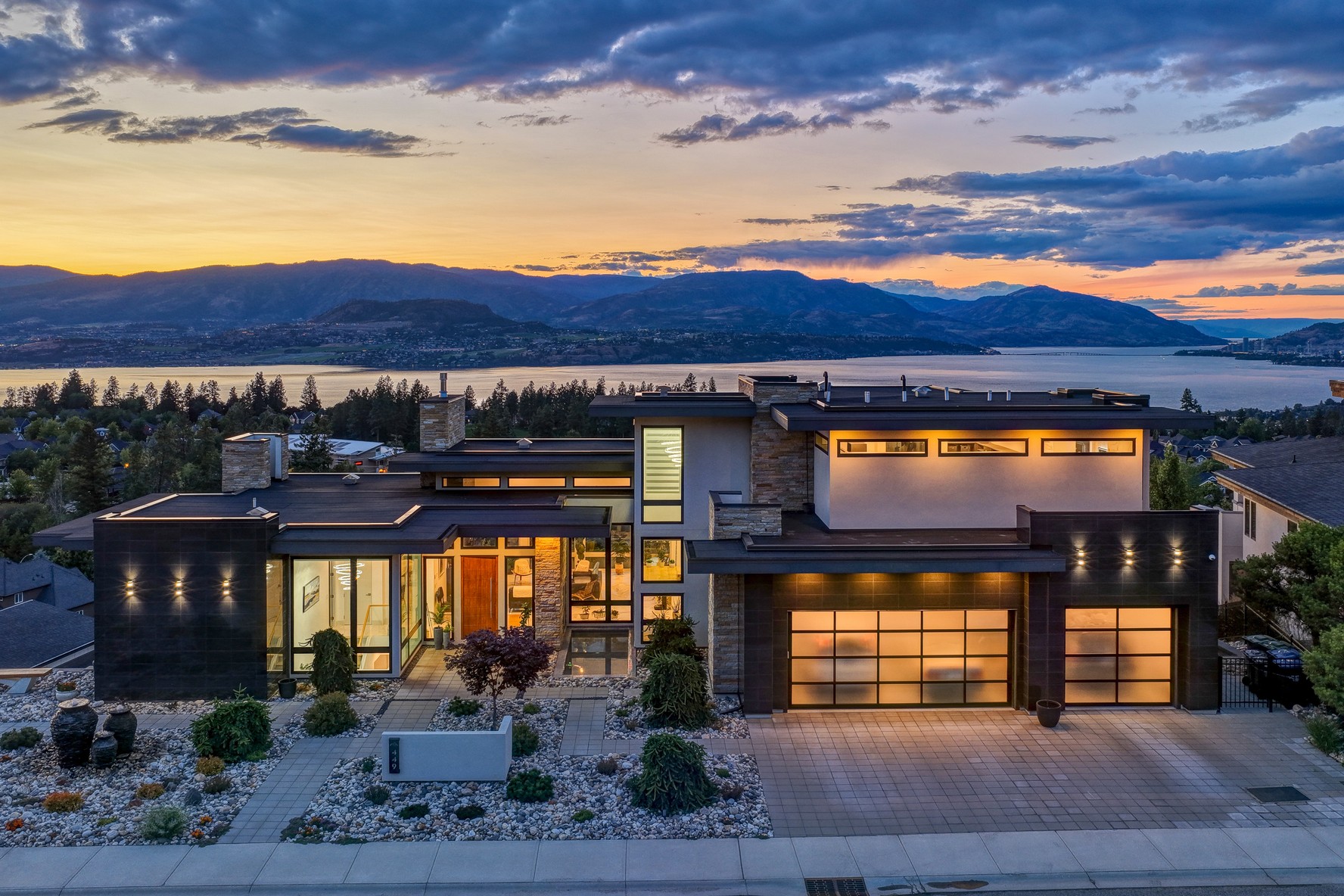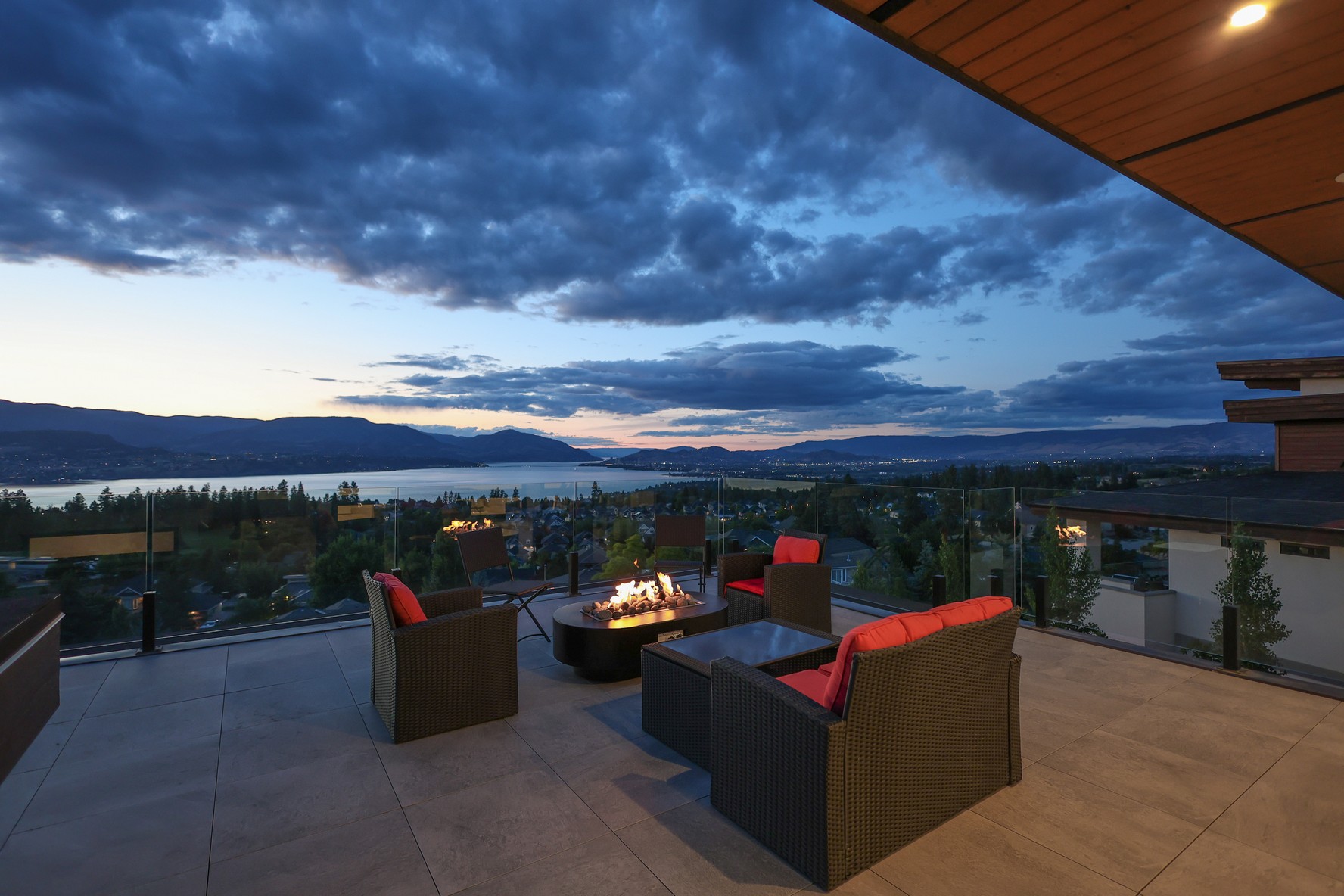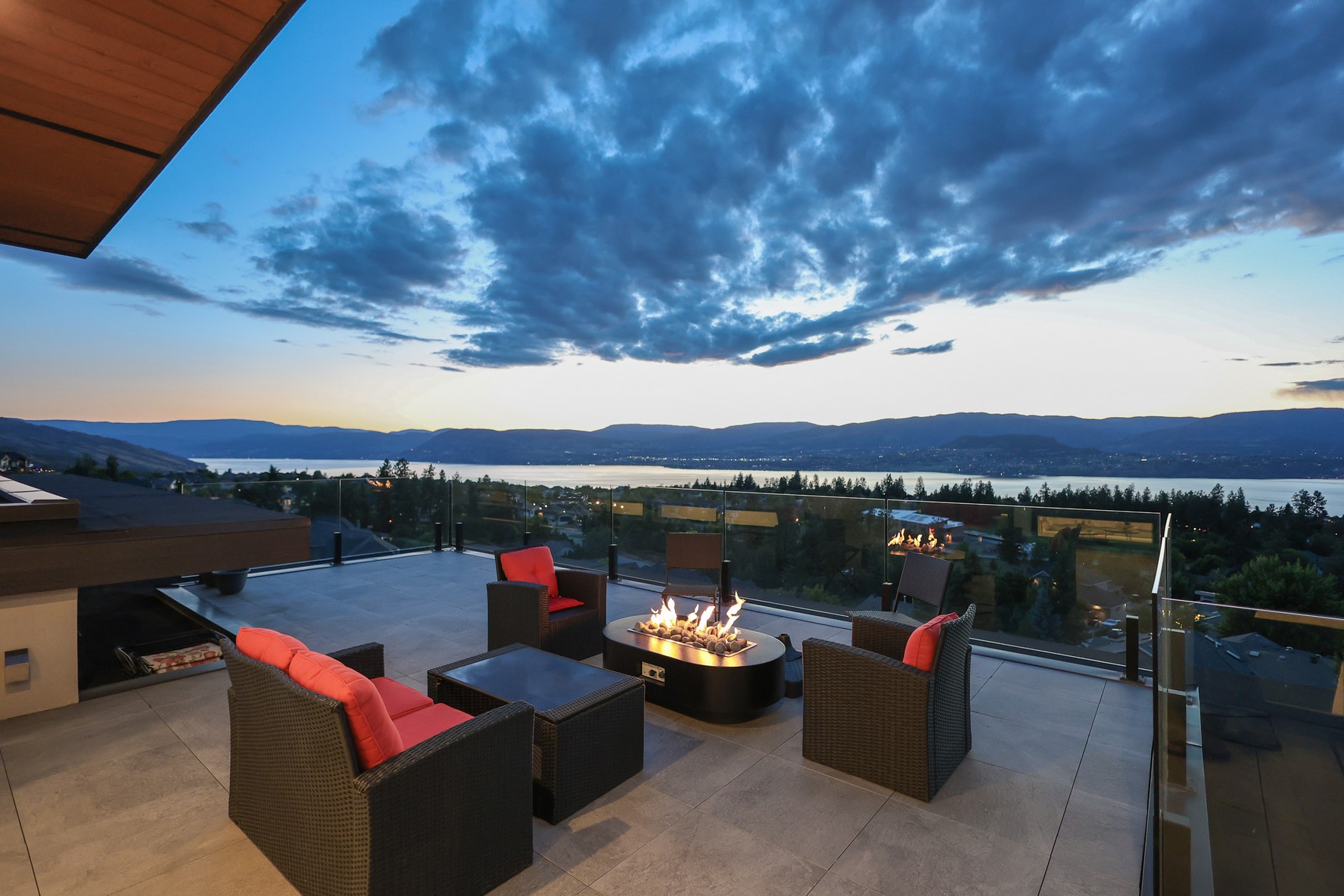 Outdoors, the backyard is a private oasis designed for both relaxation and entertaining—featuring a saltwater infinity pool with power cover, sunken hot tub, fire table, and lush landscaping. The covered patio with wood inlay ceilings, built-in speakers, and a full outdoor kitchen offers the perfect setting for alfresco dining. A fully self-contained suite with private entrance, heated floors, and sweeping views adds flexibility for multigenerational living, guests, or rental income. This is elevated Okanagan living thoughtfully designed, beautifully finished, and truly unforgettable.