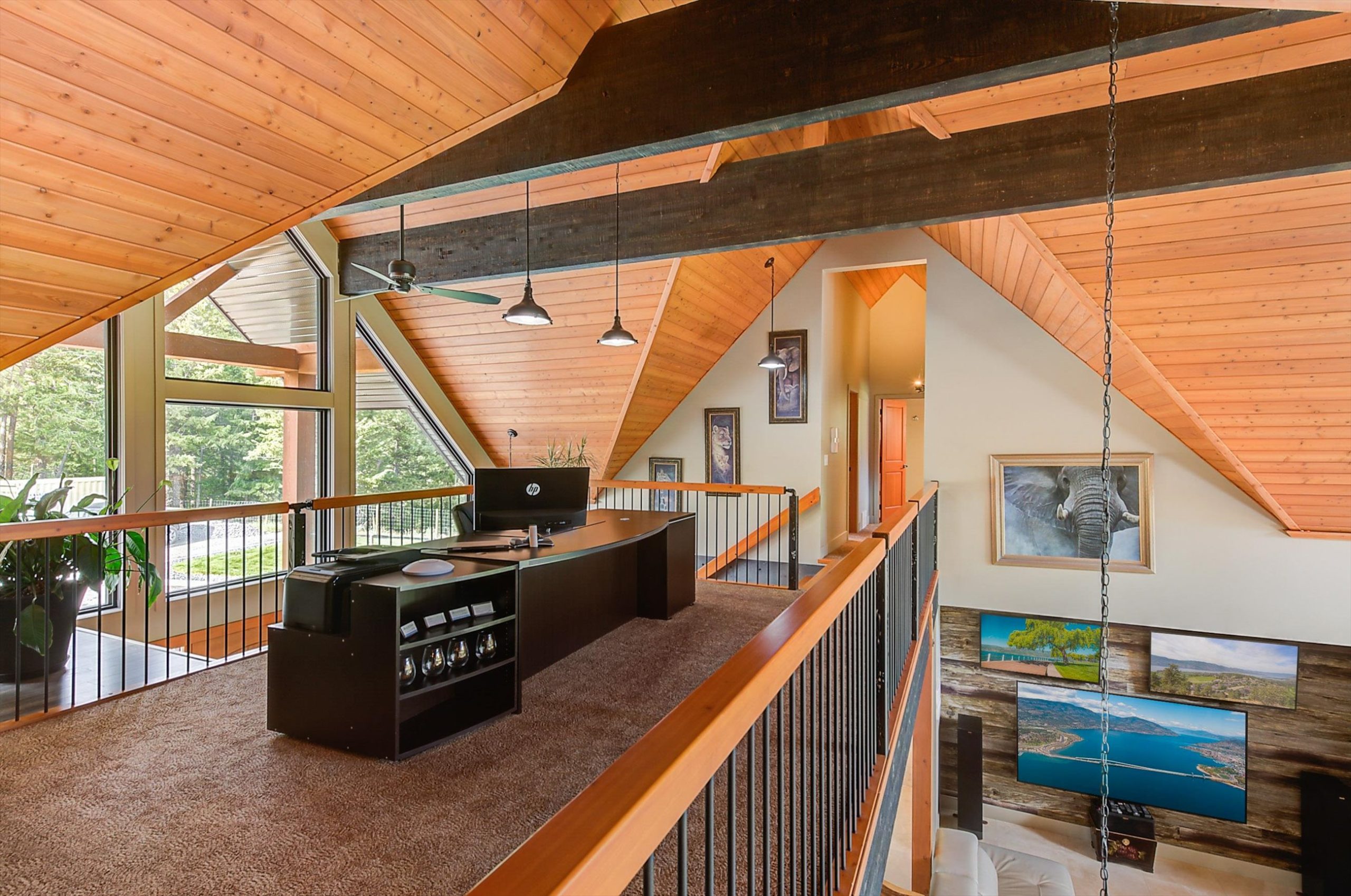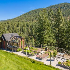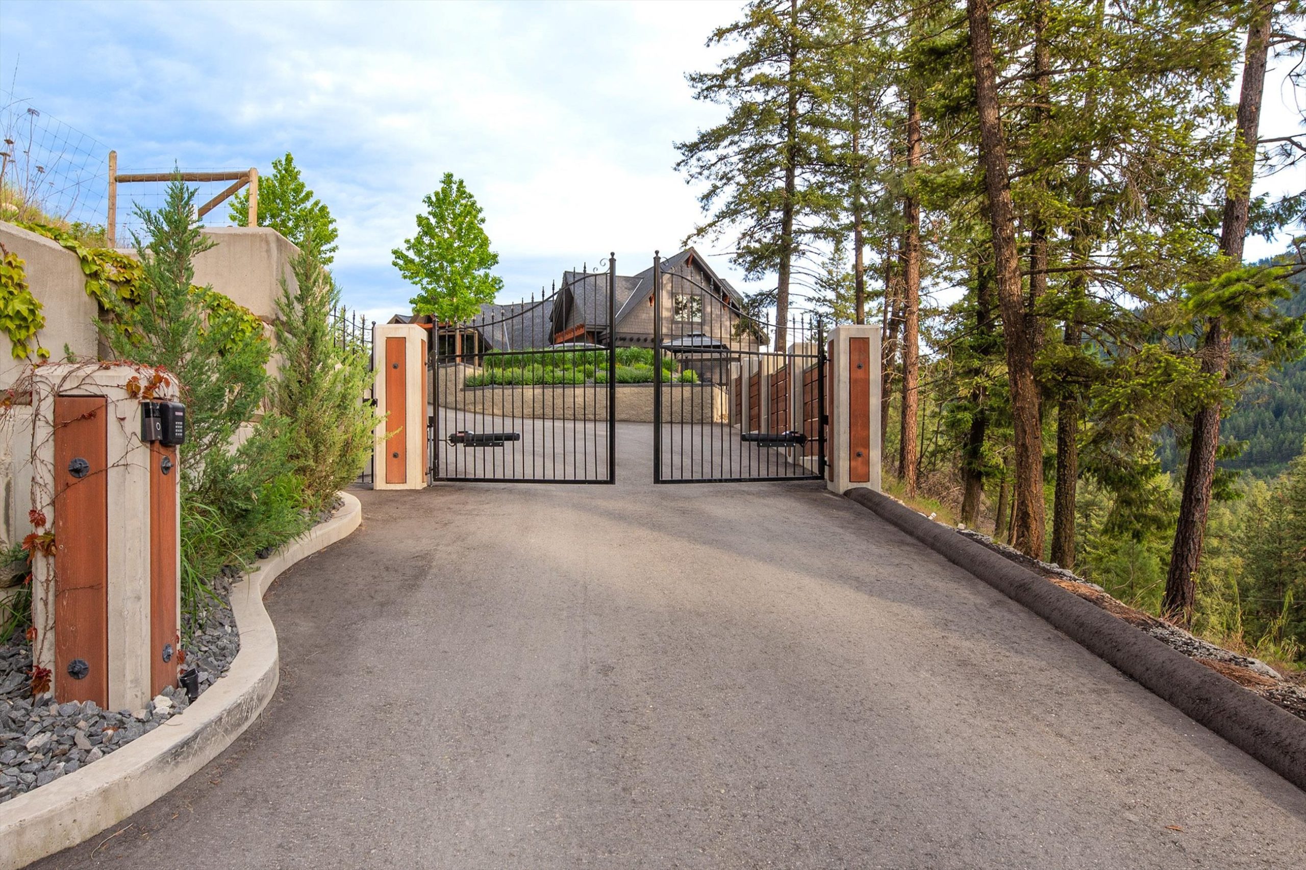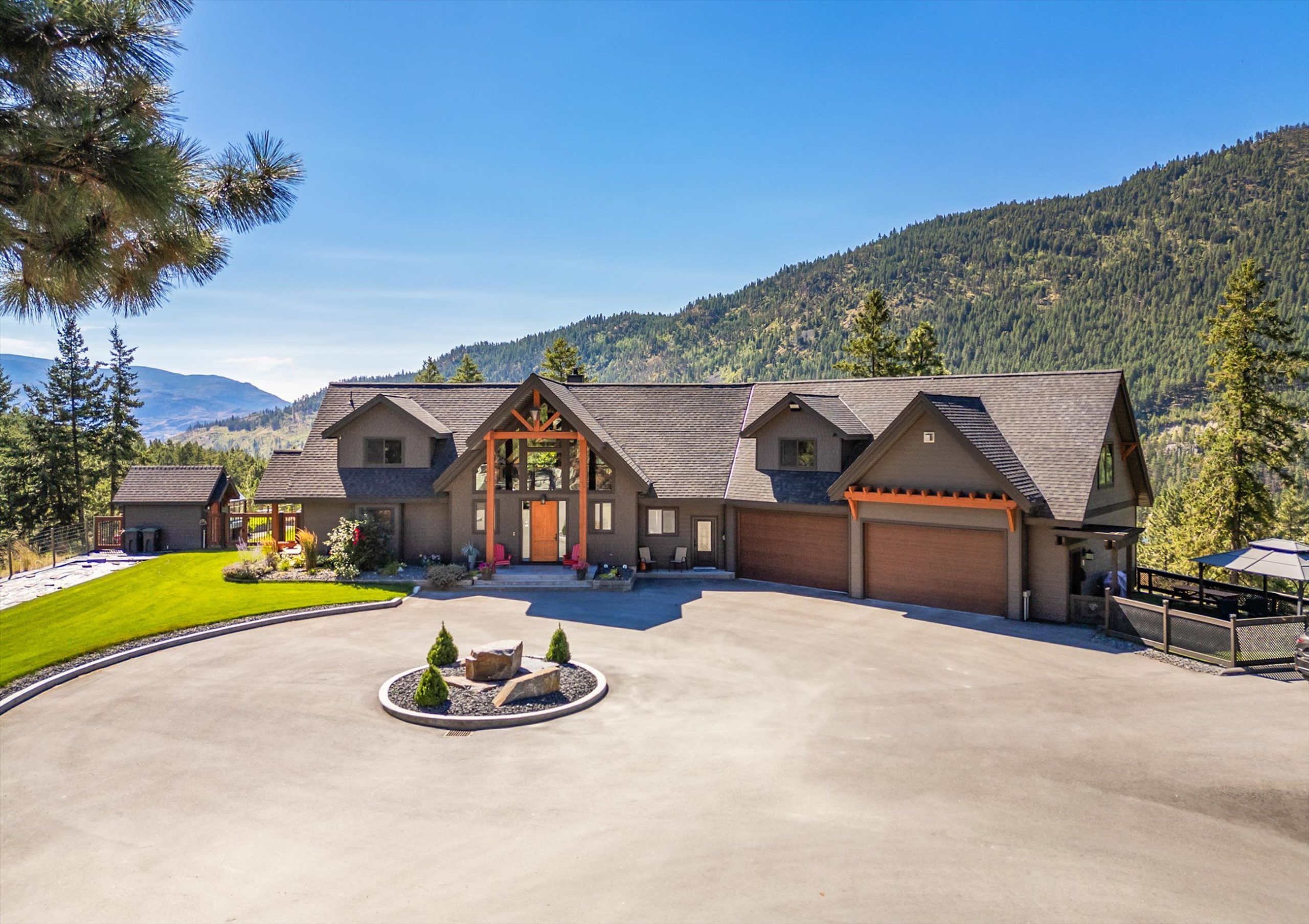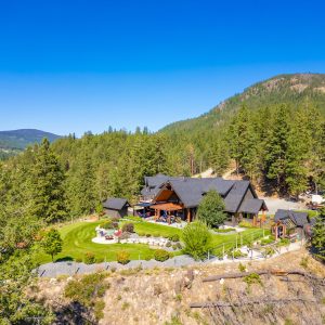 Set on a private, beautifully landscaped 6-acre parcel just off the Connector, this exceptional estate captures refined Okanagan living with sweeping lake and mountain views, all within easy reach of West Kelowna and Peachland. A gated entry, paved circular driveway, and striking timber-frame entrance set the tone for the home’s scale and craftsmanship.