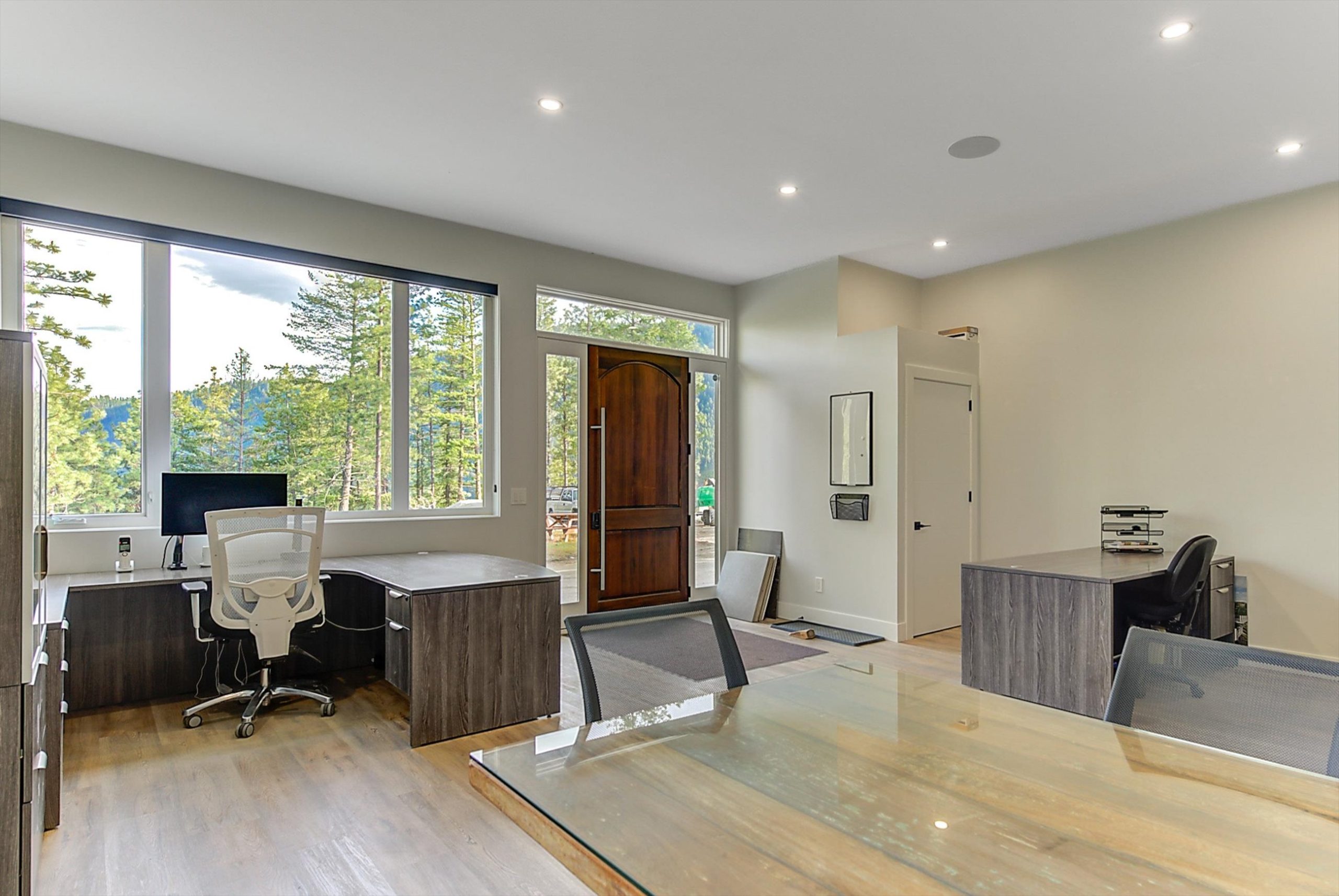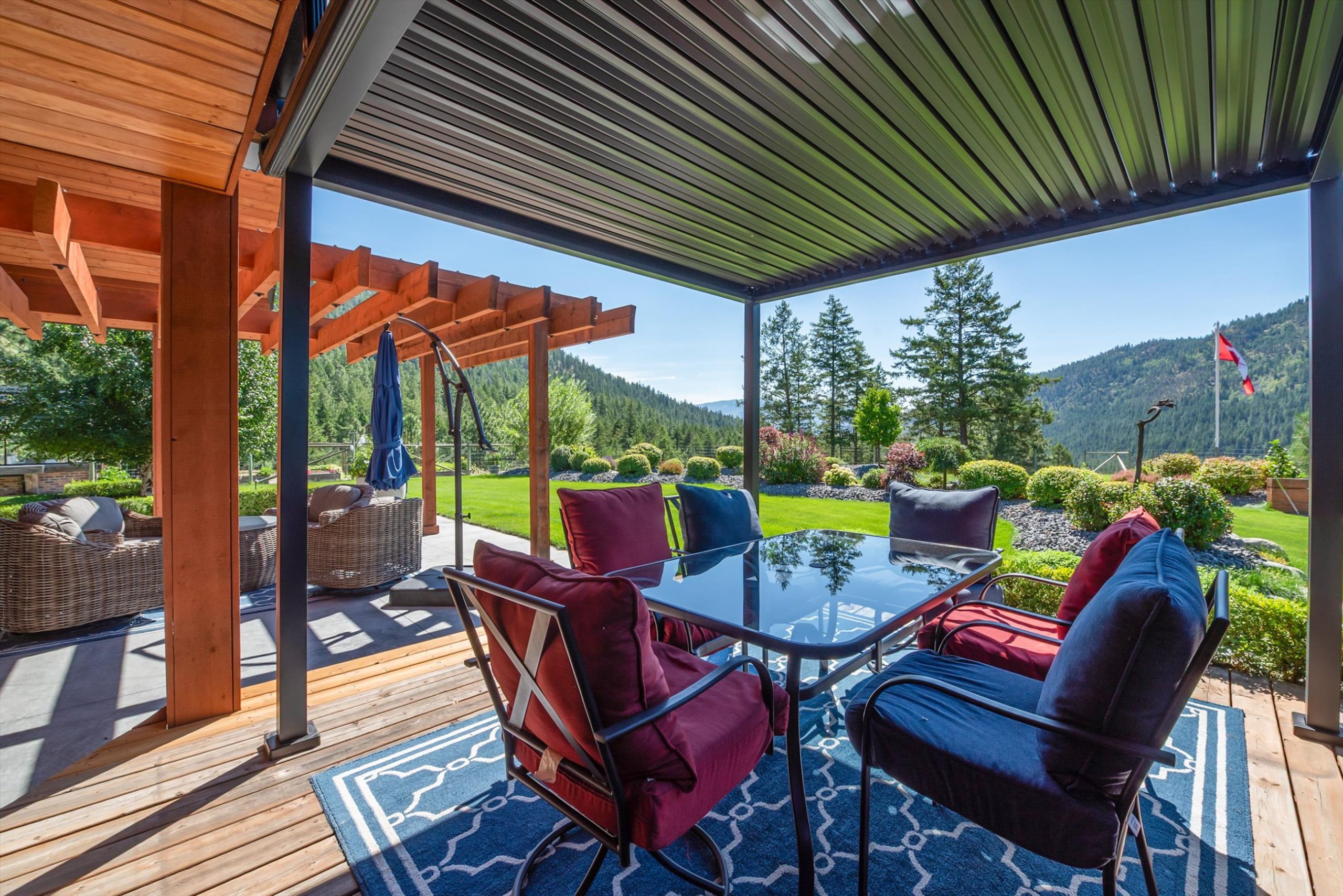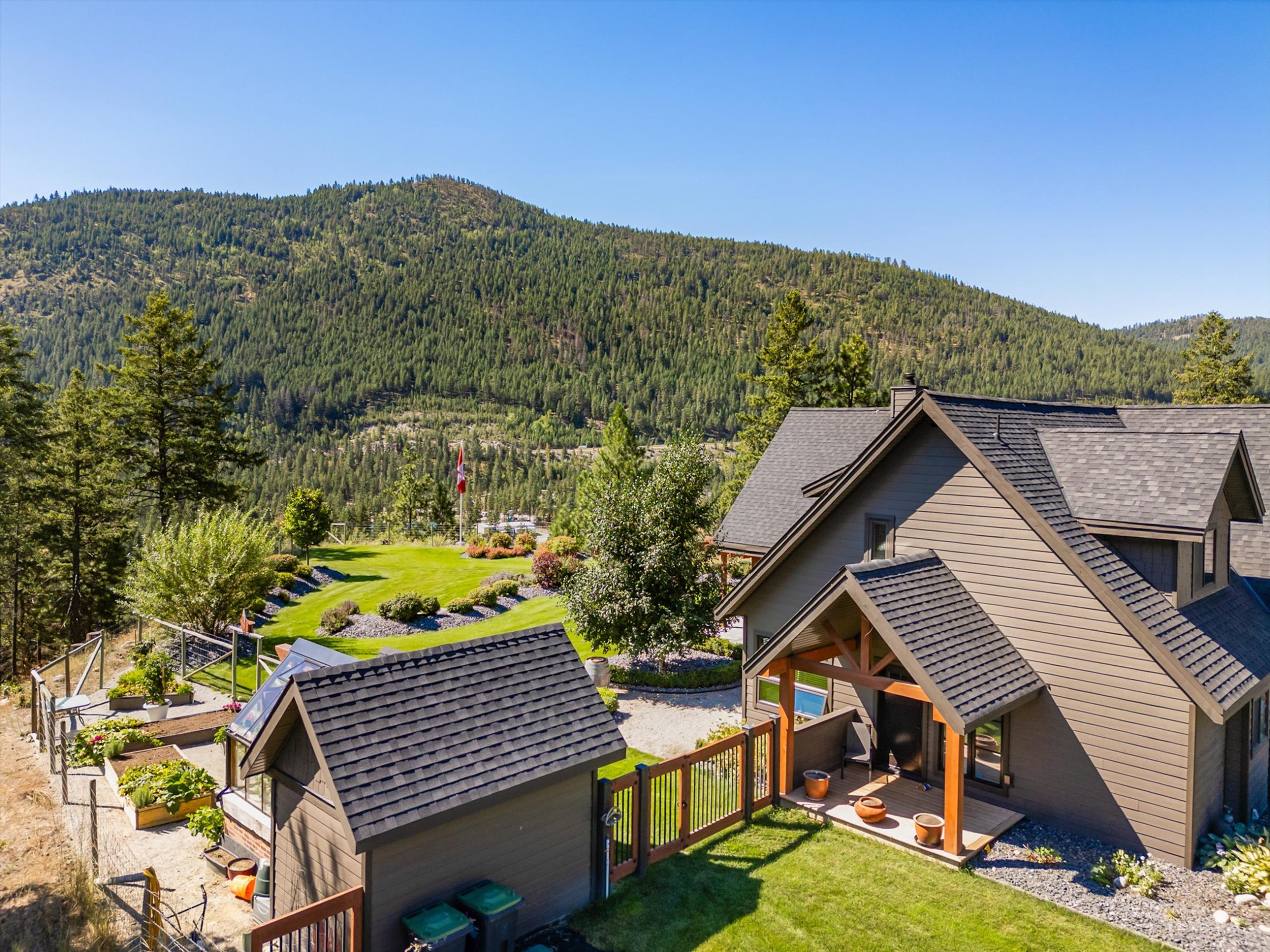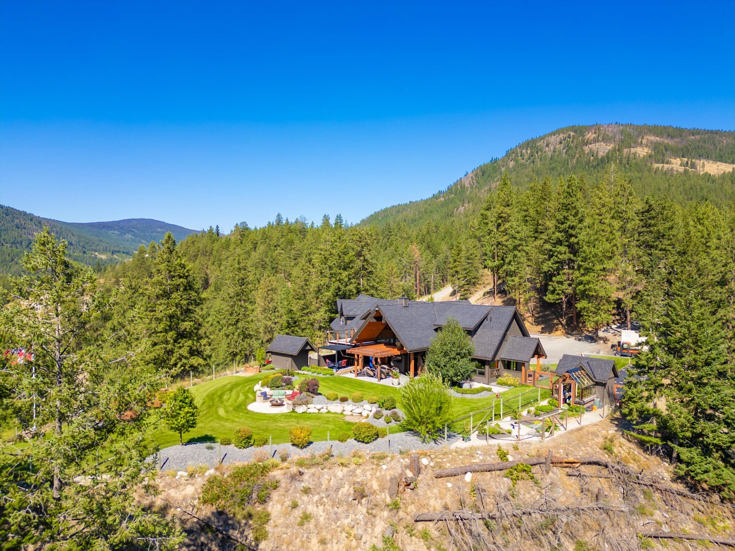 Set on a private, beautifully landscaped 6-acre parcel just off the Connector, this exceptional estate captures refined Okanagan living with sweeping lake and mountain views, all within easy reach of West Kelowna and Peachland. A gated entry, paved circular driveway, and striking timber-frame entrance set the tone for the home’s scale and craftsmanship.
