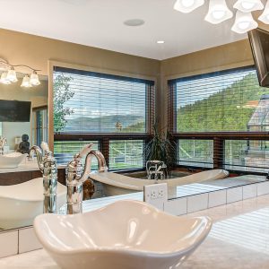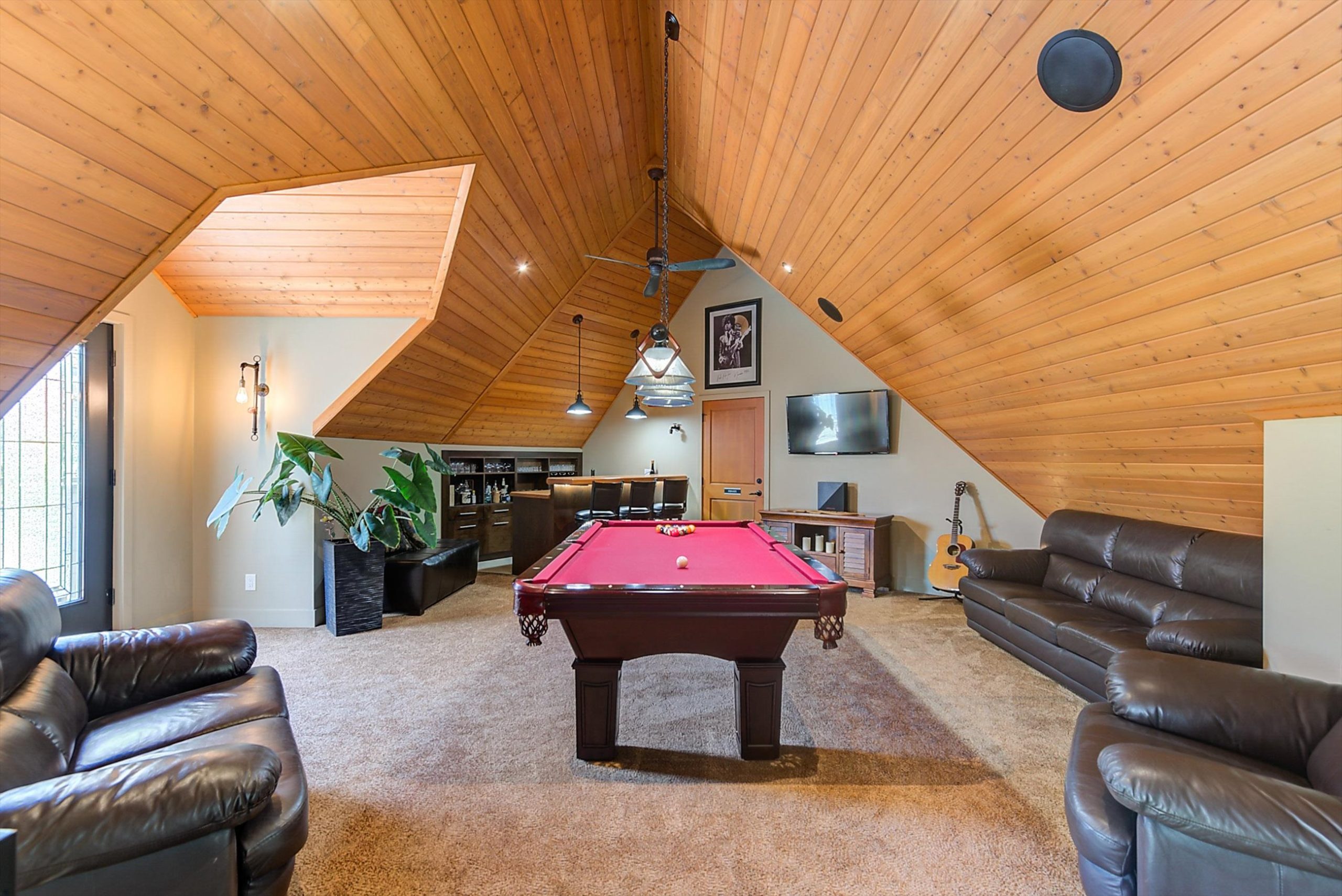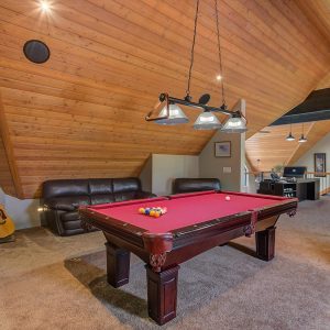 The main-floor primary bedroom allows for easy everyday living, while expansive windows fill the home with natural light and beautifully frame the surrounding landscape. Upstairs offers two guest bedrooms, a spacious games room, and bar area.
