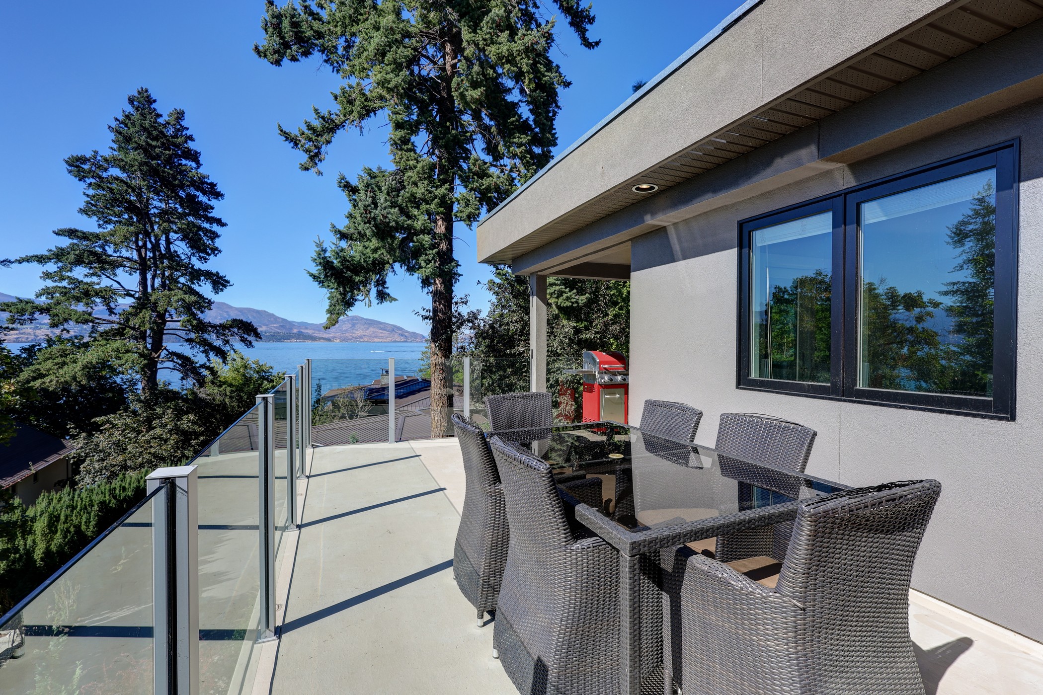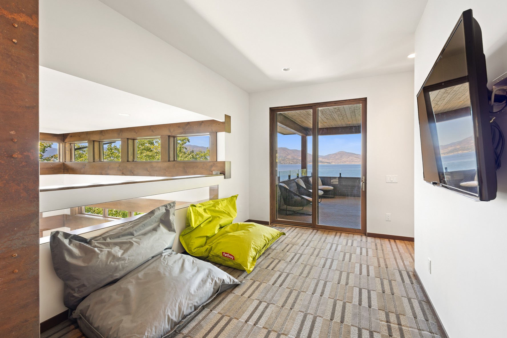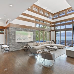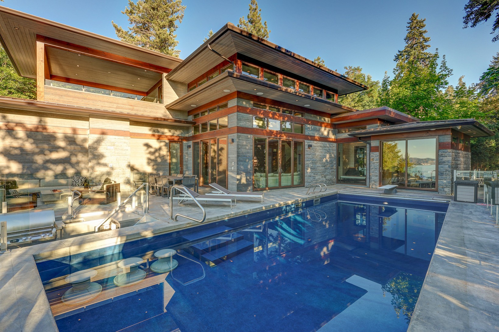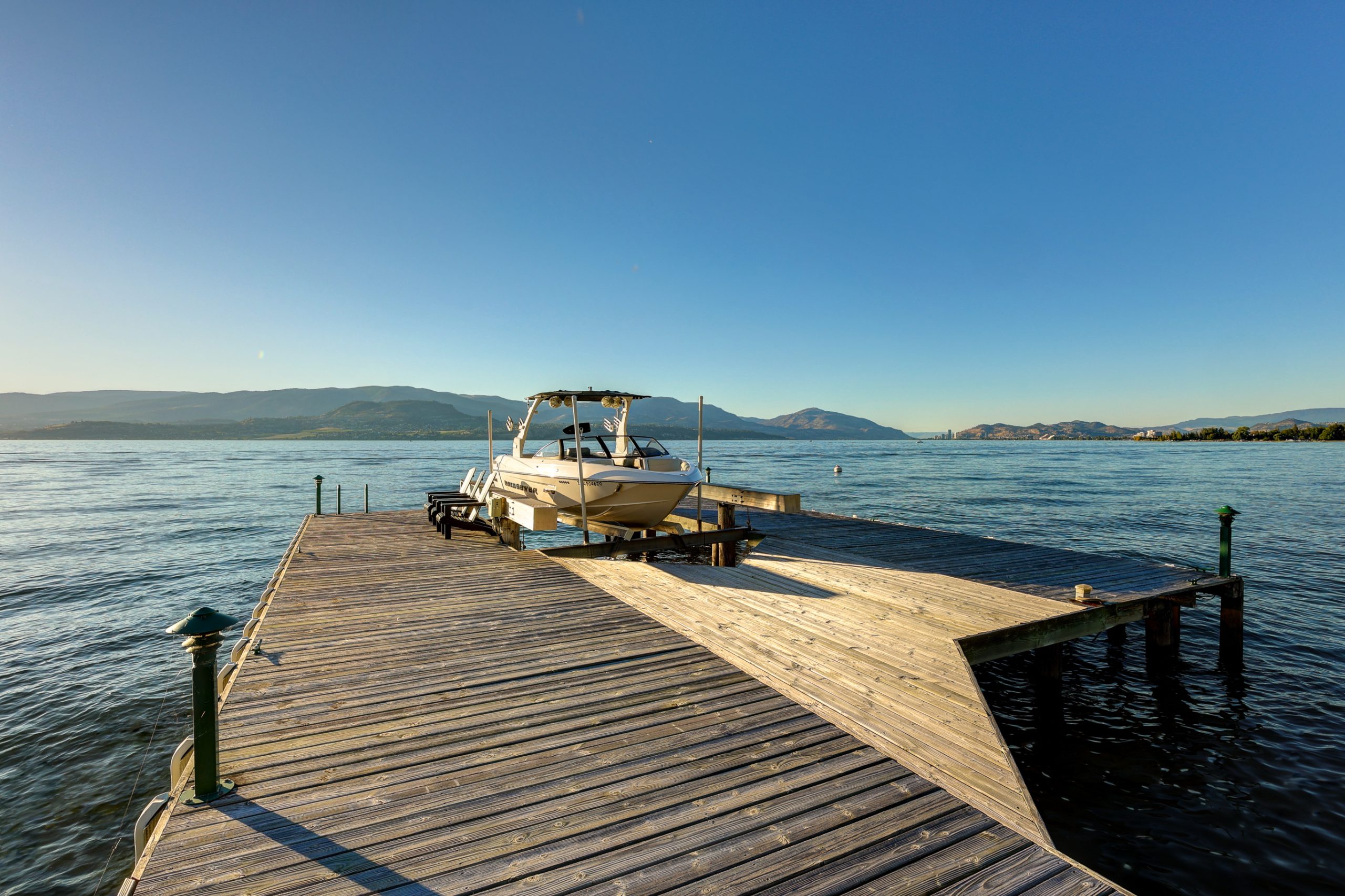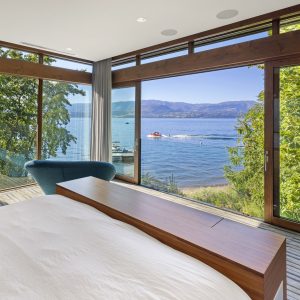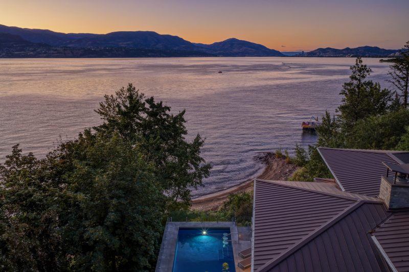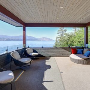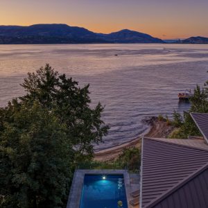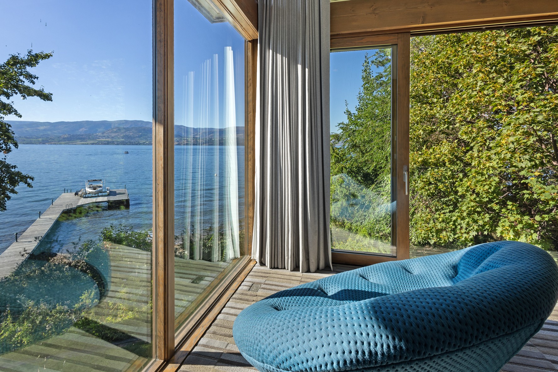 An architectural showpiece set behind gates on Okanagan Lake, this extraordinary lakeshore estate offers exceptional privacy and a truly elevated waterfront lifestyle. A long, winding drive framed by mature cedars and curated gardens reveals striking architecture — a refined blend of stone, cedar and metal roofing — positioned to capture panoramic lake, bridge and mountain views. With 112 ft of shoreline, the setting is as impressive as the residence itself.