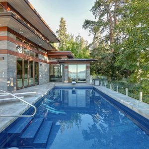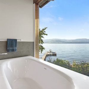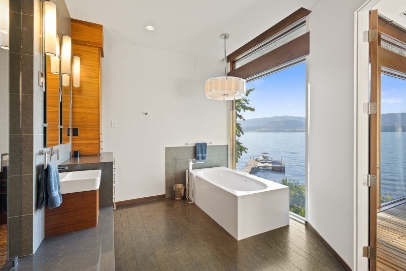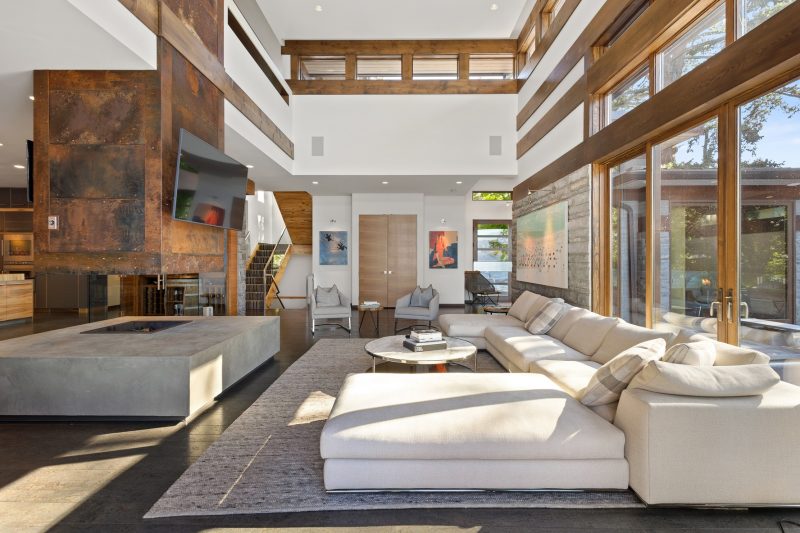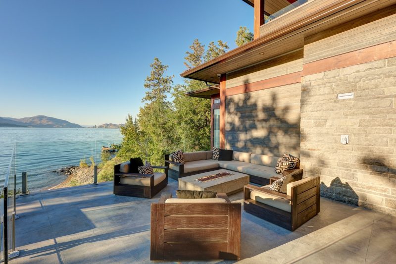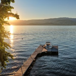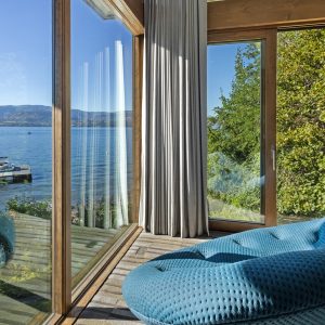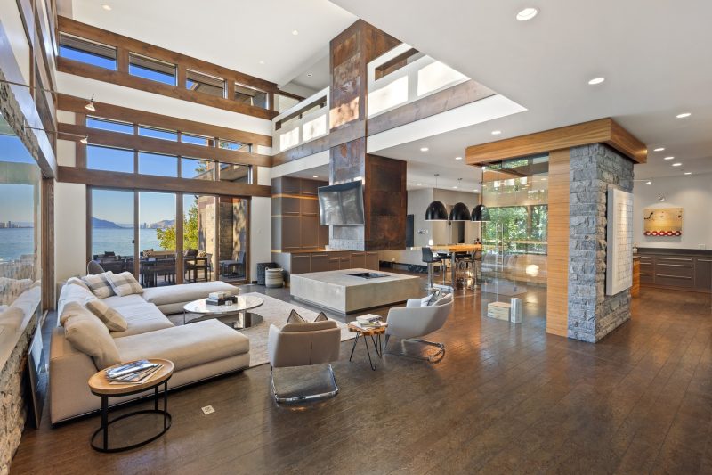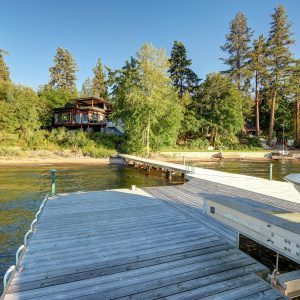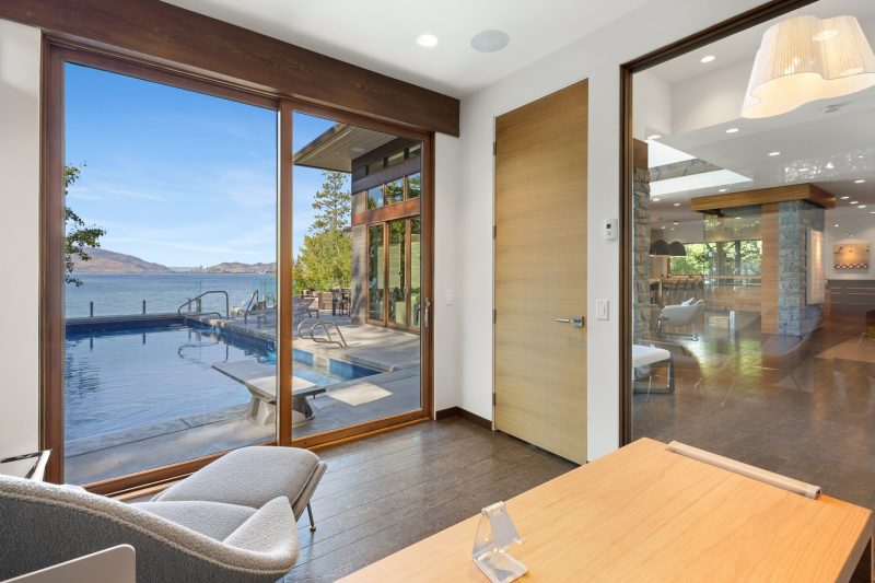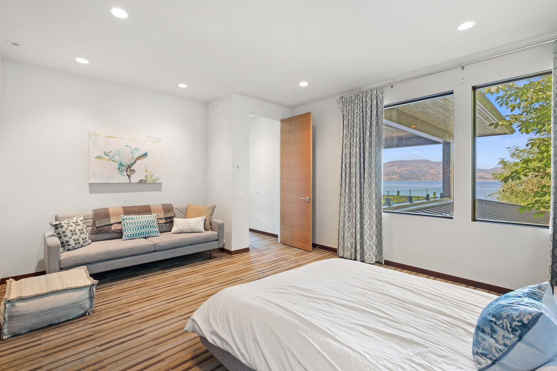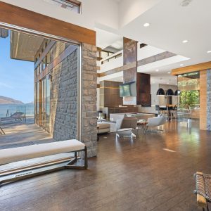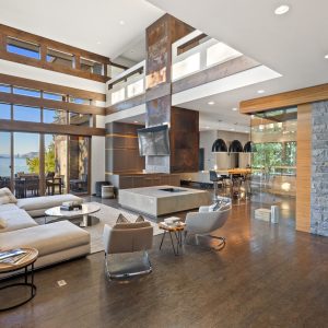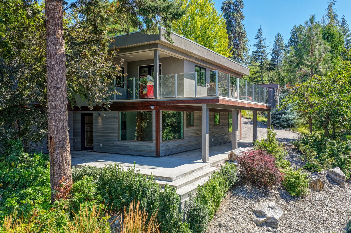 An architectural showpiece set behind gates on Okanagan Lake, this extraordinary lakeshore estate offers exceptional privacy and a truly elevated waterfront lifestyle. A long, winding drive framed by mature cedars and curated gardens reveals striking architecture — a refined blend of stone, cedar and metal roofing — positioned to capture panoramic lake, bridge and mountain views. With 112 ft of shoreline, the setting is as impressive as the residence itself.