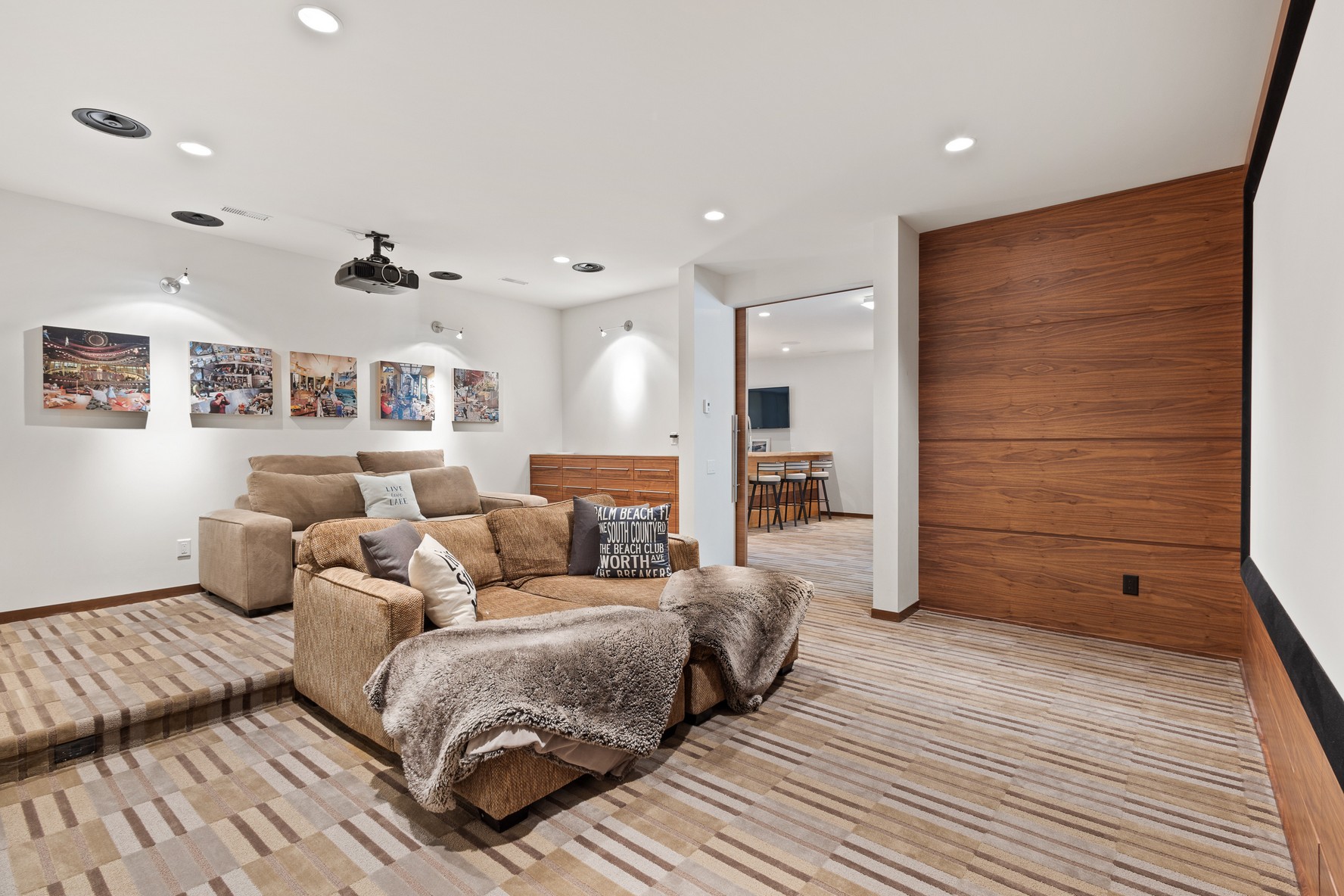 The lakeview primary retreat feels suspended above the water, complete with a spa-inspired ensuite and custom walk-in closets. Additional guest bedrooms, a theatre and a rec room with full bar ensure effortless hosting.