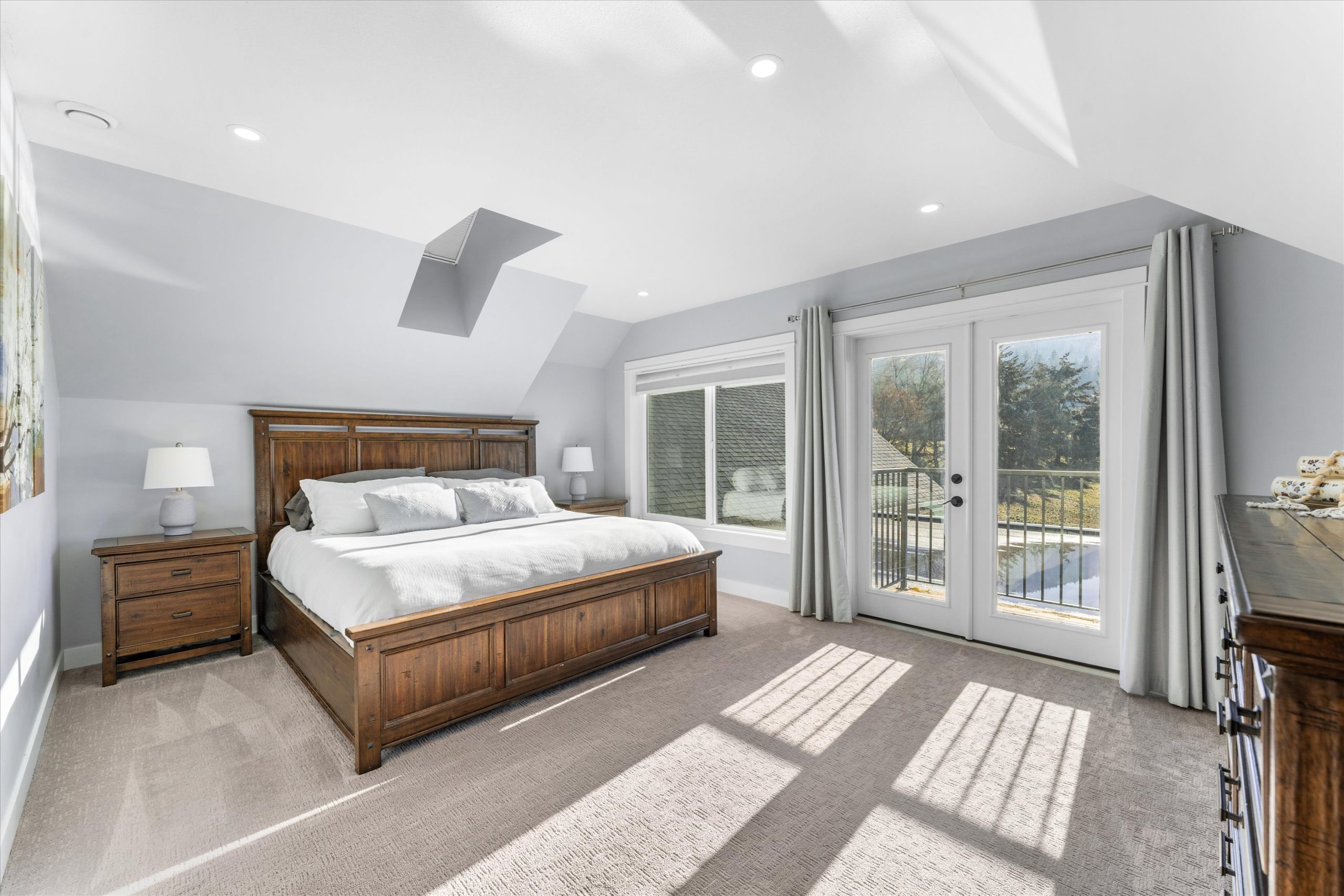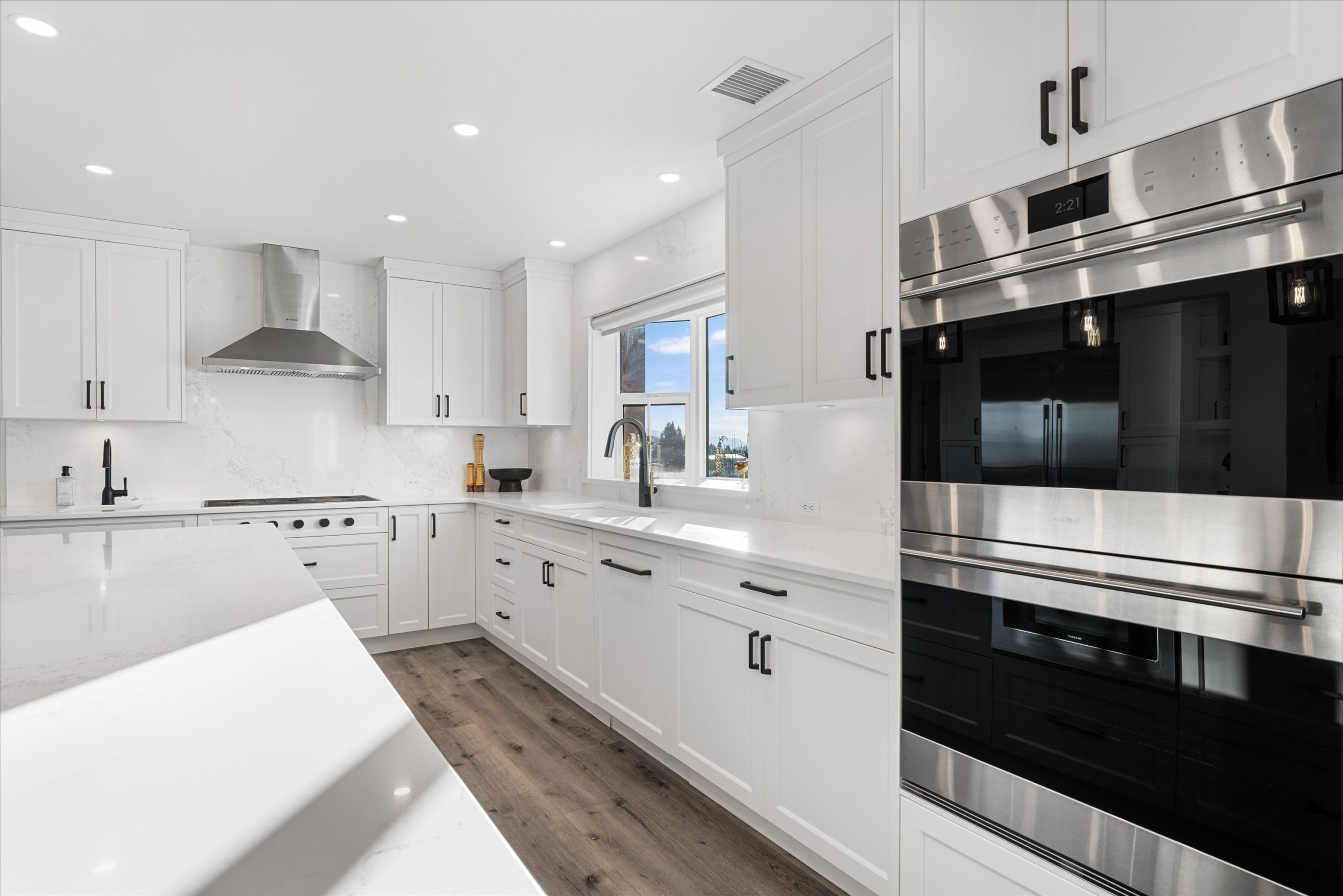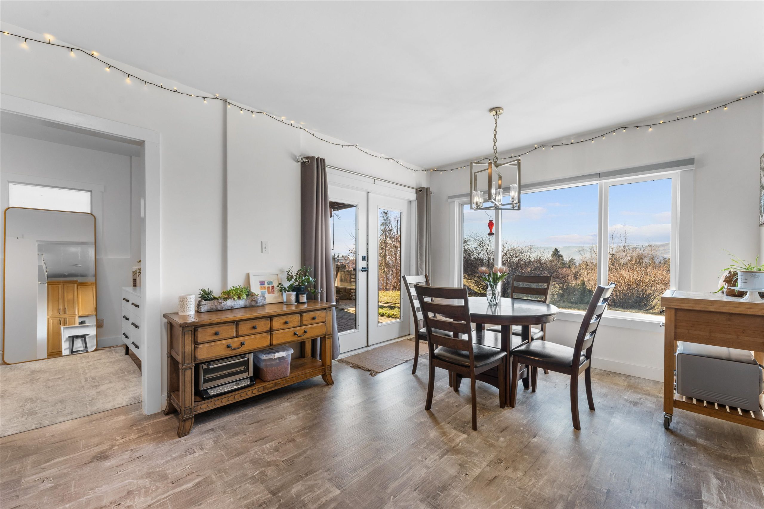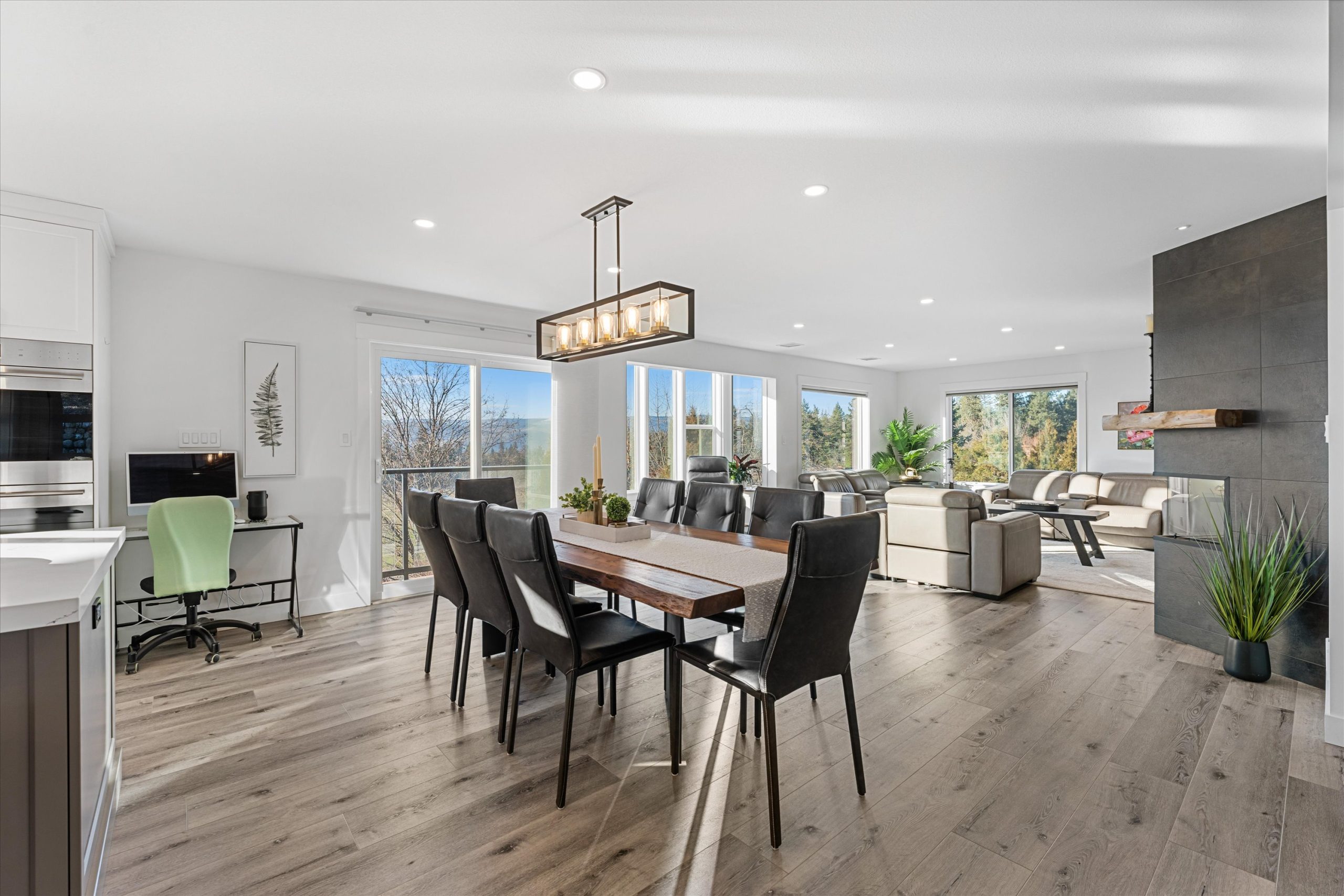 A chef’s kitchen with Wolf appliances, a Fisher & Paykel built-in fridge, butler’s pantry, and large island opens to sun-filled living and dining spaces, along with a covered west-facing Western Red Cedar deck with hot tub for effortless indoor-outdoor entertaining. The upper-level primary suite is a true retreat with lake and orchard views, a Juliette balcony, and spa-inspired ensuite, while a separate one-bedroom in-law suite on the lower level offers private access, parking, and a patio.