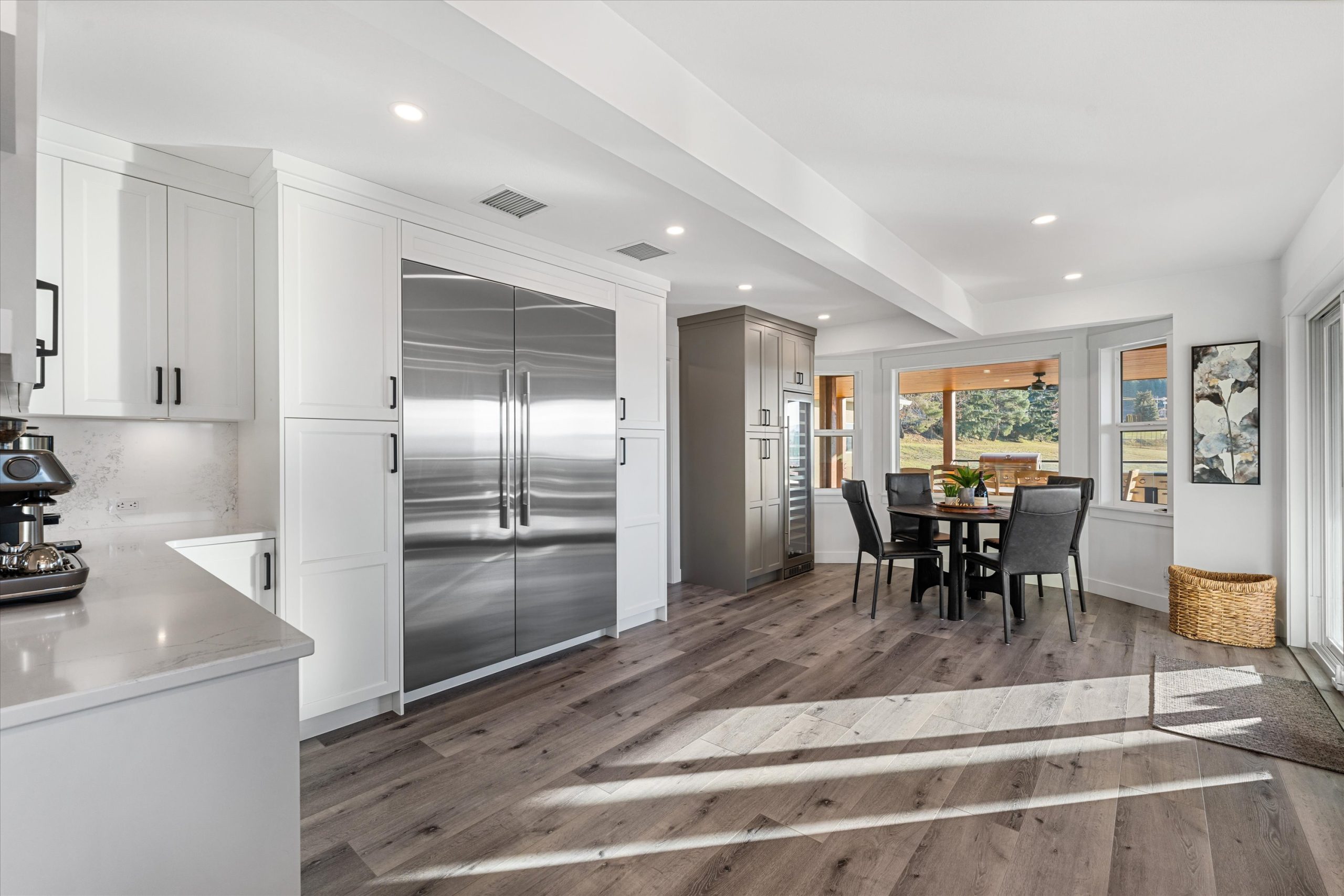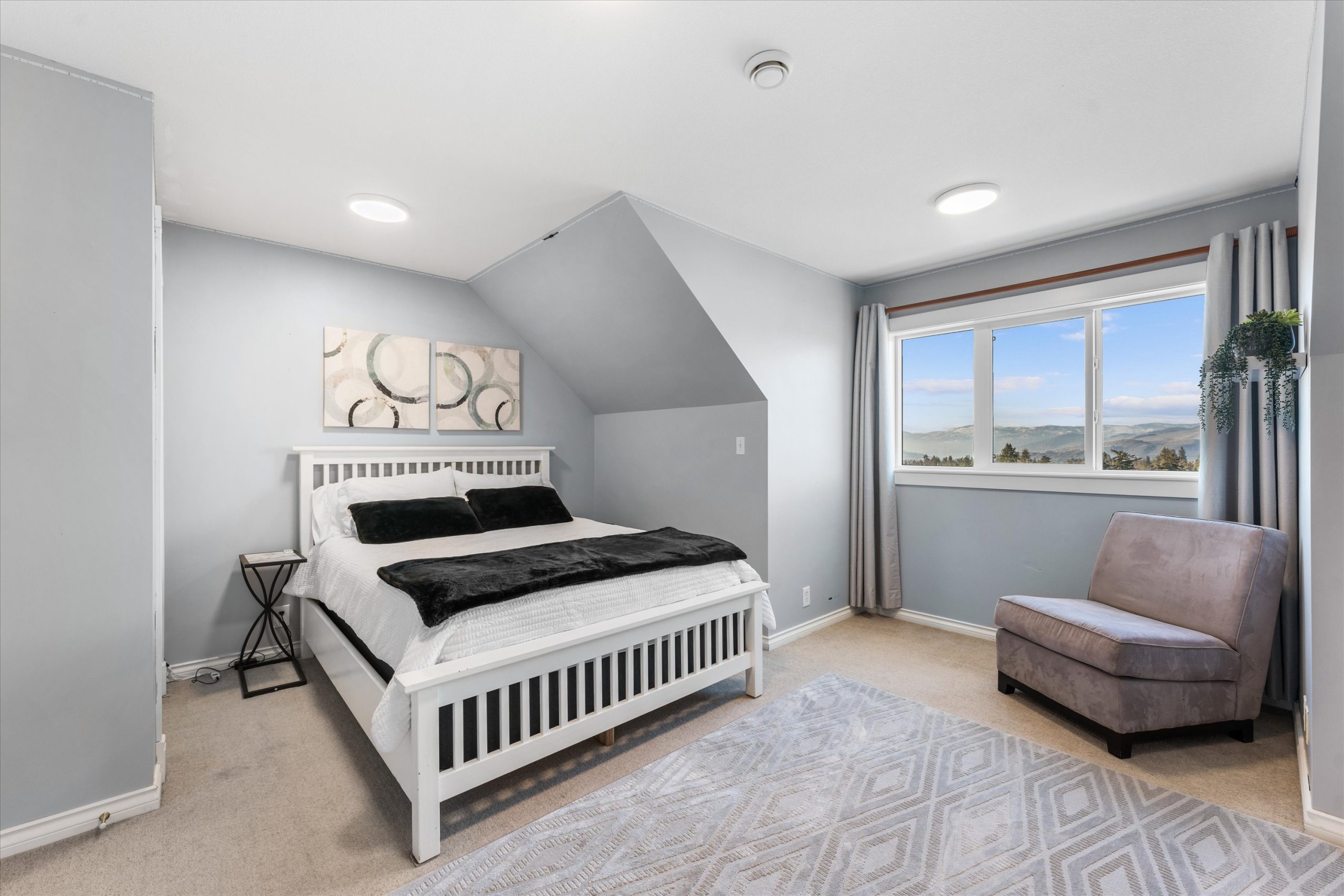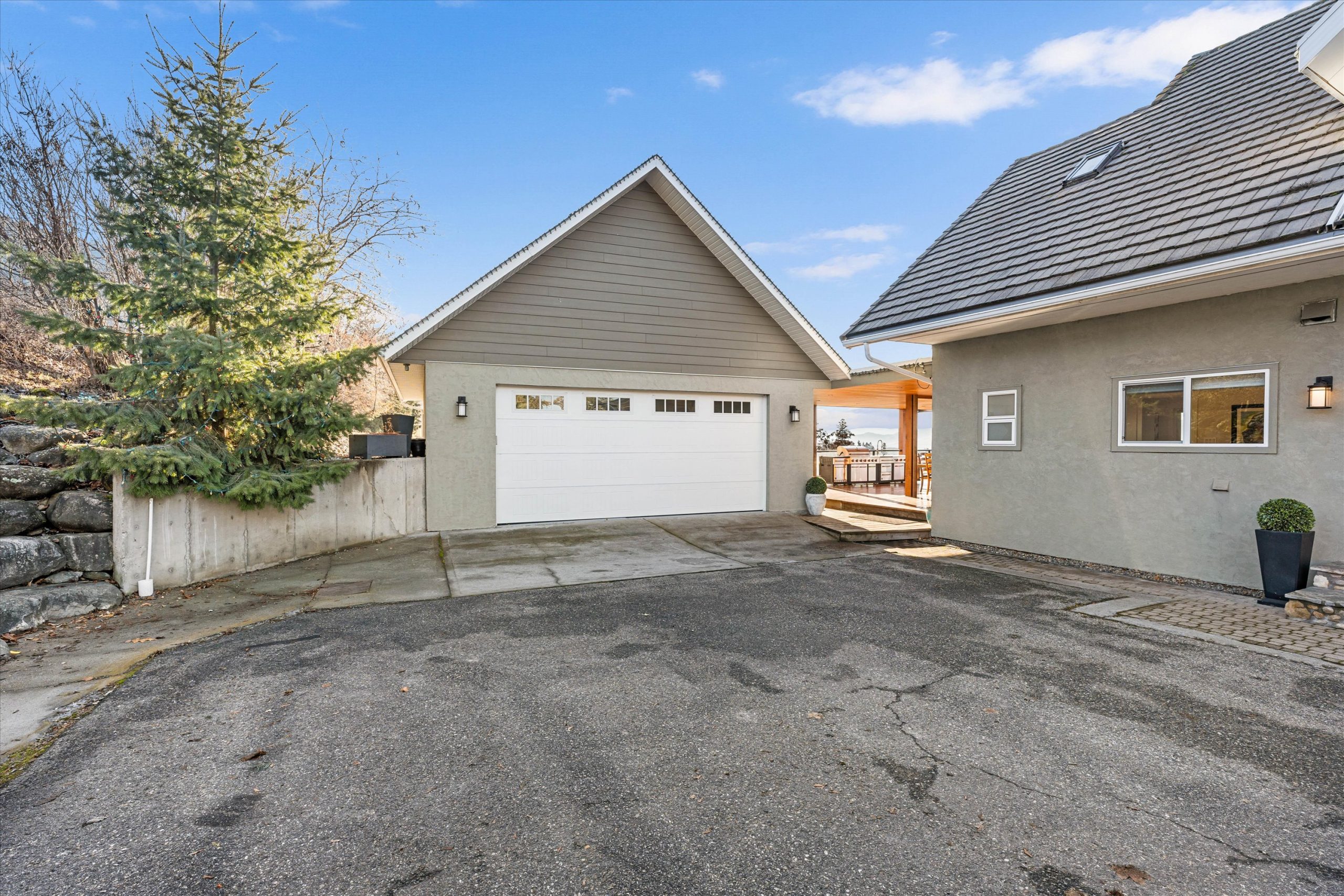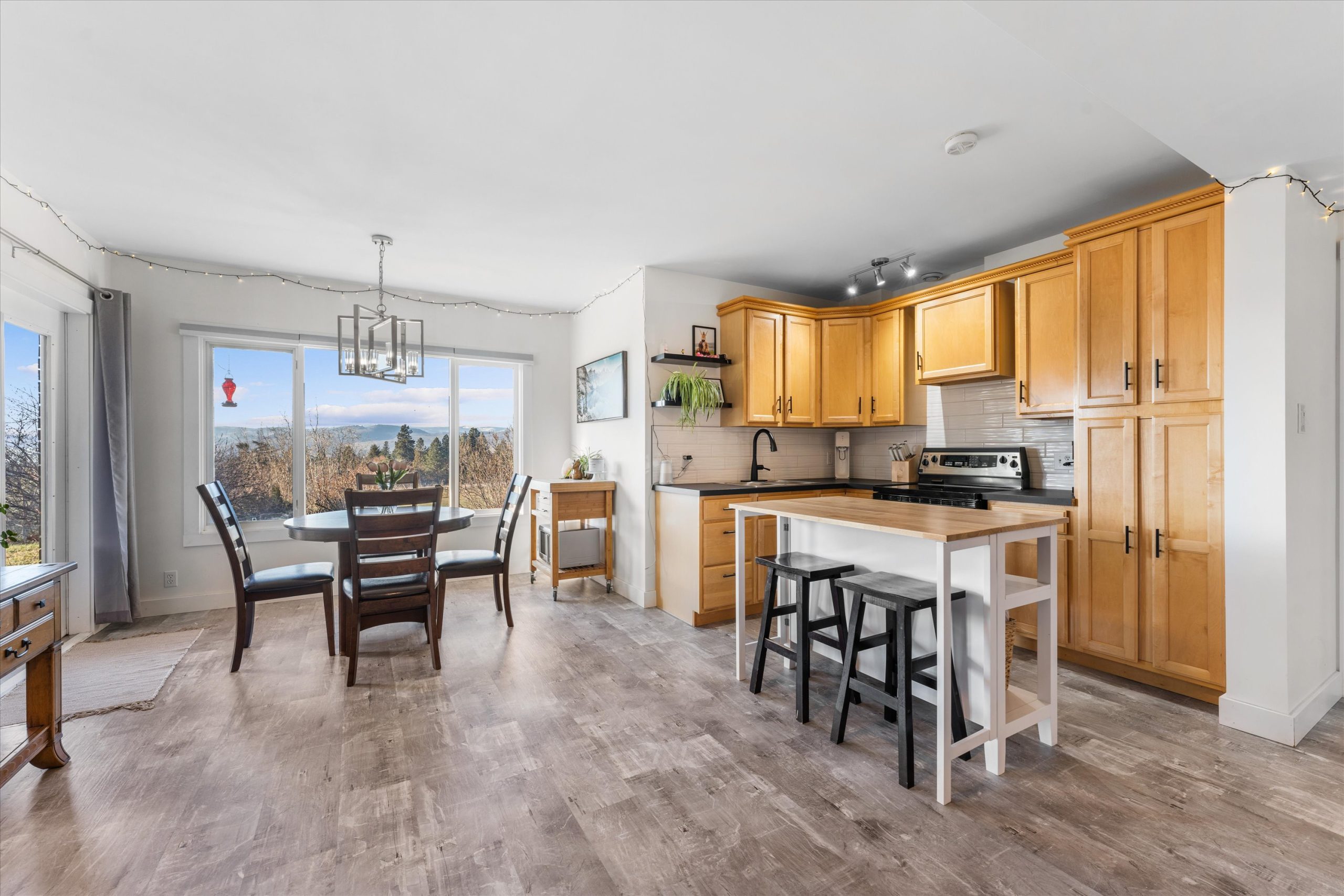 A chef’s kitchen with Wolf appliances, a Fisher & Paykel built-in fridge, butler’s pantry, and large island opens to sun-filled living and dining spaces, along with a covered west-facing Western Red Cedar deck with hot tub for effortless indoor-outdoor entertaining. The upper-level primary suite is a true retreat with lake and orchard views, a Juliette balcony, and spa-inspired ensuite, while a separate one-bedroom in-law suite on the lower level offers private access, parking, and a patio.