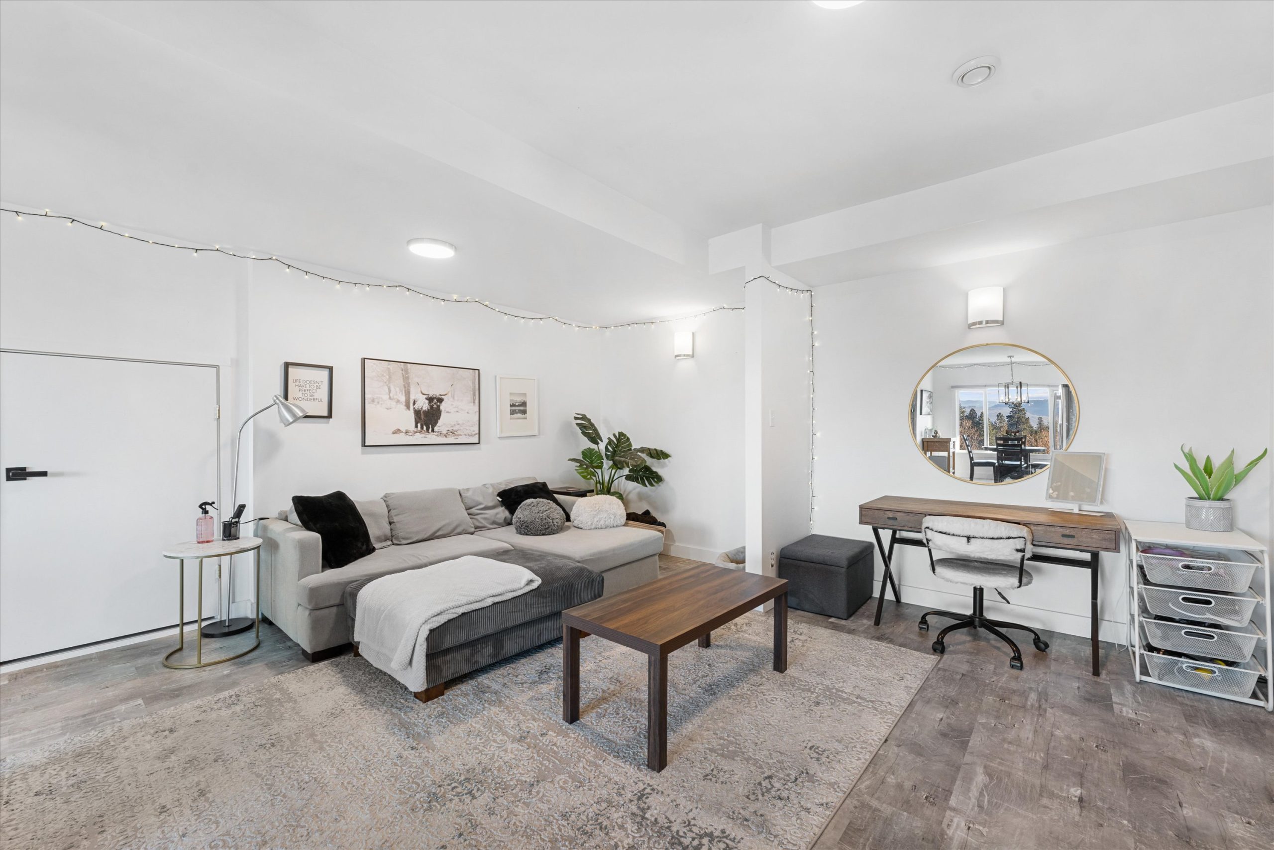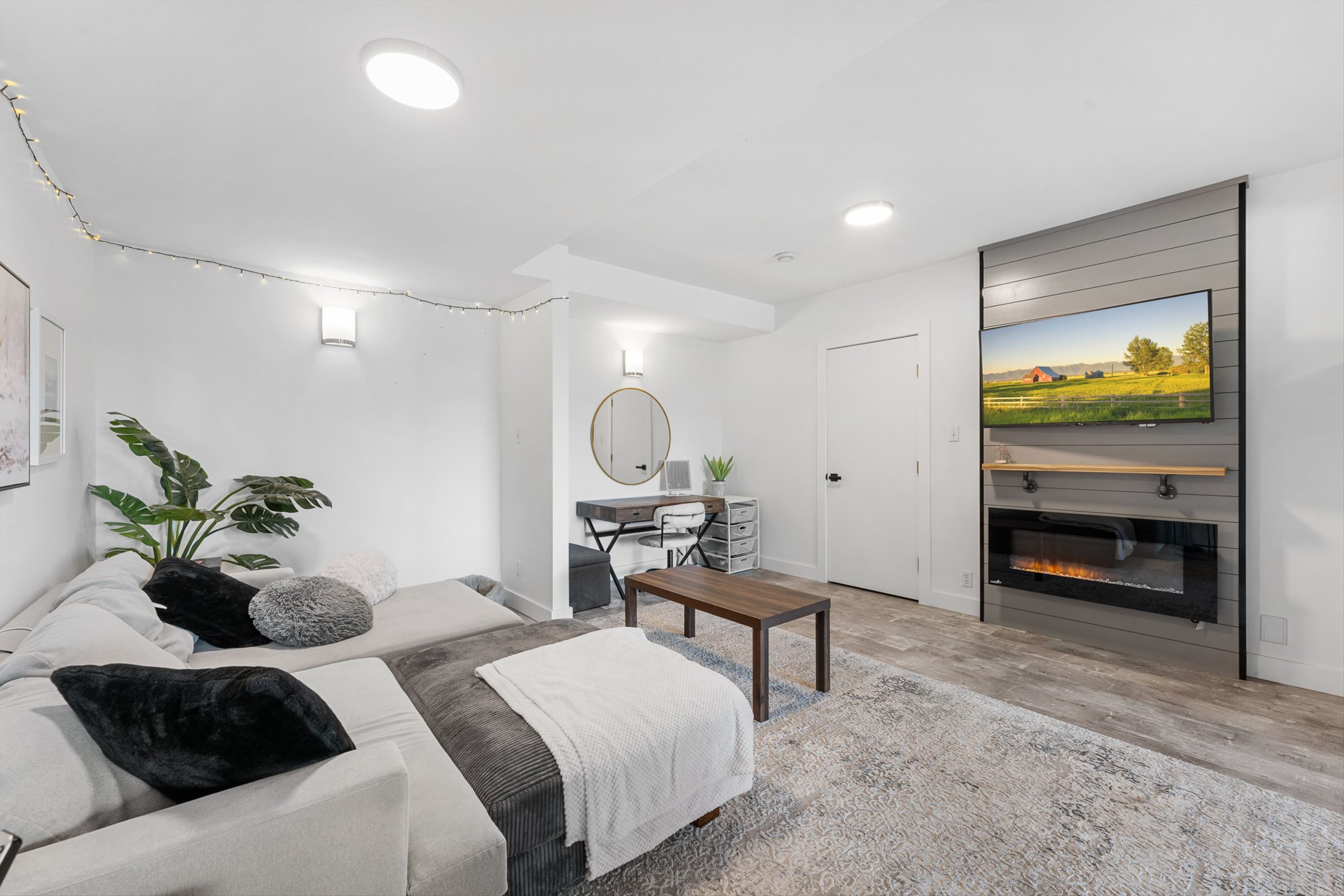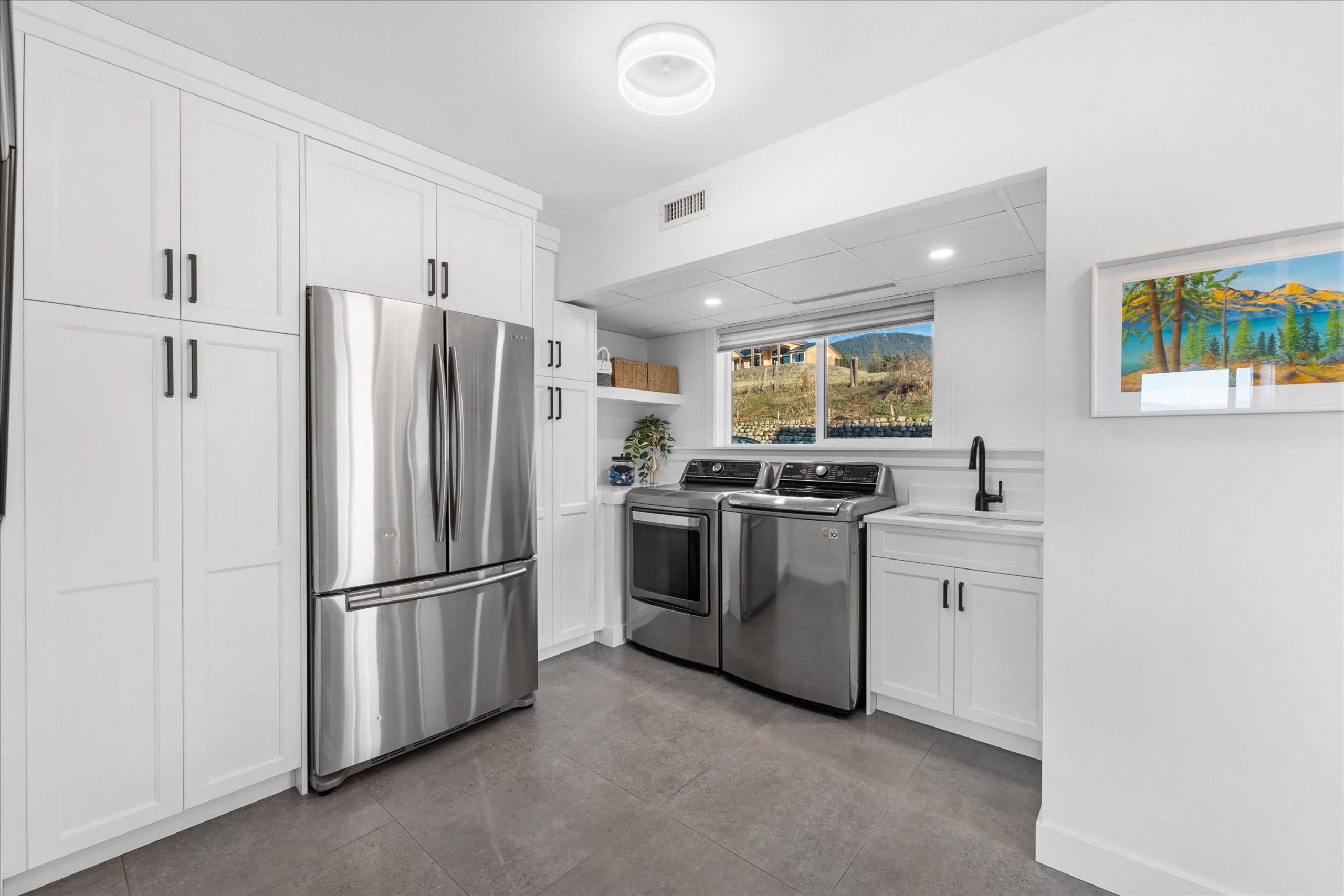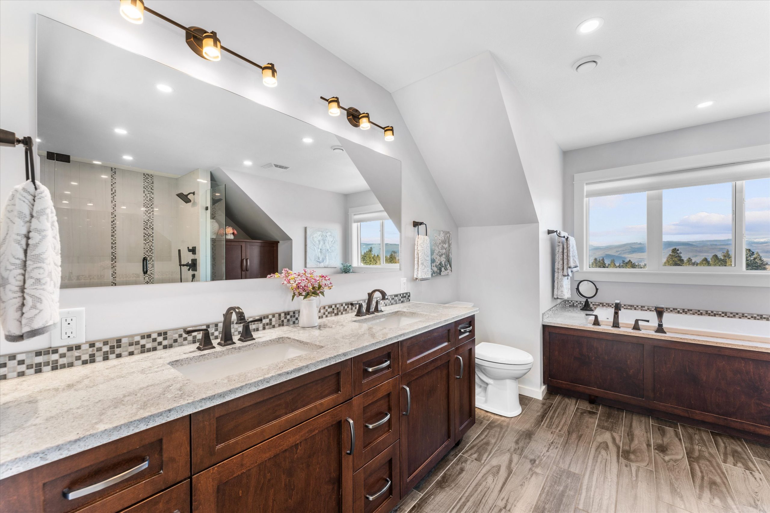 A chef’s kitchen with Wolf appliances, a Fisher & Paykel built-in fridge, butler’s pantry, and large island opens to sun-filled living and dining spaces, along with a covered west-facing Western Red Cedar deck with hot tub for effortless indoor-outdoor entertaining. The upper-level primary suite is a true retreat with lake and orchard views, a Juliette balcony, and spa-inspired ensuite, while a separate one-bedroom in-law suite on the lower level offers private access, parking, and a patio.