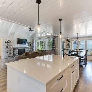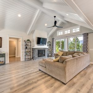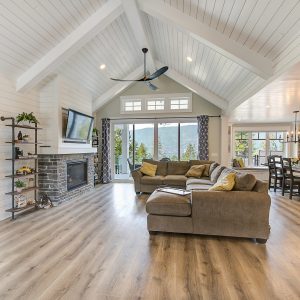 Nearly New Lake view home in picturesque Lake Country BC! 70% of the home is a newly constructed addition remainder completely renovated! Comfortable Farmhouse Decor with clean lines and neutral palette! Fully fenced yard with electric gate great for smaller children and animals. Tiered landscaping with black top driveway leading to the garage. Exterior finished in Hardie Board with stone accents. Covered main entry with immediate views of the lake and beyond. Open concept living, dining and kitchen all enjoying the ambience of the fireplace and the stunning view. Ample cabinetry with additional pantry storage, under cabinet lighting and tile backsplash. Generous sized centre island with quartz surface.