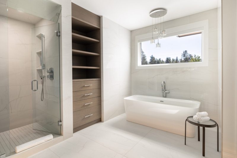 Upstairs, you’ll find 2 primary bedrooms, 3 additional bedrooms with ensuite bathrooms and spacious lakeview patio spanning the back of the house. The 1st primary suite offers balcony access, wet bar, a walk-in closet, a floating vanity, a luxurious bath tub, a large glass shower, and water closet. The 2nd primary suite offers patio access, lake views, 2 walk-in closets, and a spacious ensuite.