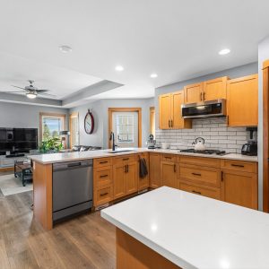 Fabulous location in the heart of Glenmore, a mature, family-friendly neighborhood just minutes from downtown Kelowna. This home offers a spacious layout with room for everyone. The main level features both a family room that opens to the kitchen and a separate living room. The bright and open kitchen boasts ample counter space, wood cabinets, white quartz counters, a peninsula with seating, and stainless steel appliances.