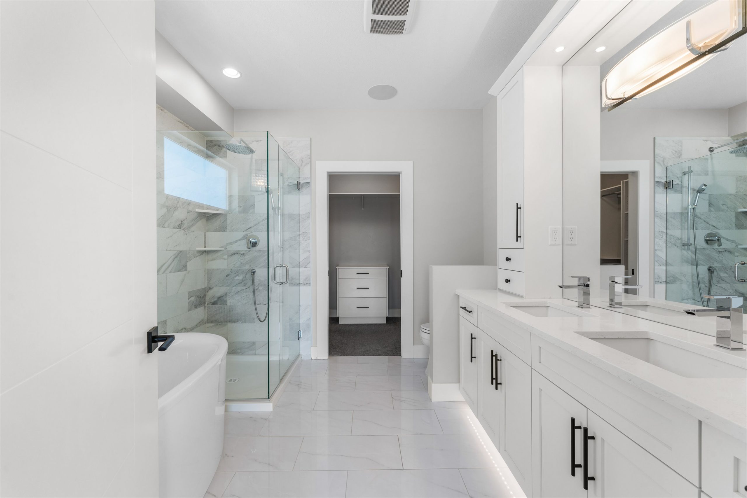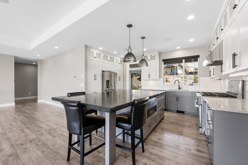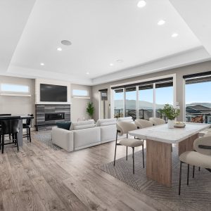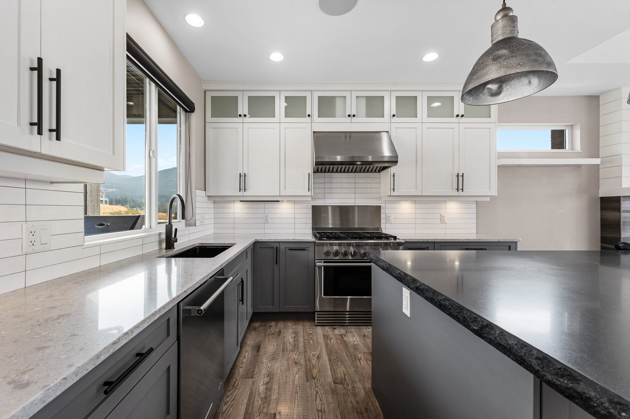 Set against the dramatic backdrop of the Foothills, this 5-bedroom, 3-bath modern residence offers a seamless blend of sophistication and comfort with sweeping views of the lake, city, and valley. Inside, soaring ceilings and wide windows flood the main living spaces with natural light, while the chef’s kitchen delights with a 6-burner Fisher & Paykel gas range, granite live-edge island, and custom cabinetry. The open-concept design flows to a covered deck with built-in speakers and an automatic awning, creating the ultimate setting for alfresco dining and evening entertaining. The primary suite offers a spa-inspired escape with a luxurious 5-piece ensuite featuring a freestanding soaker tub, glass shower, and dual vanities. Two additional bedrooms and a full bath complete the main level.