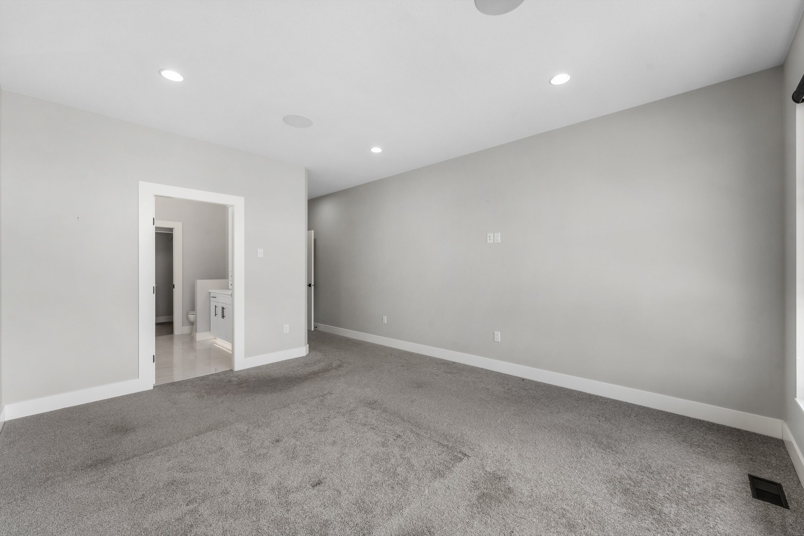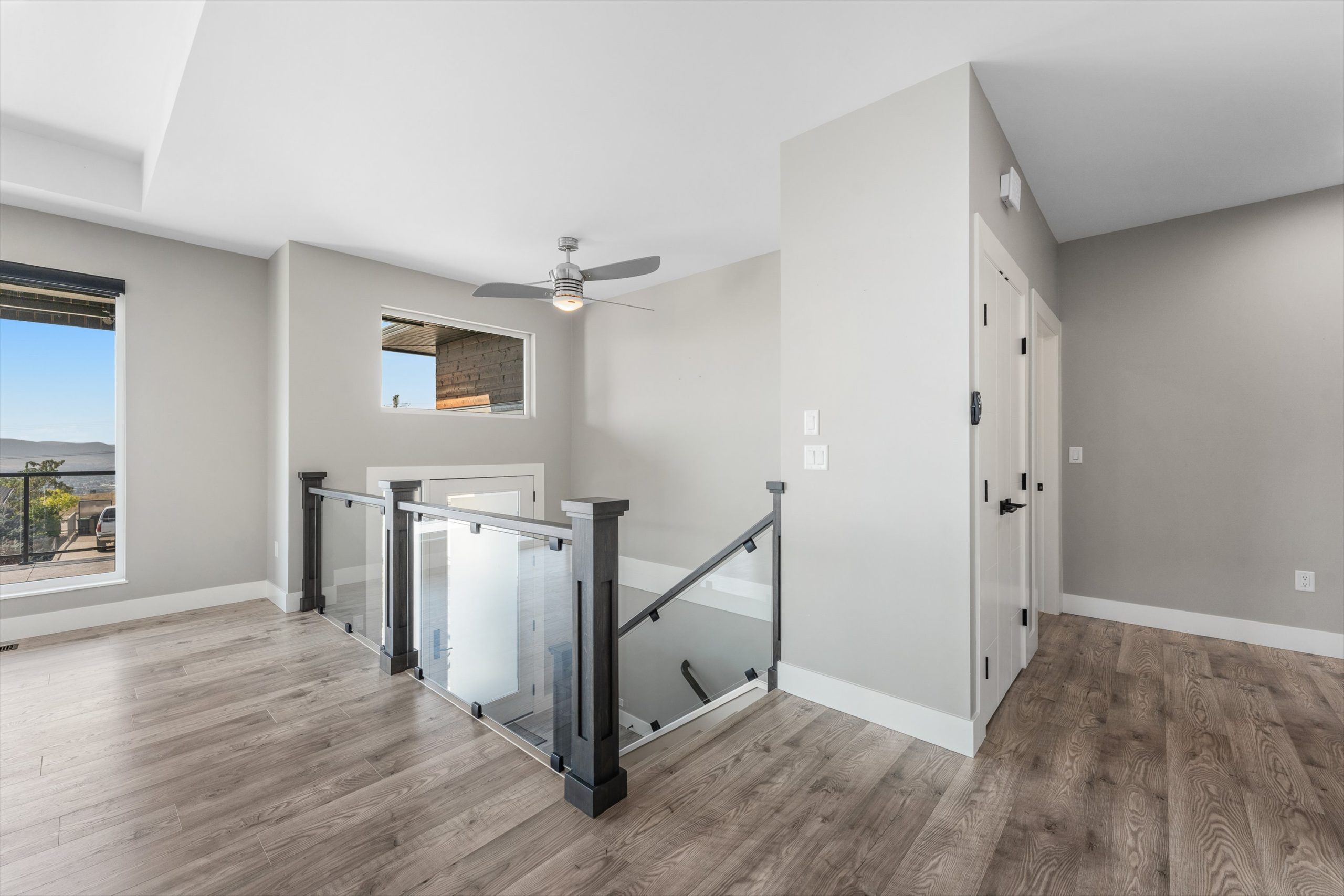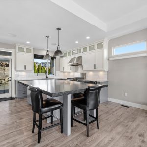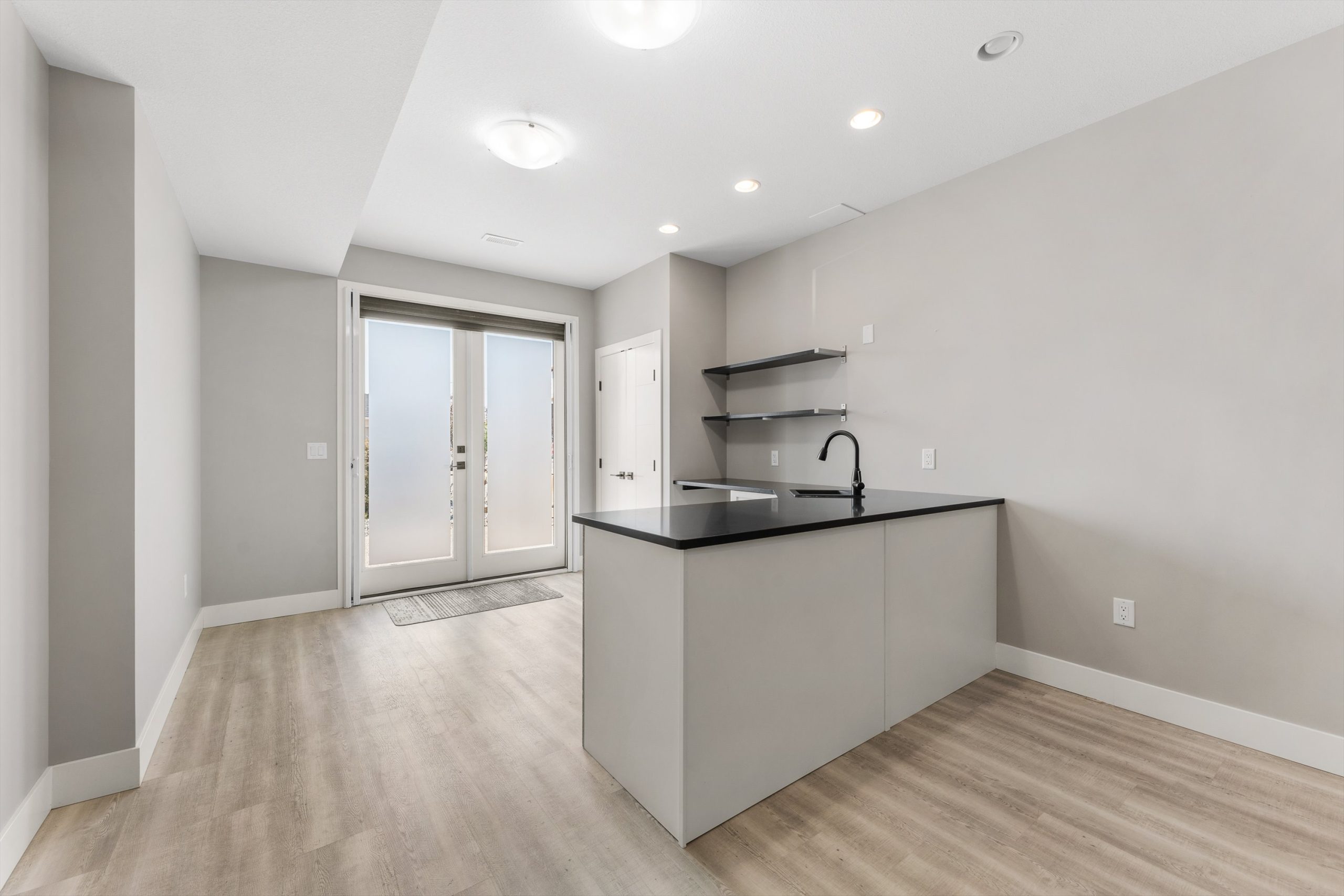 Set against the dramatic backdrop of the Foothills, this 5-bedroom, 3-bath modern residence offers a seamless blend of sophistication and comfort with sweeping views of the lake, city, and valley. Inside, soaring ceilings and wide windows flood the main living spaces with natural light, while the chef’s kitchen delights with a 6-burner Fisher & Paykel gas range, granite live-edge island, and custom cabinetry. The open-concept design flows to a covered deck with built-in speakers and an automatic awning, creating the ultimate setting for alfresco dining and evening entertaining. The primary suite offers a spa-inspired escape with a luxurious 5-piece ensuite featuring a freestanding soaker tub, glass shower, and dual vanities. Two additional bedrooms and a full bath complete the main level.