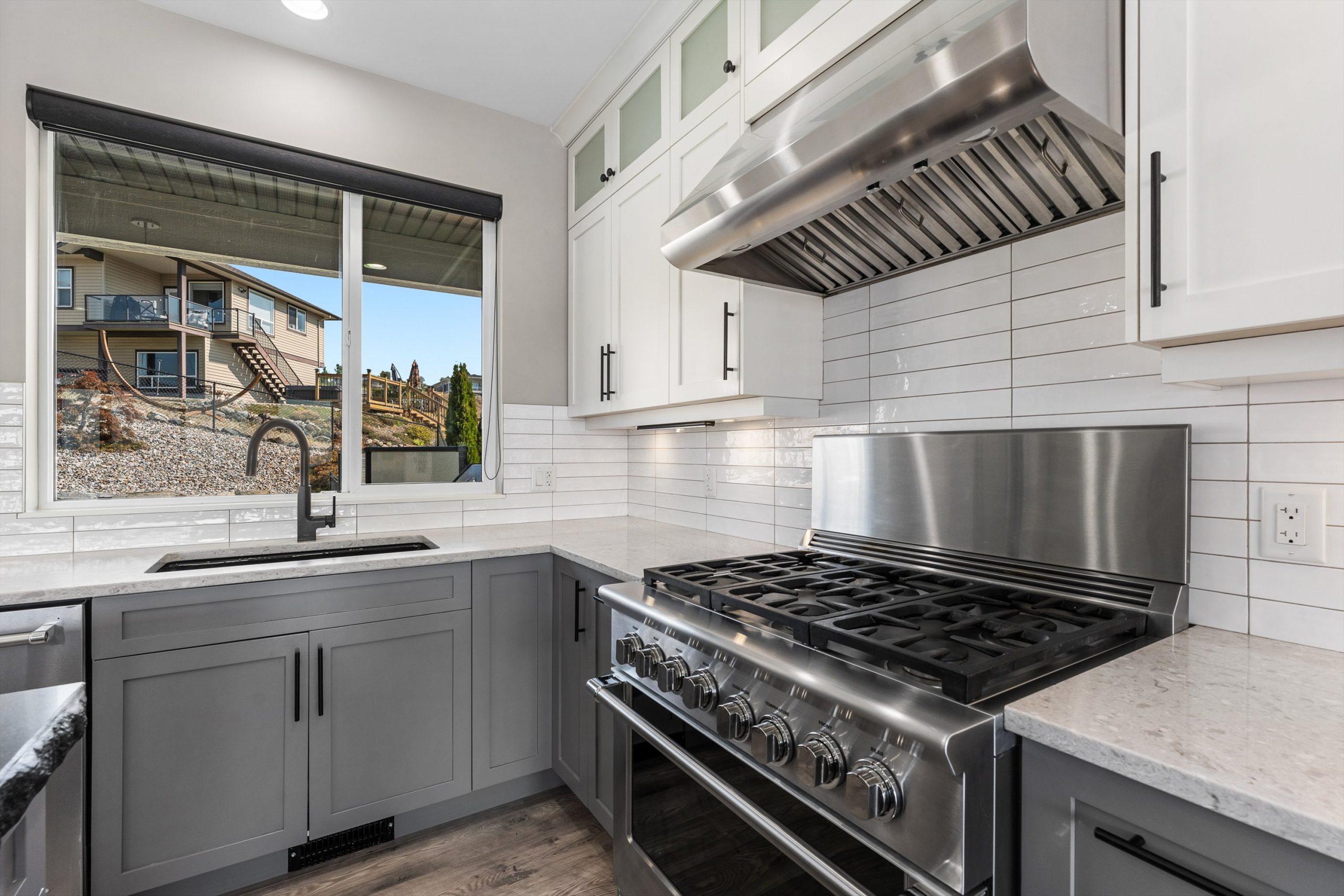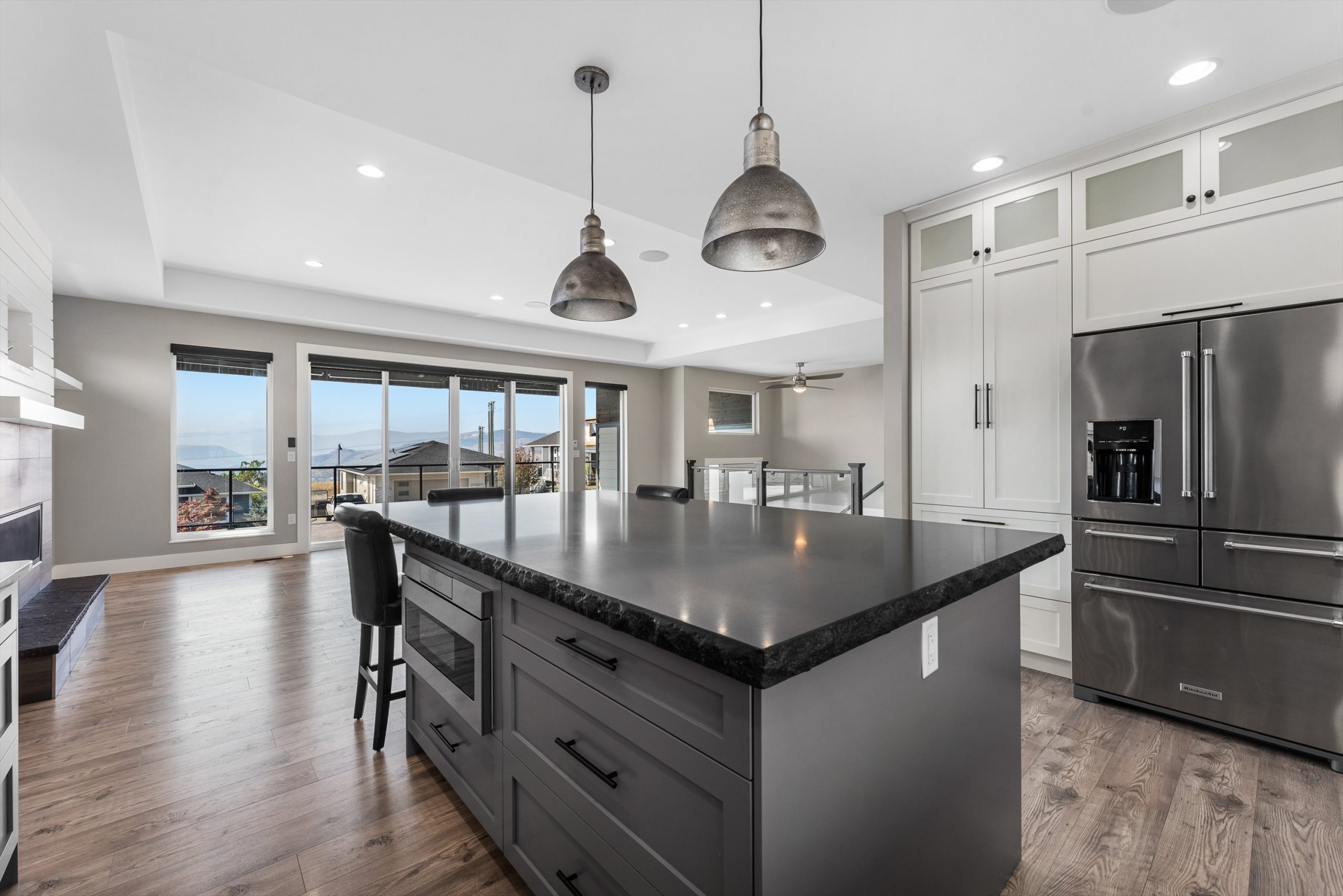 The lower floor presents a wealth of opportunity with a versatile rec room and wet bar, plus a fully contained 2-bedroom suite with private entrance, laundry hookups, and kitchen rough-ins—perfect for extended family or rental income. Practicality meets style with a heated triple garage finished in epoxy, custom laundry built-ins, and low-maintenance landscaping enhanced with artificial turf, rock accents, and a backyard deck. Thoughtfully designed for today’s lifestyle, this move-in ready property captures the best of Okanagan living—unparalleled views, modern luxury, and space for every chapter of life.