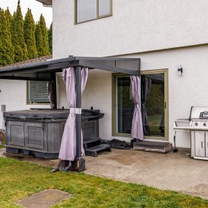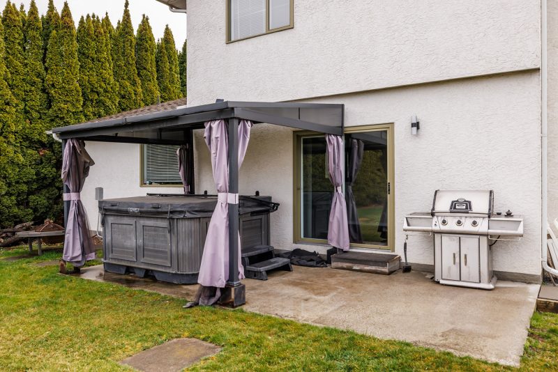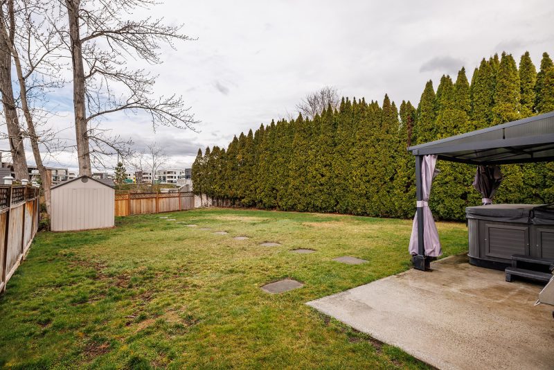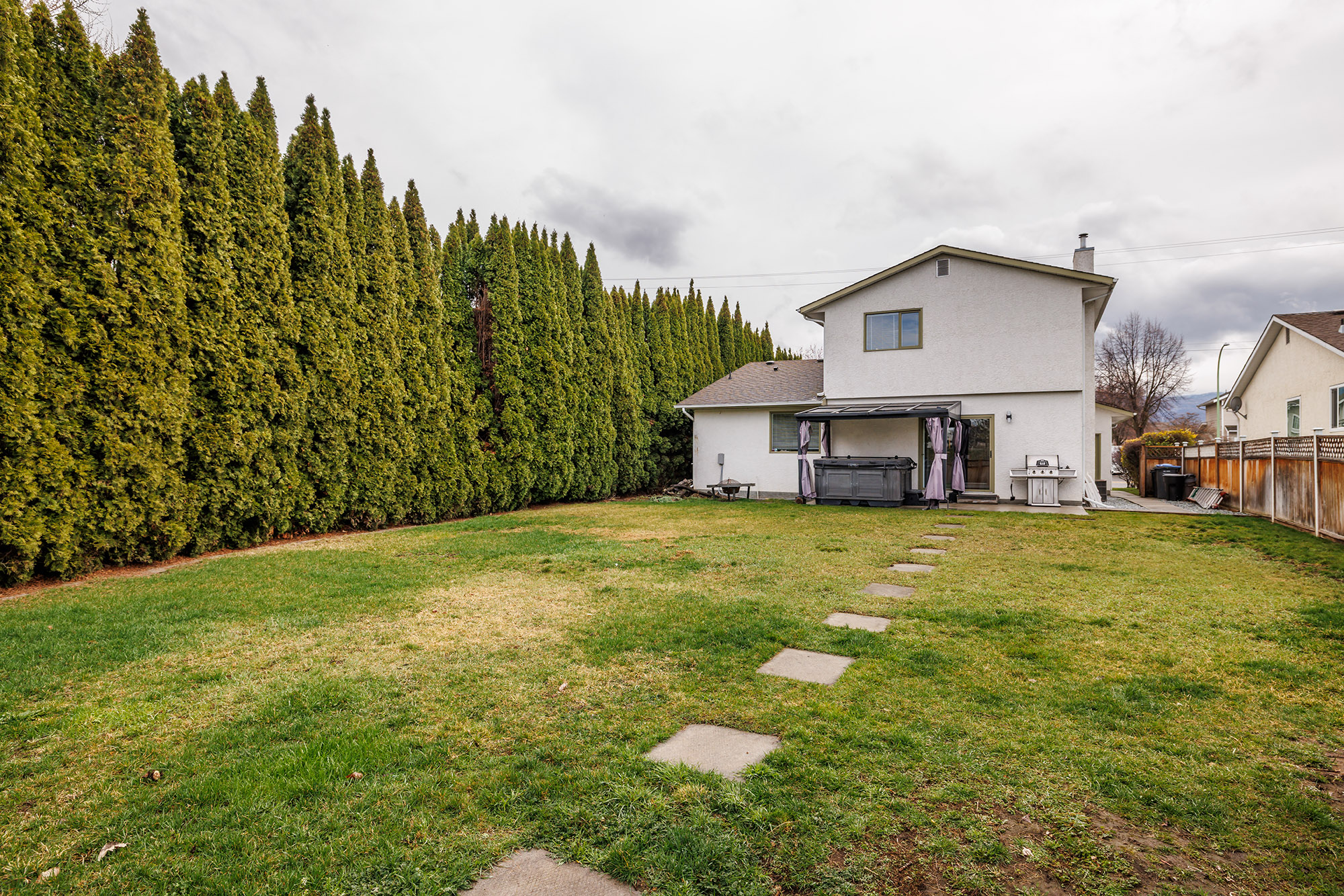 Set on a landscaped lot with grass, shrubs and a mature row of cedars, this two-storey home offers great curb appeal, a flat, partially fenced backyard with a hot tub, and an attached two-car garage.
