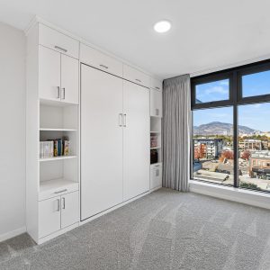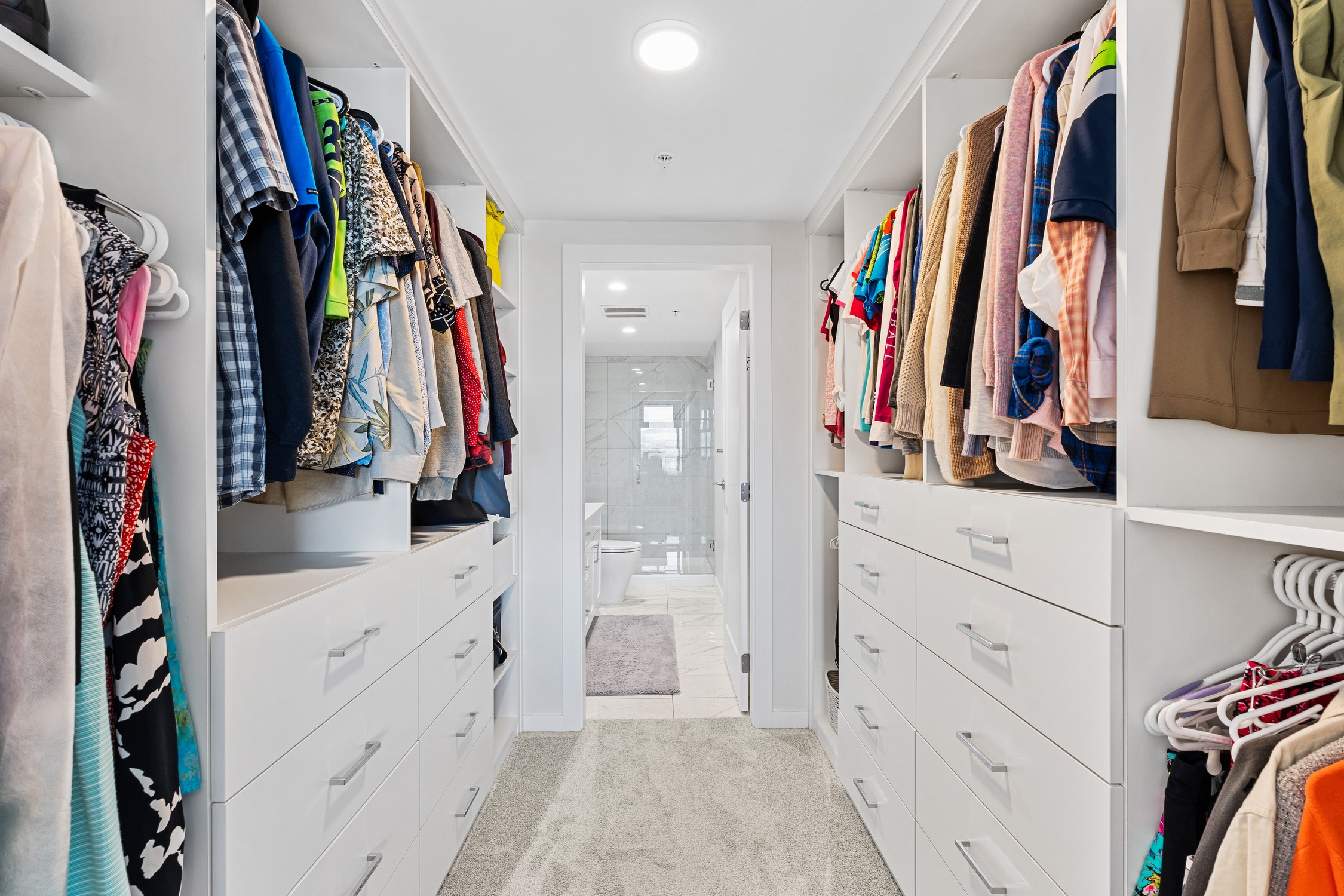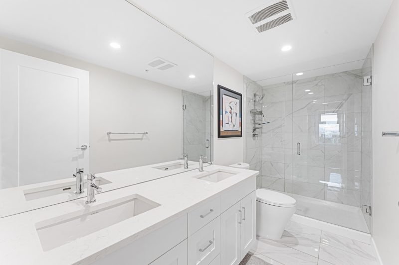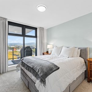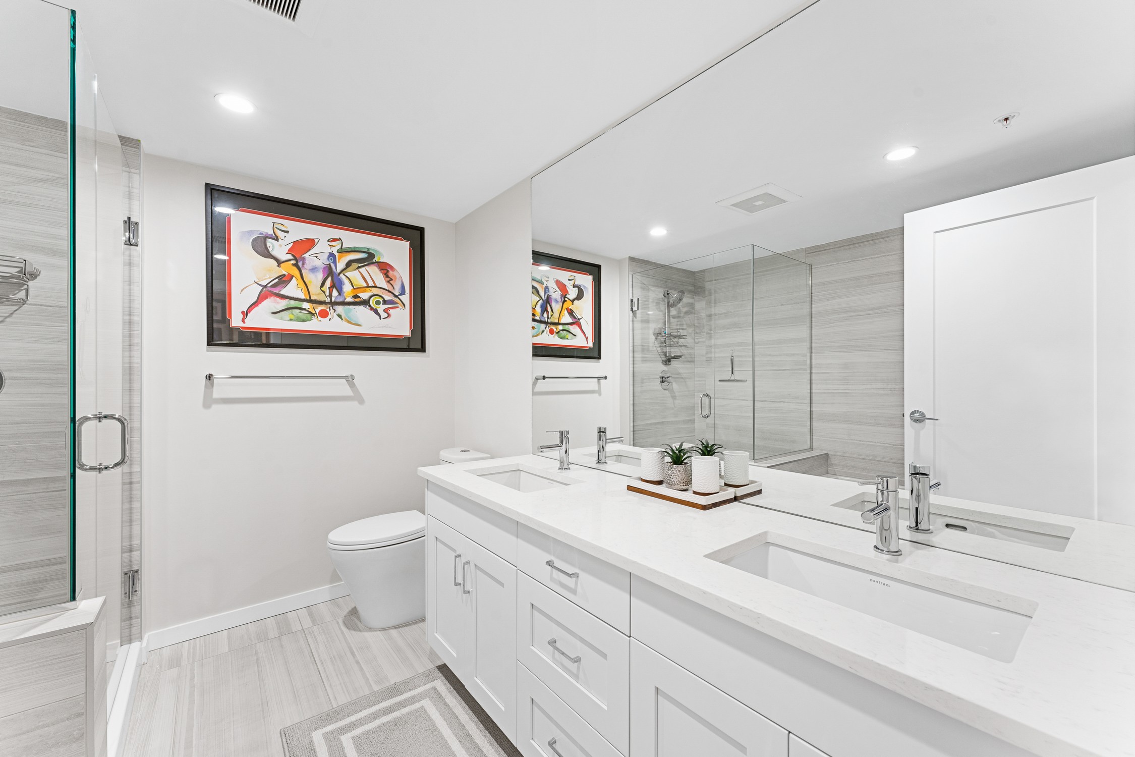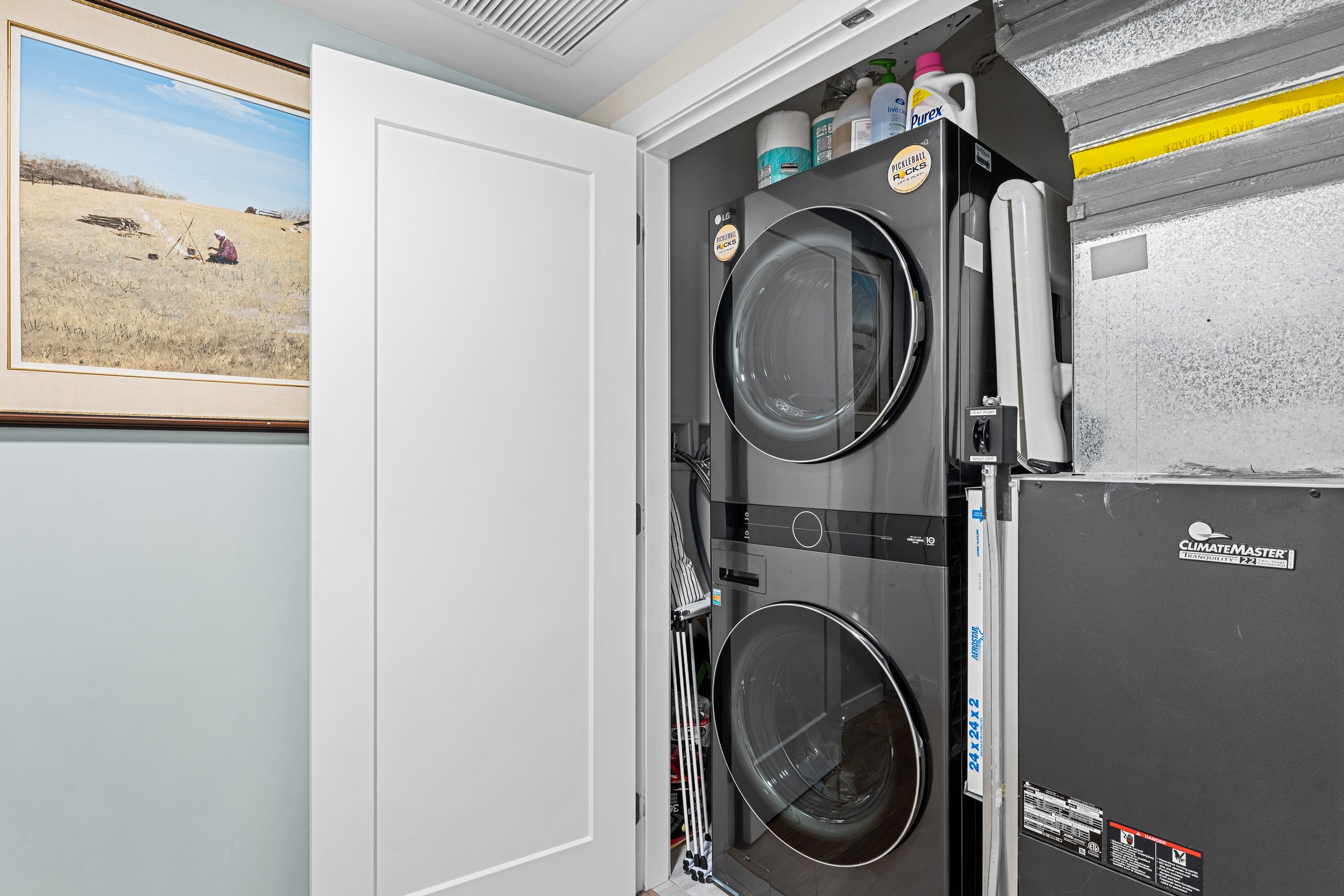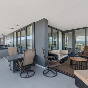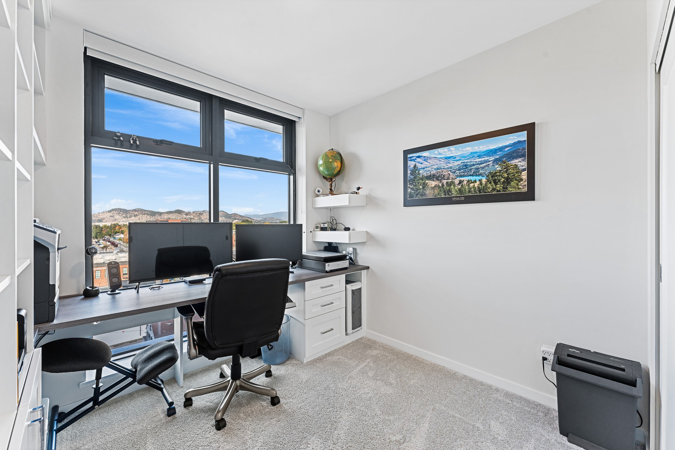 Step onto the spacious east-facing corner deck, perfectly protected from the elements to enjoy morning sun and cool afternoons, while taking in city, mountain, and partial lake views.