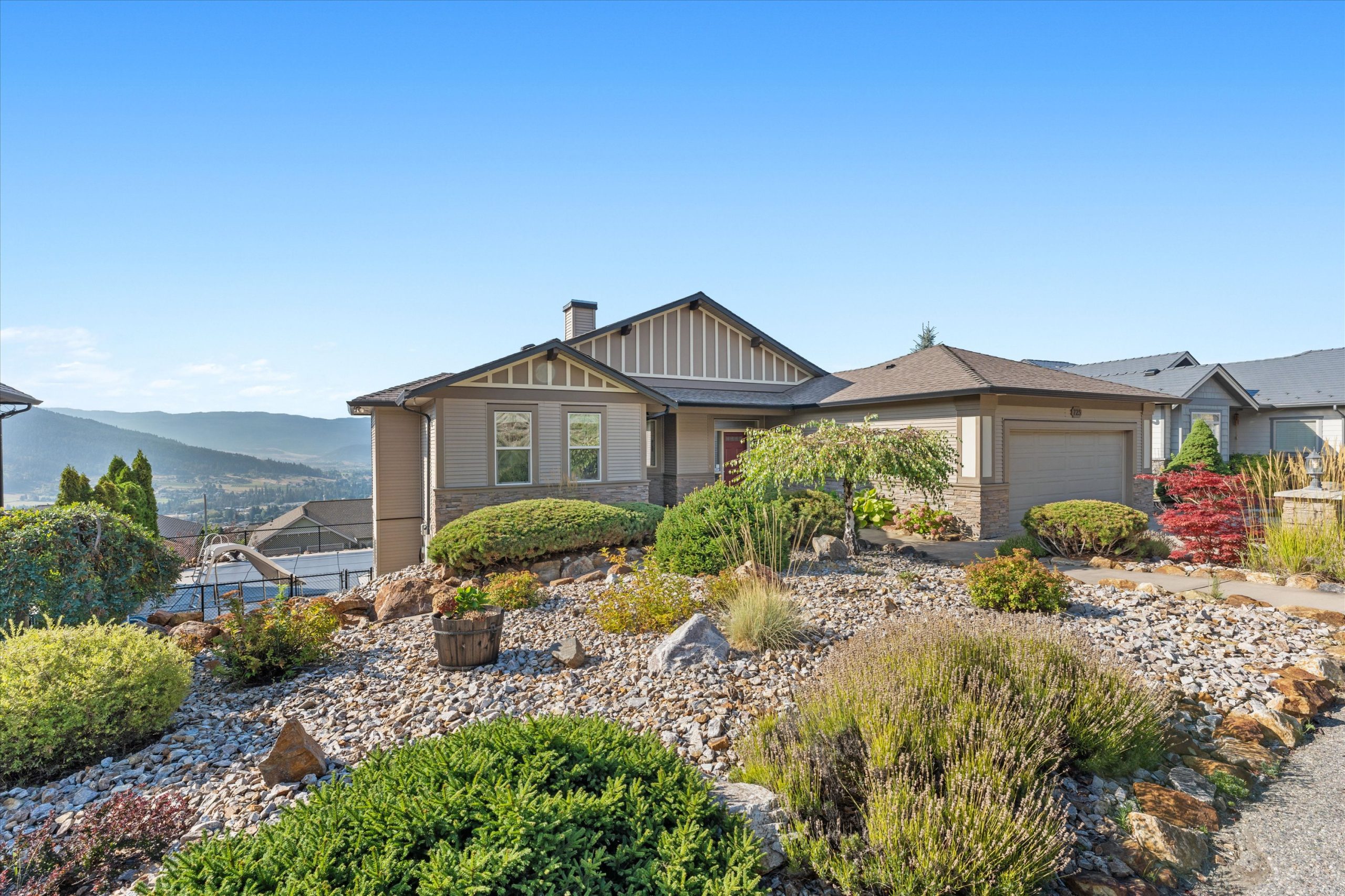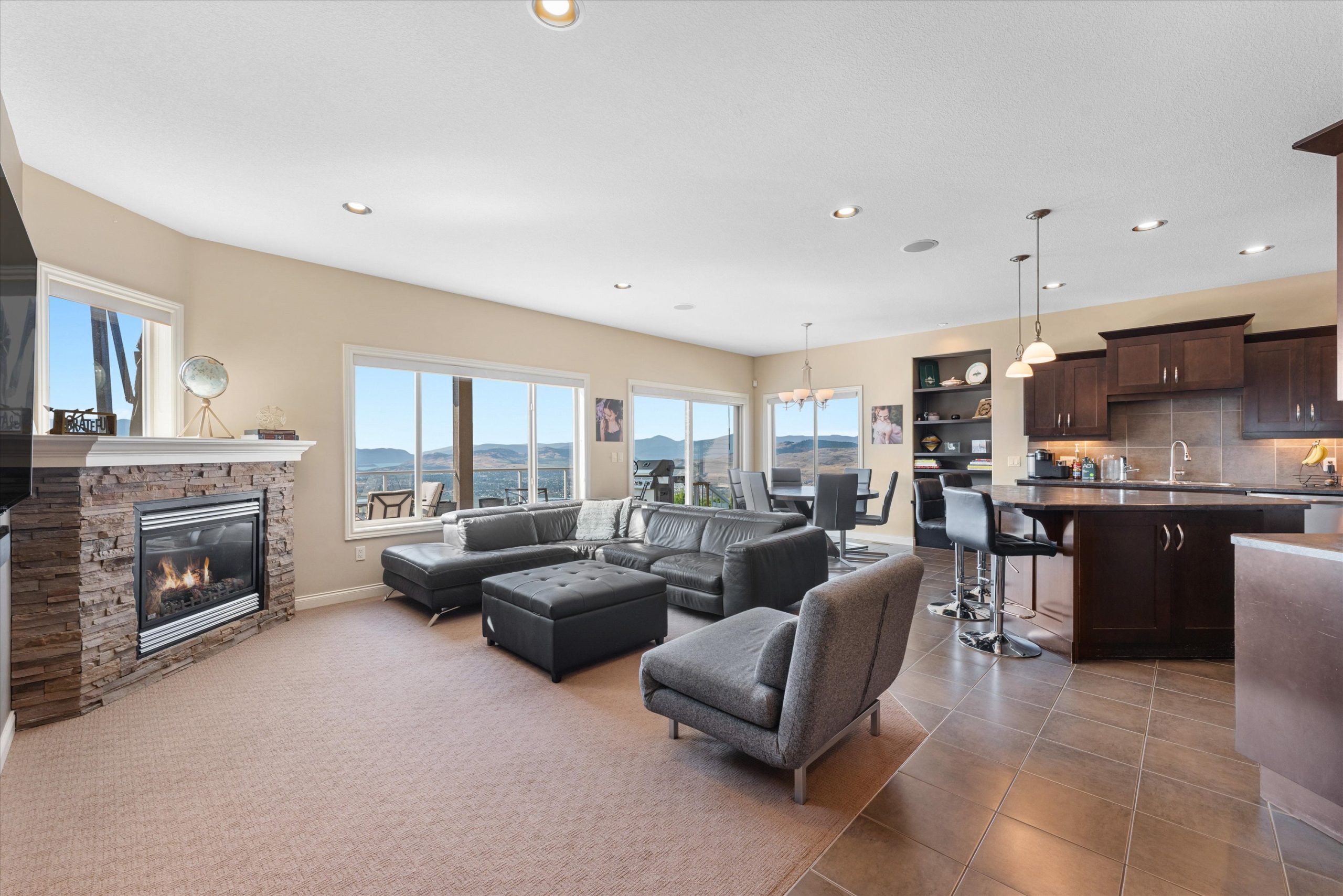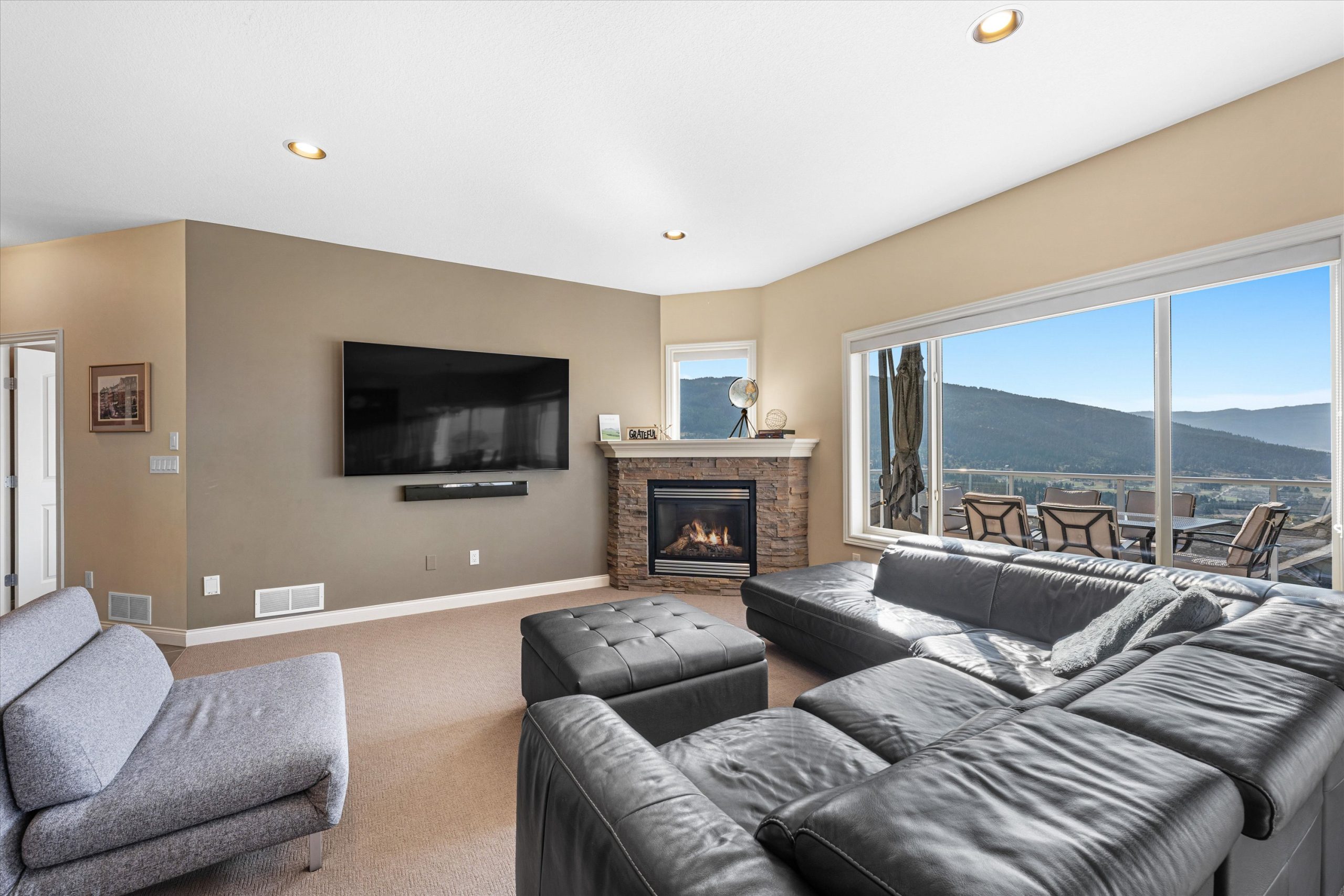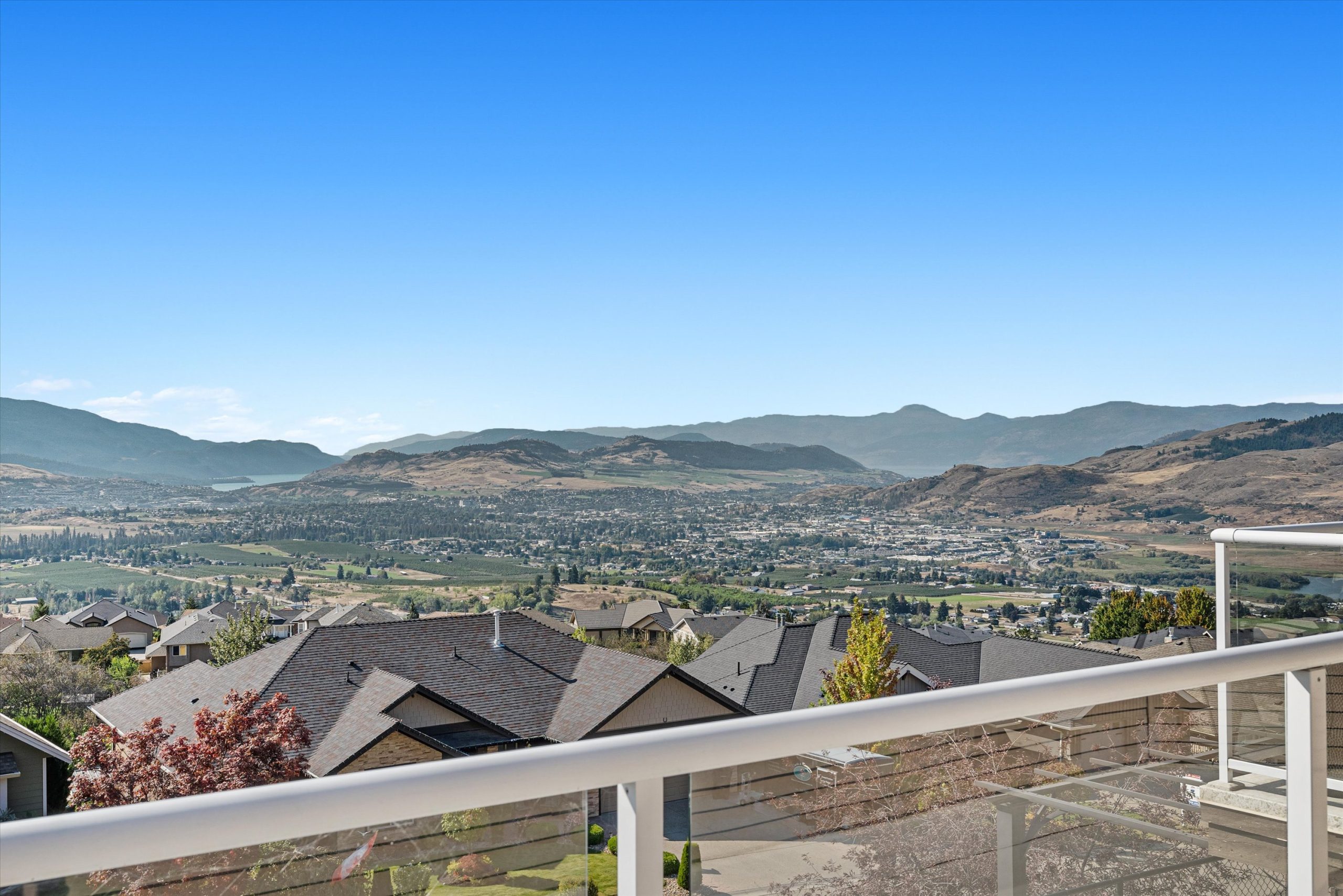 Perched in Vernon’s Foothills with sweeping views of Kalamalka, Okanagan & Swan Lakes, mountains, city lights, & the entire valley. Original owners at this refined residence that blends comfort, entertainment & family living less then 15 minutes from Silver Star Resort or Kalamalka Lake. Main level offers open-concept living with a chef’s kitchen featuring a massive island, pantry, & premium appliances. The dining & living areas extend seamlessly to a full-length balcony with glass railings, panoramic vistas, & walk-down access to the pool. A stone-surround fireplace anchors the living room, while the primary suite showcases breathtaking views, a walk-in closet, and a spa-inspired ensuite. A second bedroom, 5-pc bath, & laundry with garage access complete this level.