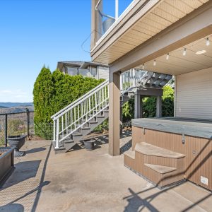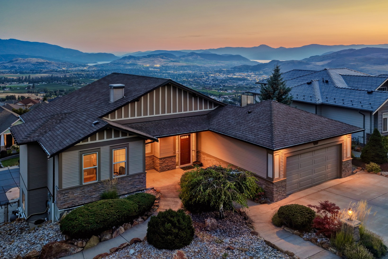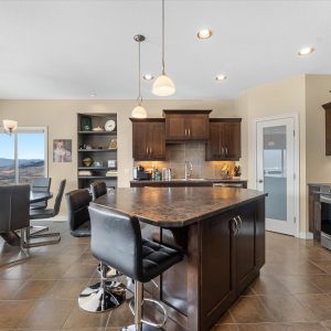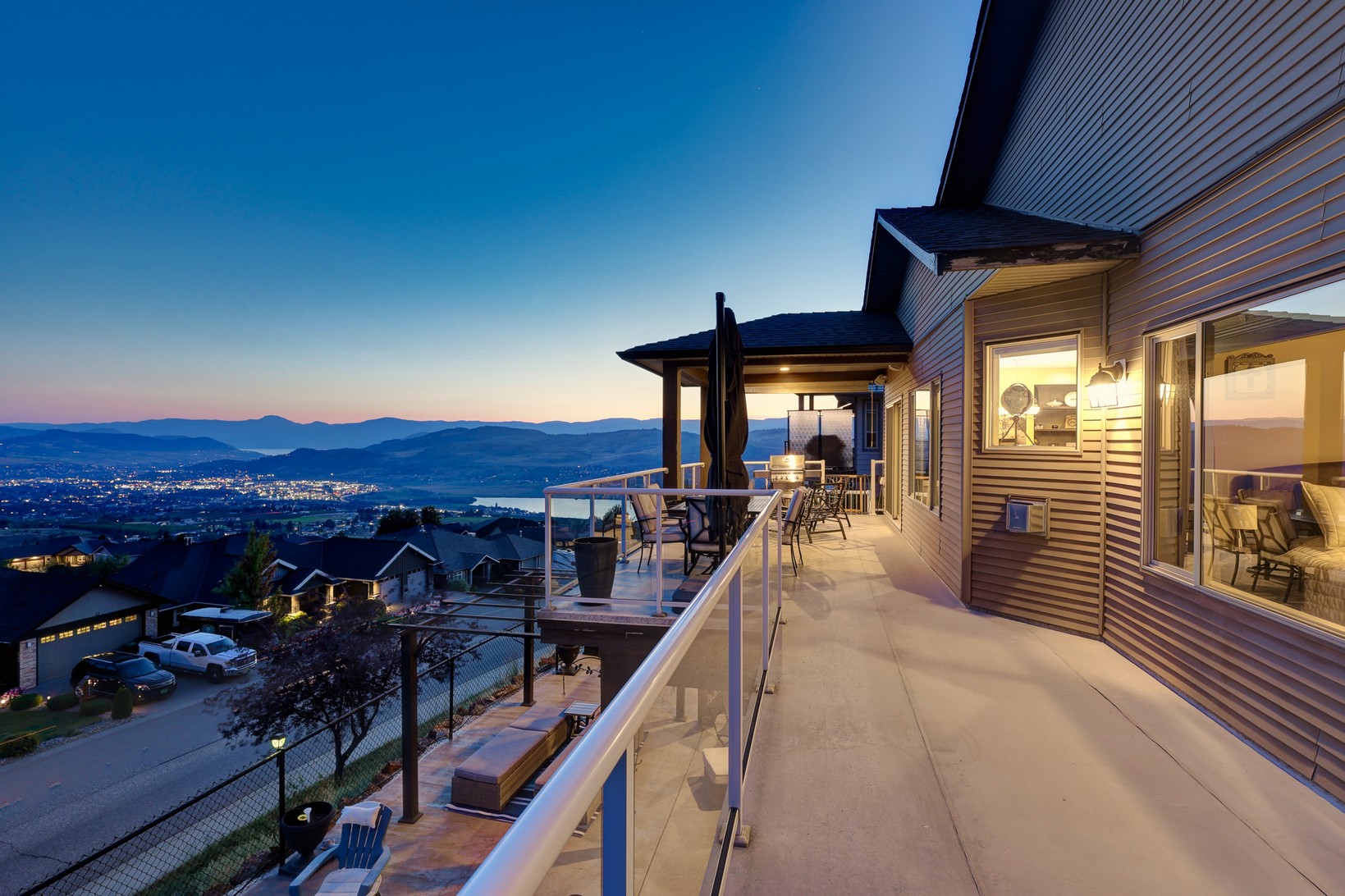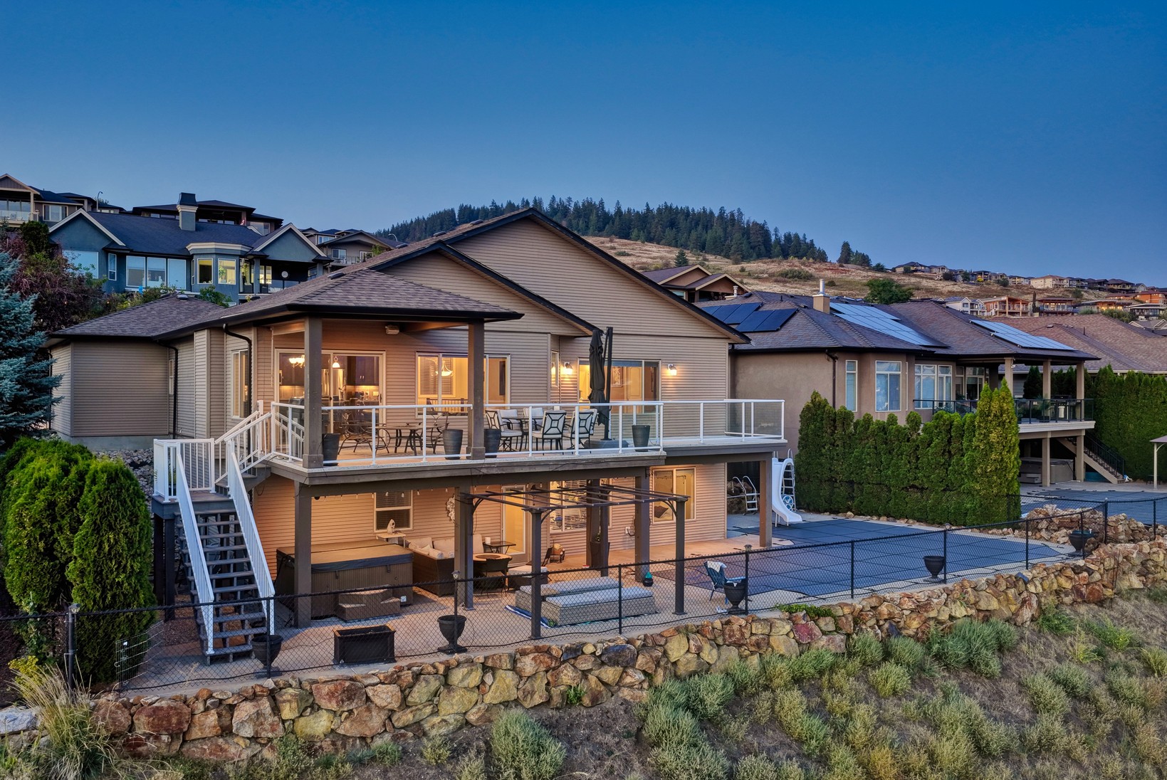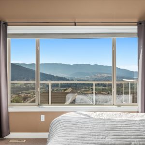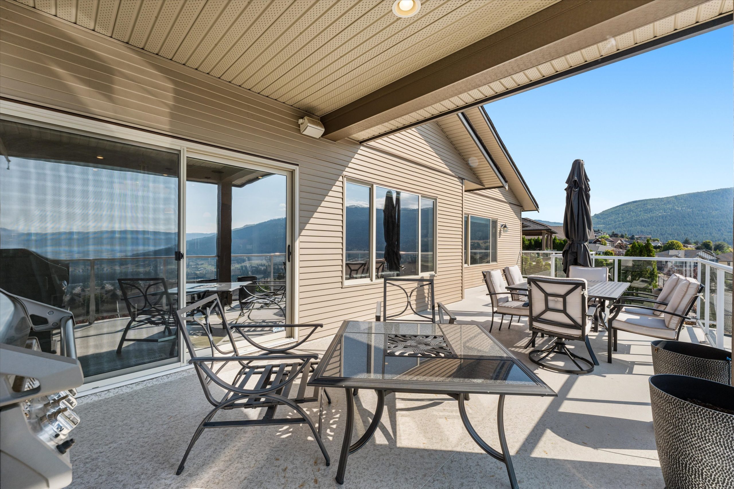 Perched in Vernon’s Foothills with sweeping views of Kalamalka, Okanagan & Swan Lakes, mountains, city lights, & the entire valley. Original owners at this refined residence that blends comfort, entertainment & family living less then 15 minutes from Silver Star Resort or Kalamalka Lake. Main level offers open-concept living with a chef’s kitchen featuring a massive island, pantry, & premium appliances. The dining & living areas extend seamlessly to a full-length balcony with glass railings, panoramic vistas, & walk-down access to the pool. A stone-surround fireplace anchors the living room, while the primary suite showcases breathtaking views, a walk-in closet, and a spa-inspired ensuite. A second bedroom, 5-pc bath, & laundry with garage access complete this level.
