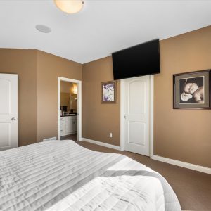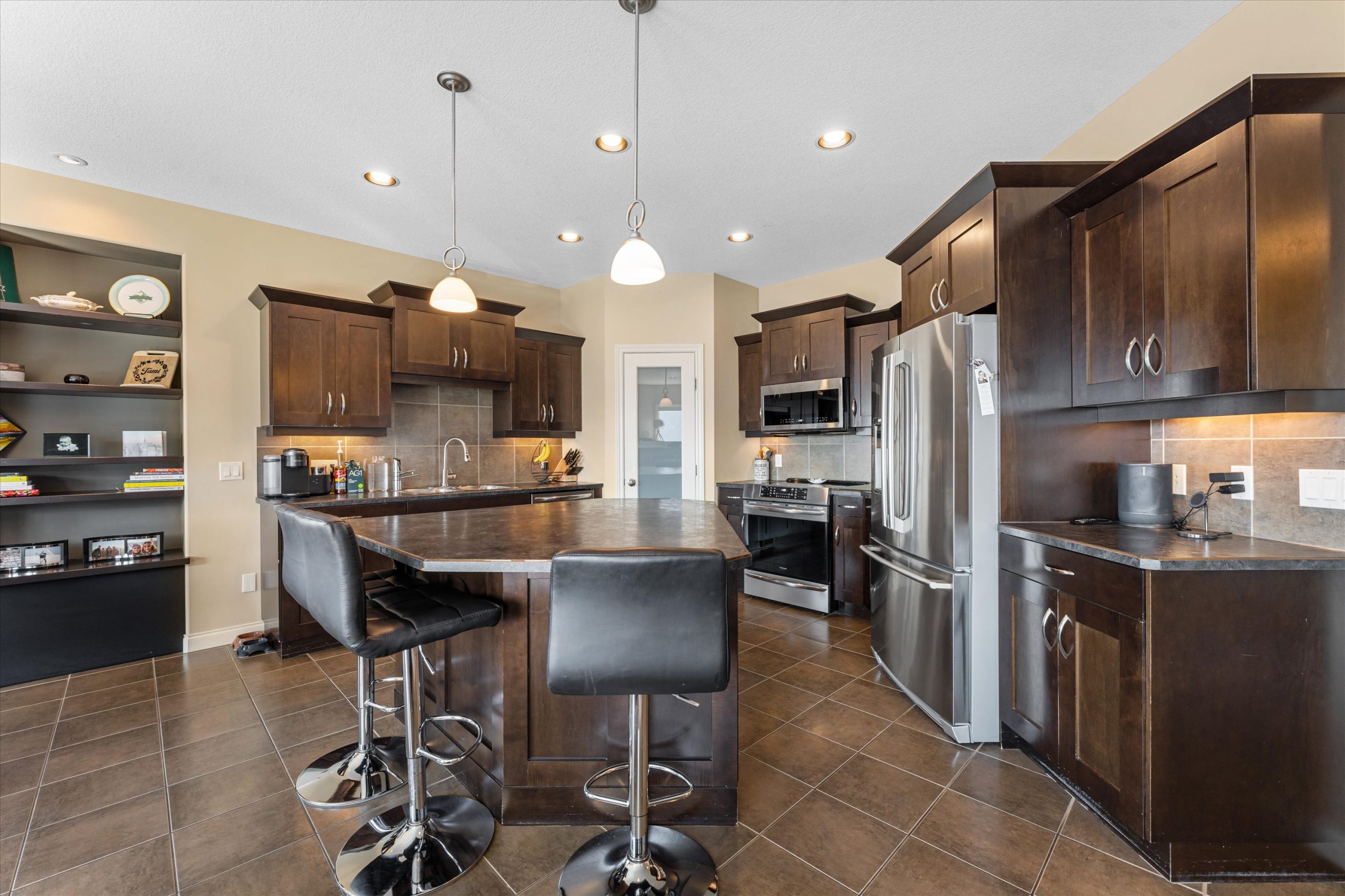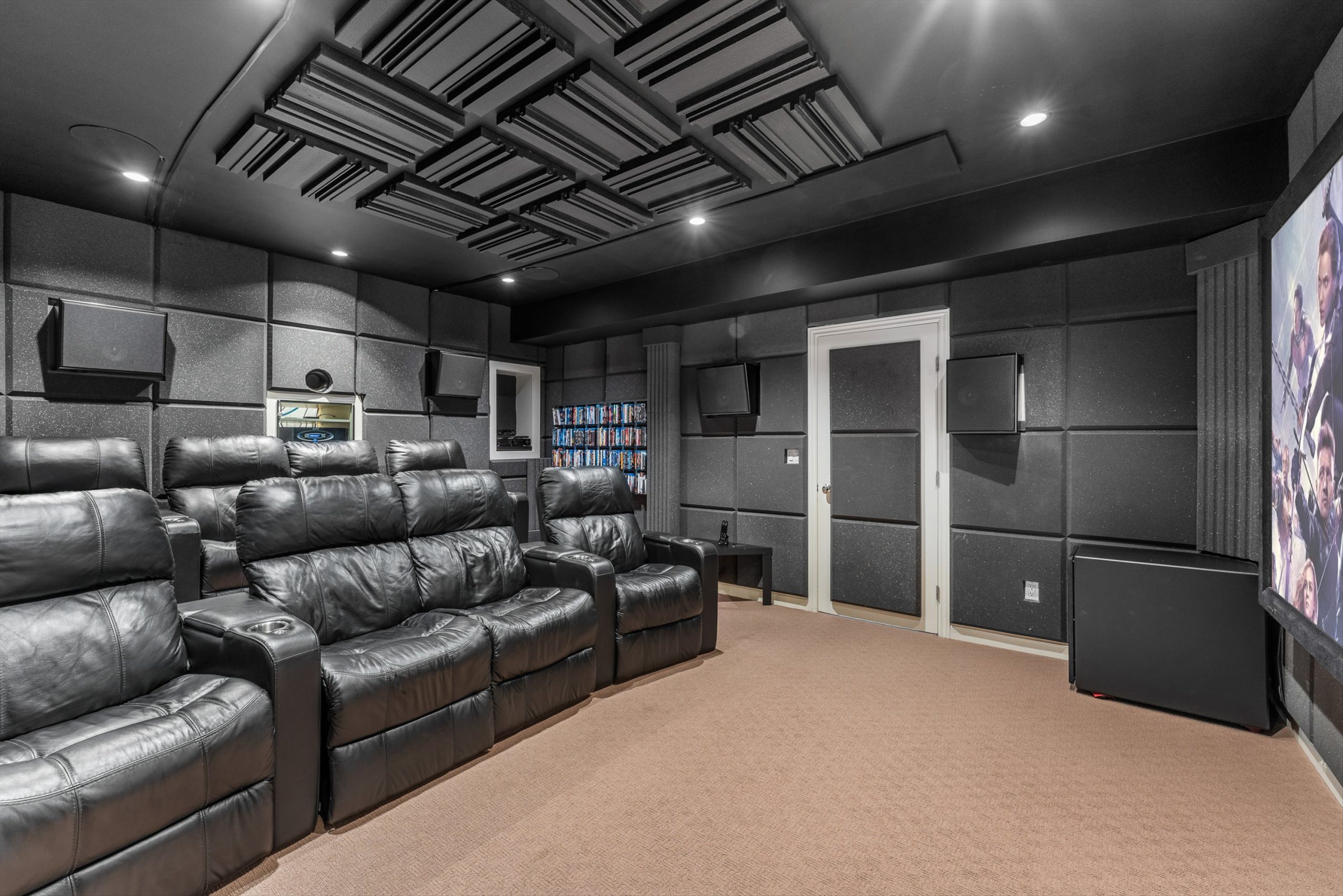 A true cinematic experience in this home with better than theatre sound! This home has a custom-built home theatre with professional acoustic treatments; 13.2 Dolby Atmos surround sound, 4K projector, over 10ft. screen & tiered recliner seating. The lower level is designed for relaxation & entertainment with a stylish bar, office, 2 guest bedrooms, a 3-pc bath, & easy access to the pool. Outside enjoy a resort-style retreat with an app-controlled saltwater pool with slide, hot tub, covered lounge, & cedar privacy screening. Double garage includes an EV charger & built-in shelving. HVAC include central vac, a WaterFurnace Synergy system, Nest thermostat, water filtration, & geothermal heating/cooling.