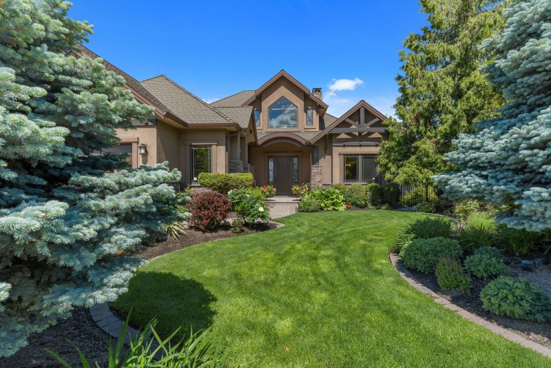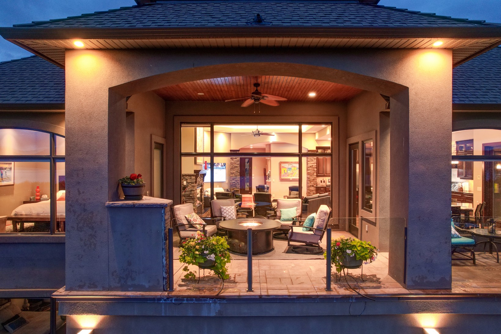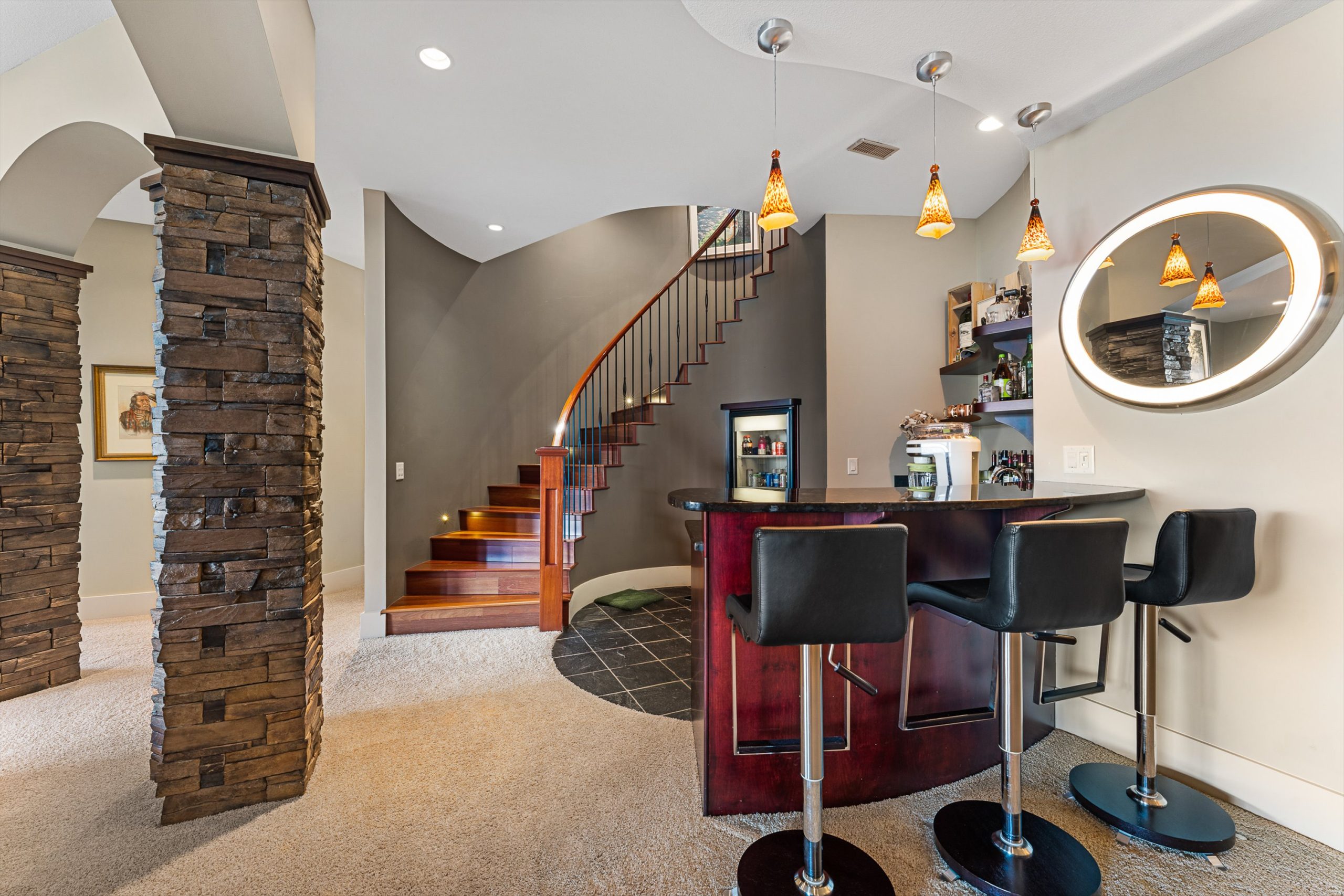 Automated with Control4 and designed for entertaining, enjoy the panoramic wraparound patio with fireplace above, or head to the lower level where a wet bar, theatre room, and spacious recreation area await. Three additional bedrooms, each with ensuite access, open to a covered patio with a putting green, hot tub, tranquil water feature & private backyard.