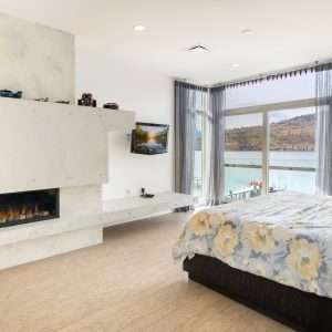 Resort like master bedroom with lake views and offering a French style balcony, spa-inspired ensuite with freestanding claw foot tub and full walk-in closet. Two additional bedrooms are located on this level along with an incredible home office and added flex space. The lower level of this residence is an entertainers delight with large family room, wet bar, wine cellar & two more bedrooms! Walk-out access to the covered patio and enjoy the hot-tub with waterfront views. Attached triple car garage. All this just a short drive from town, Predator Ridge Golf Course, wineries, skiing & International Airport!