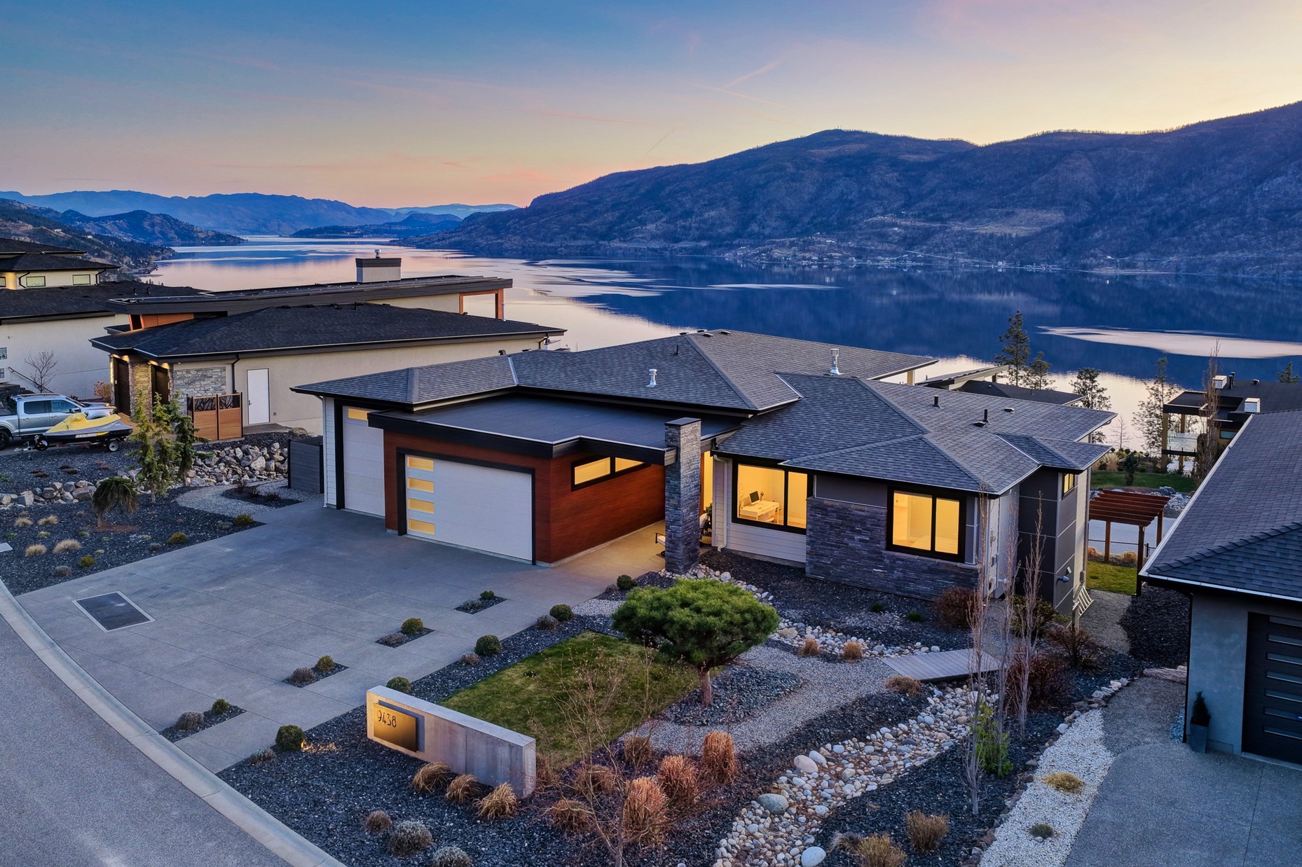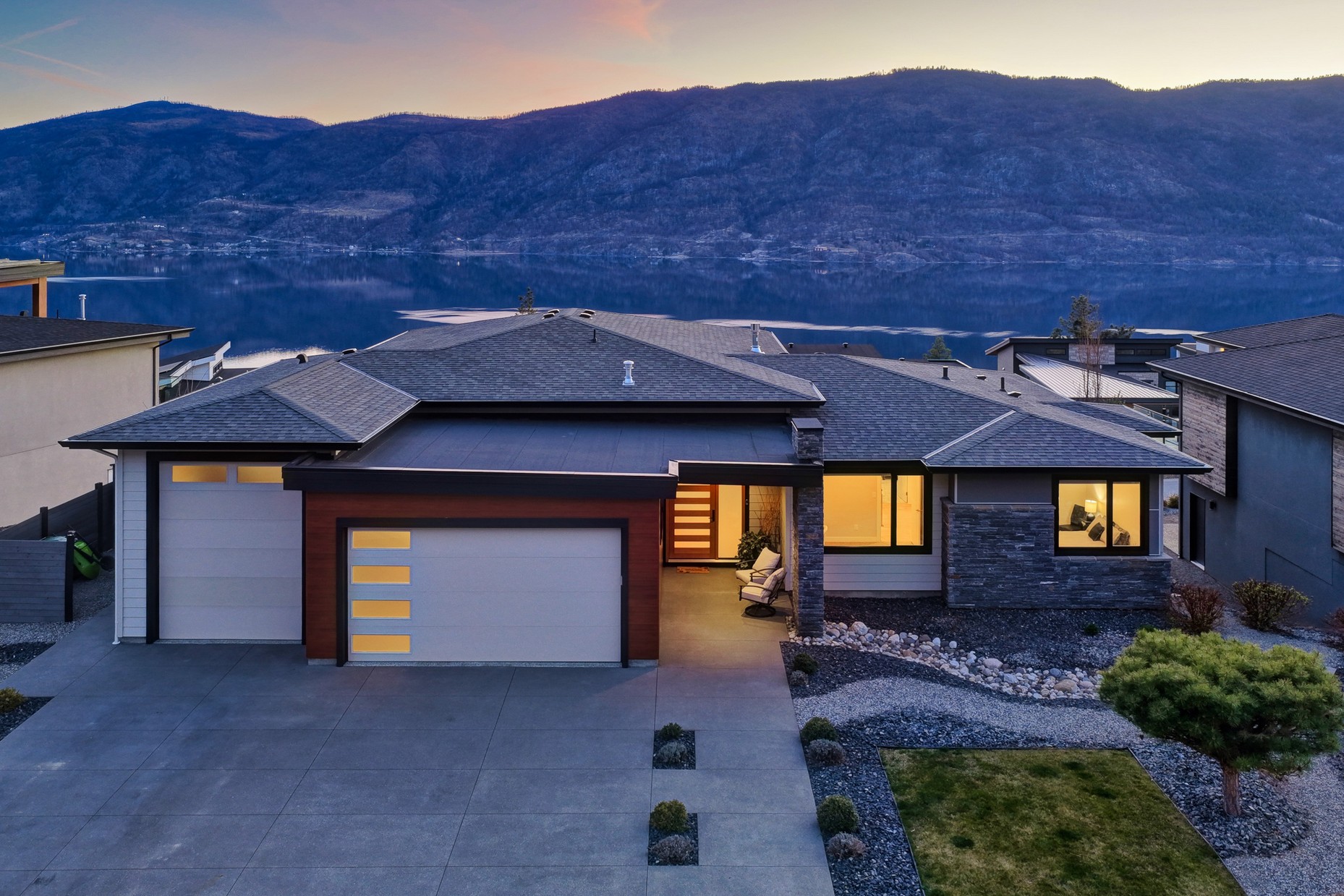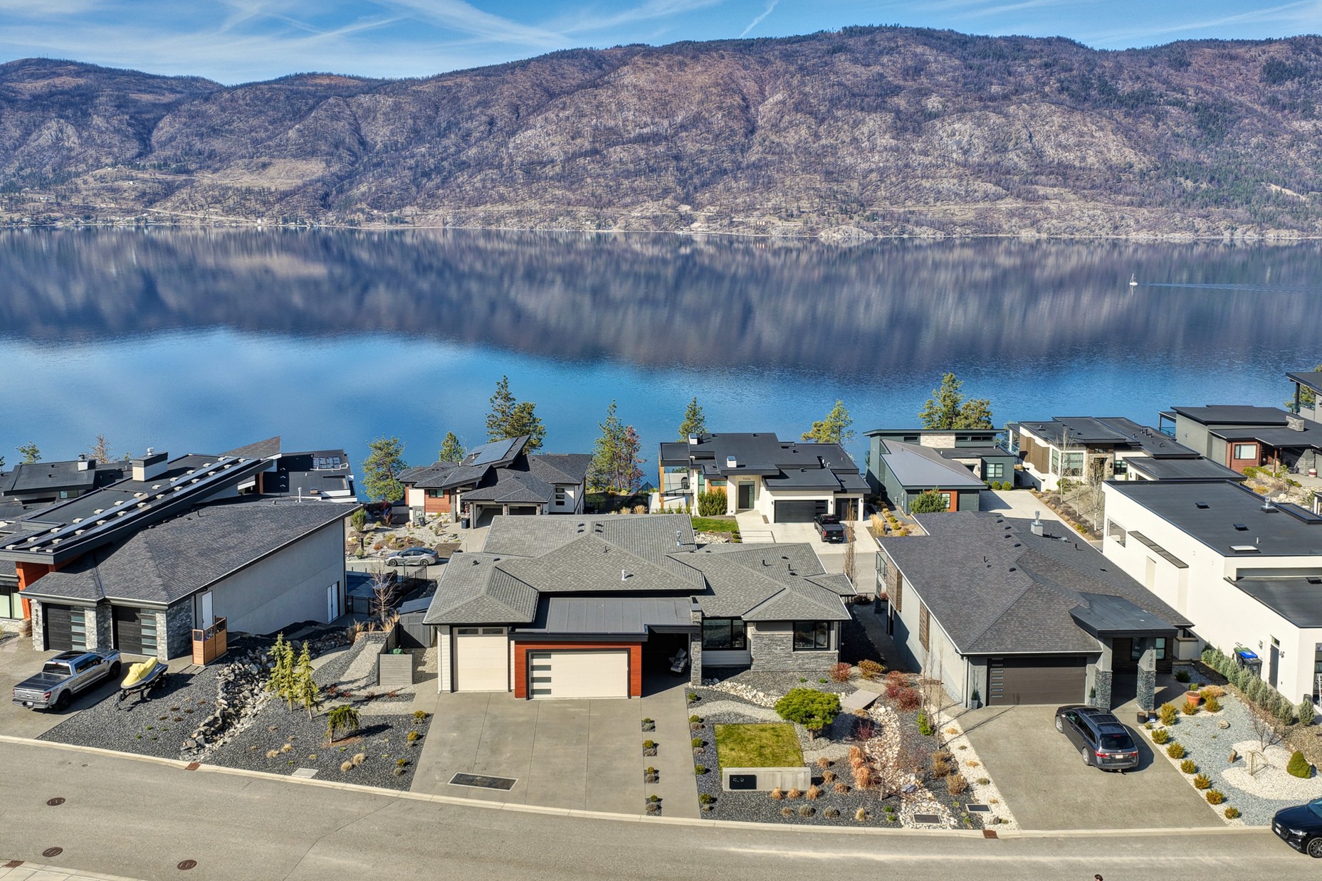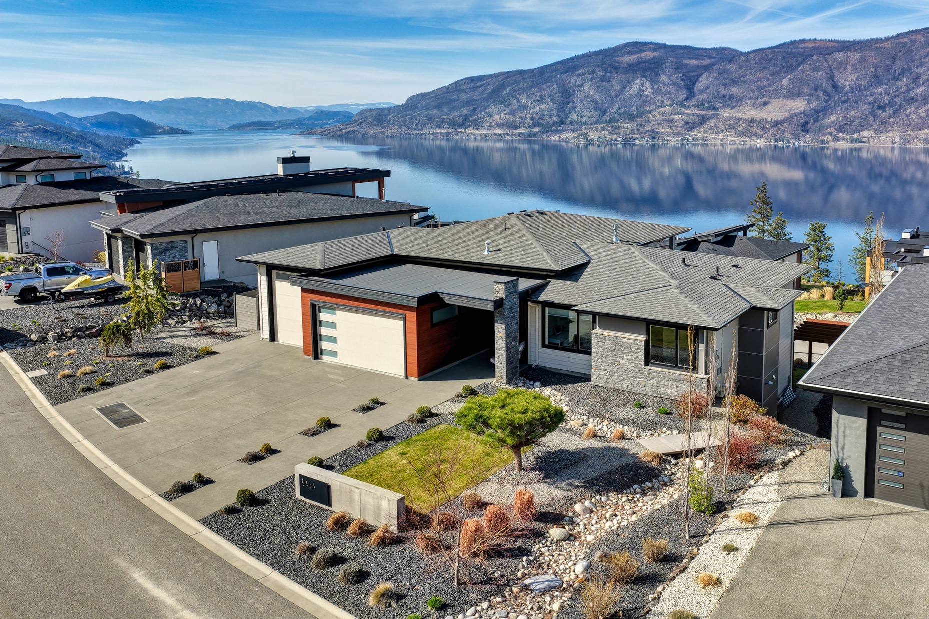 Exceptional custom built residence set on one of Lakestone’s most desirable extra wide lots, showcasing breathtaking 180 degree views of Okanagan Lake. Rare Lakestone offering featuring coveted attached 4 car garage with 11 ft garage door, perfectly suited for a boat with tower, small RV, or multiple vehicles a seldom available feature in this community.