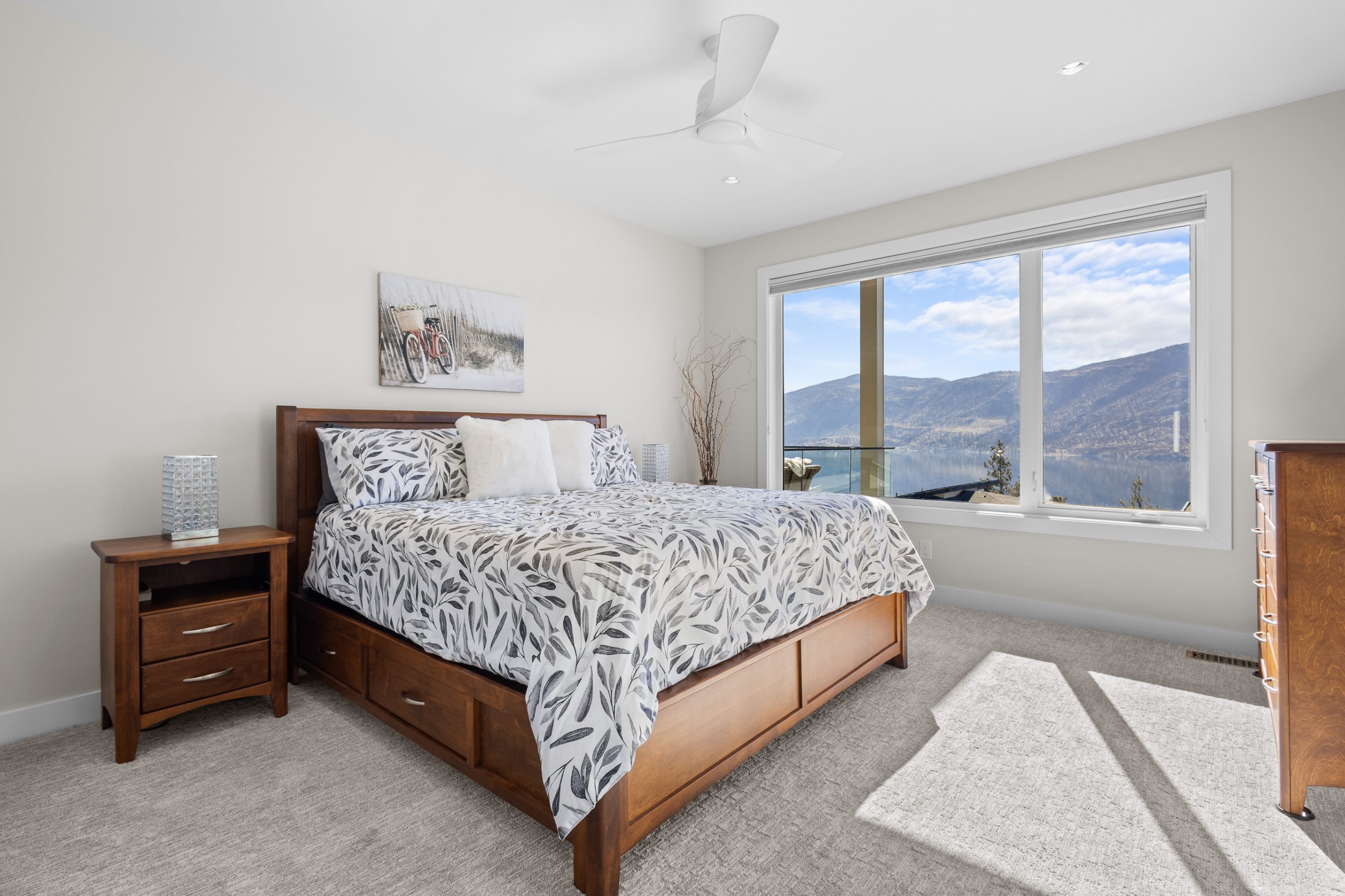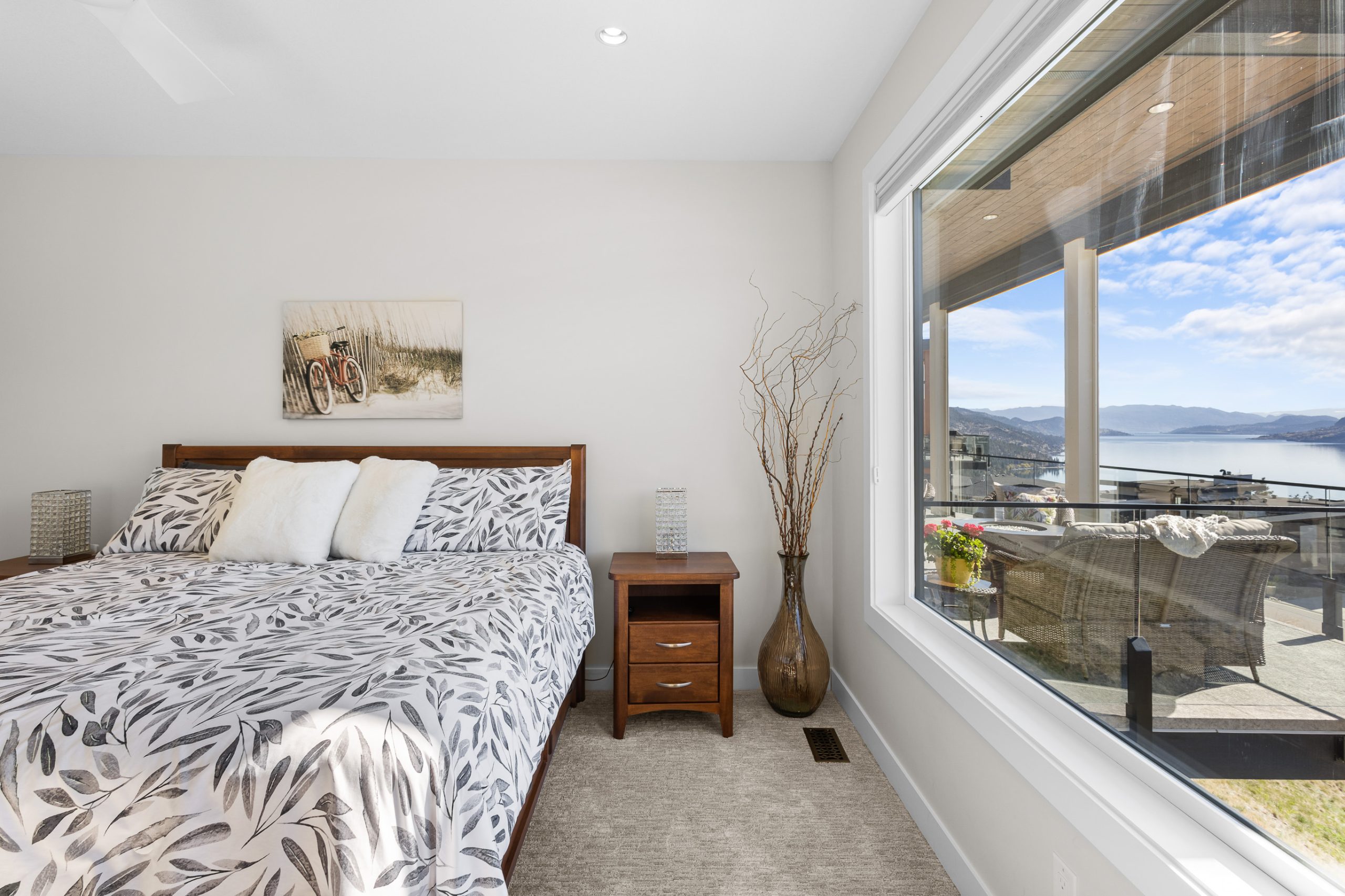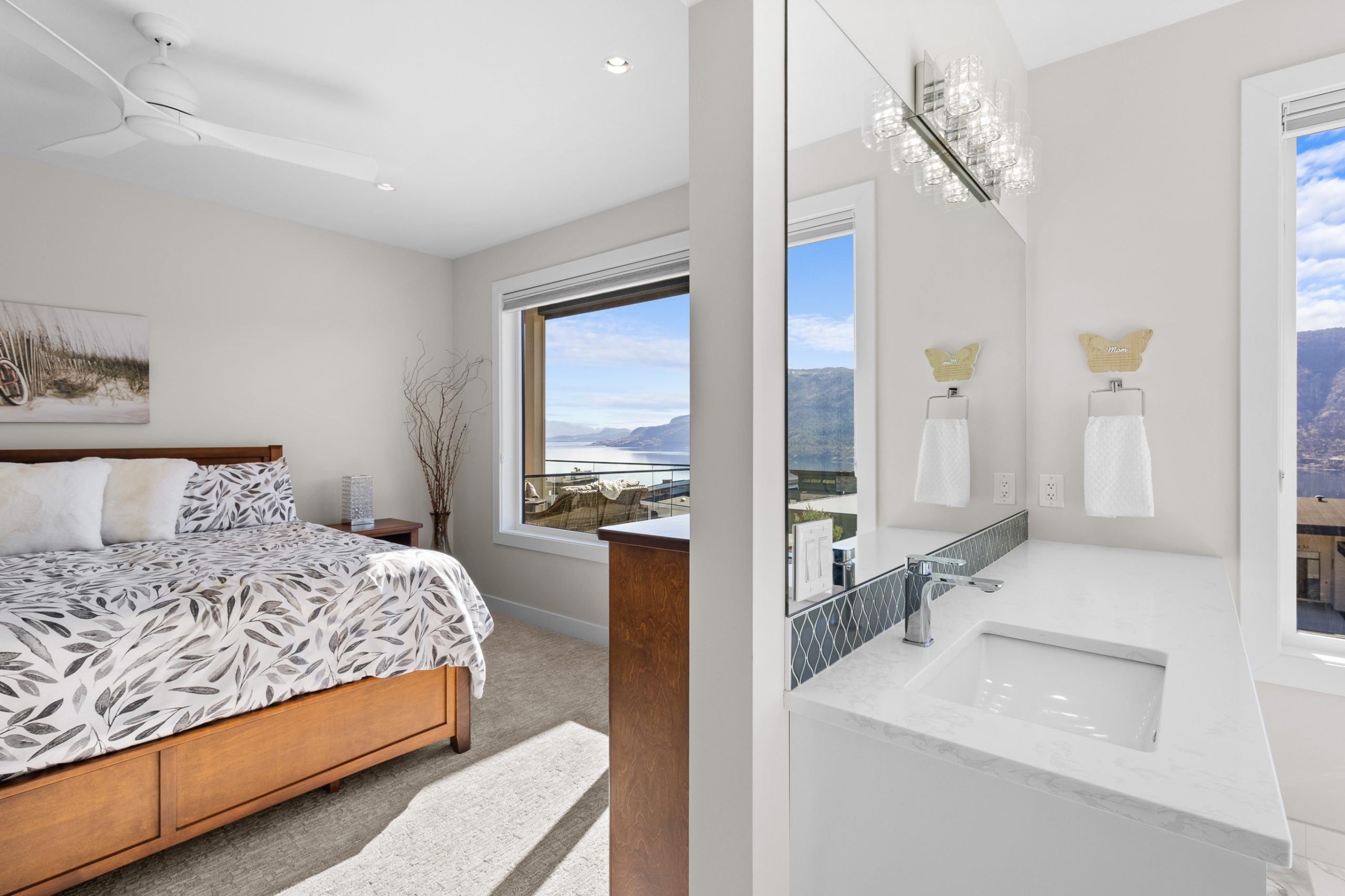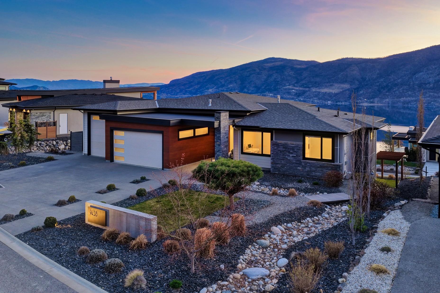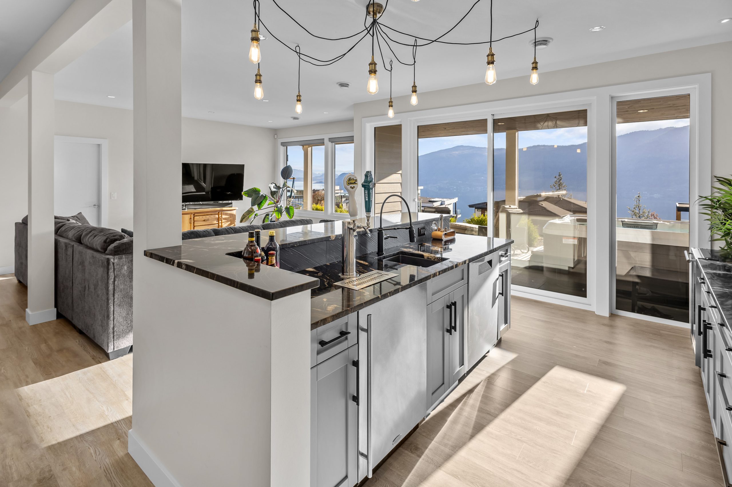 Exceptional custom built residence set on one of Lakestone’s most desirable extra wide lots, showcasing breathtaking 180 degree views of Okanagan Lake. Rare Lakestone offering featuring coveted attached 4 car garage with 11 ft garage door, perfectly suited for a boat with tower, small RV, or multiple vehicles a seldom available feature in this community.