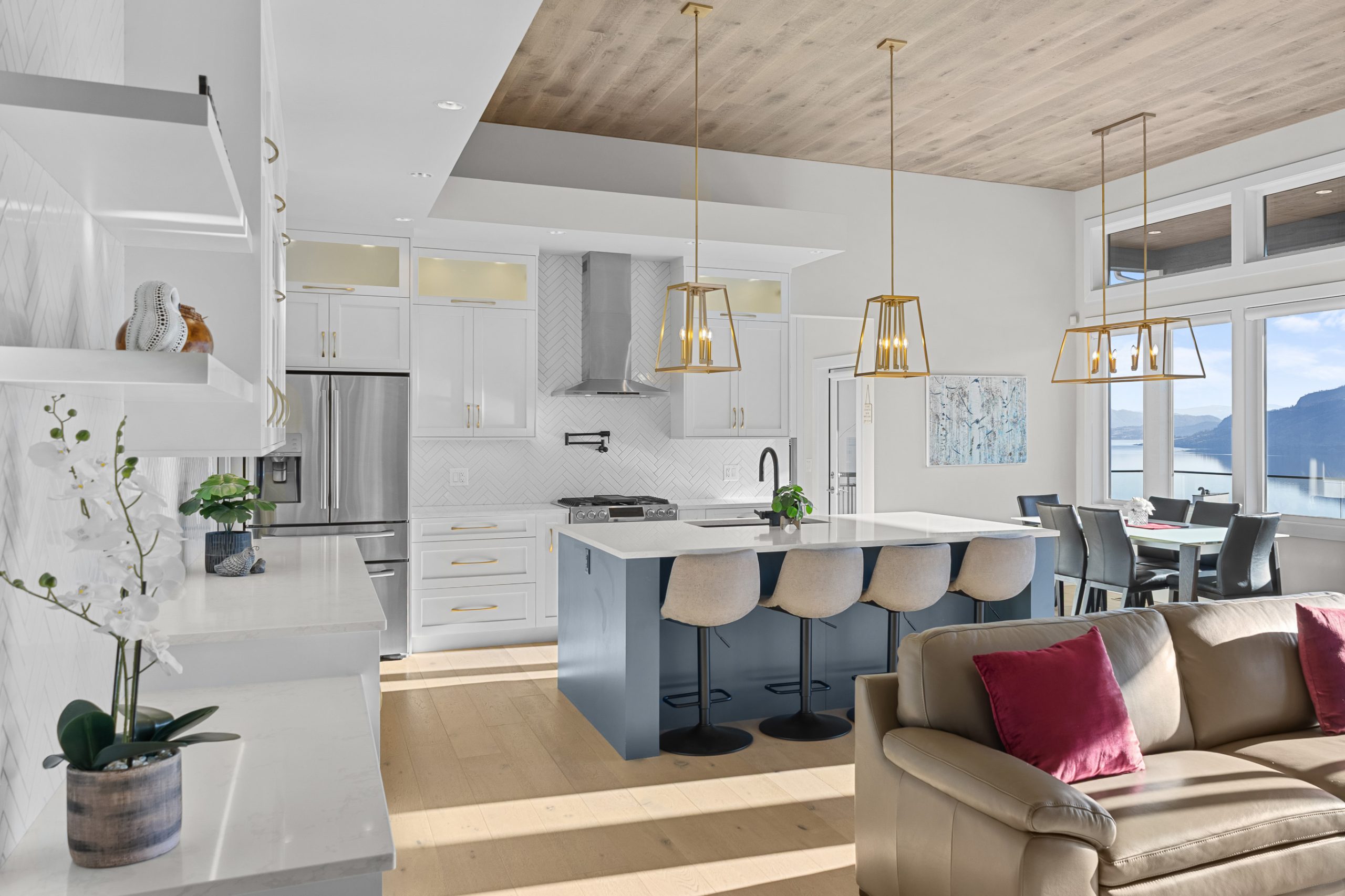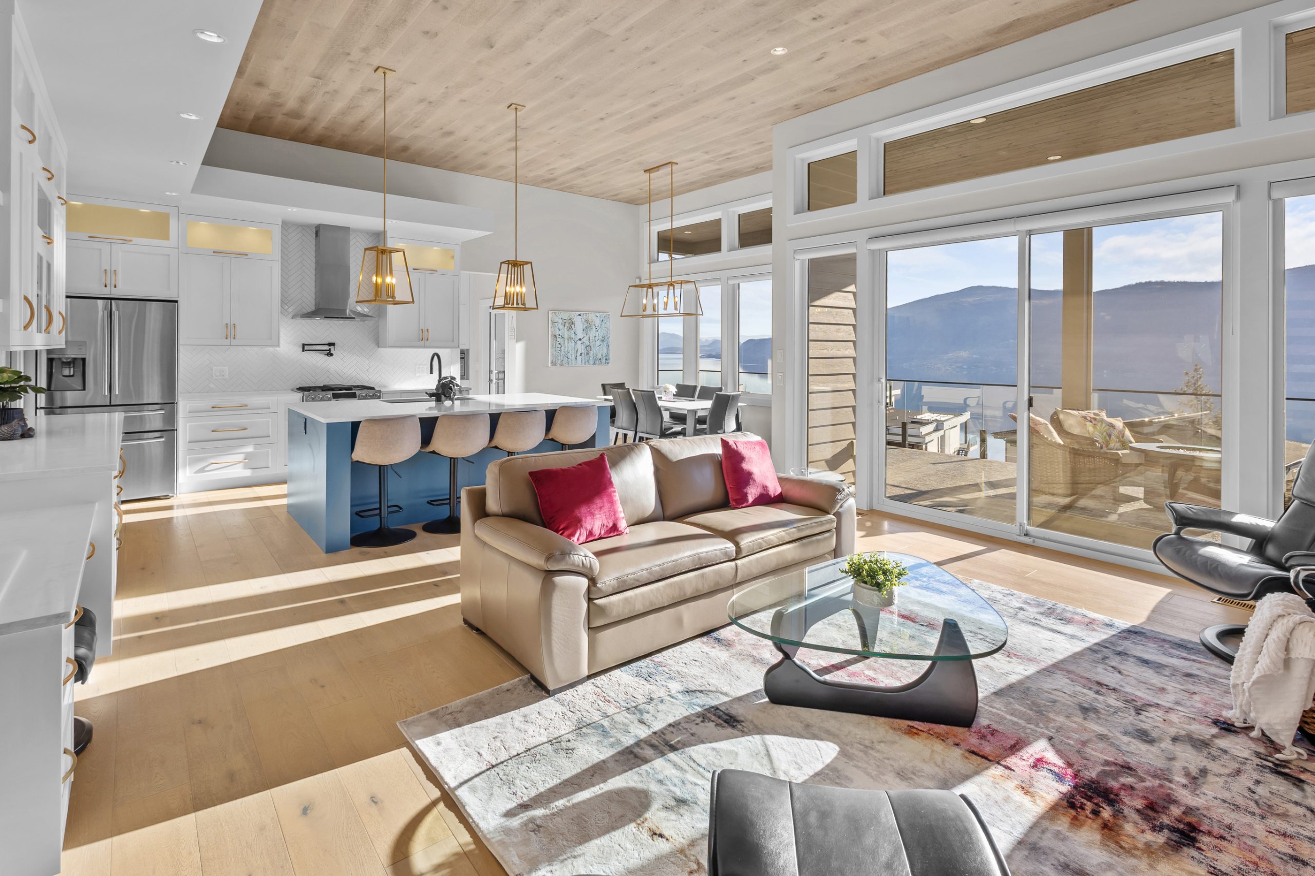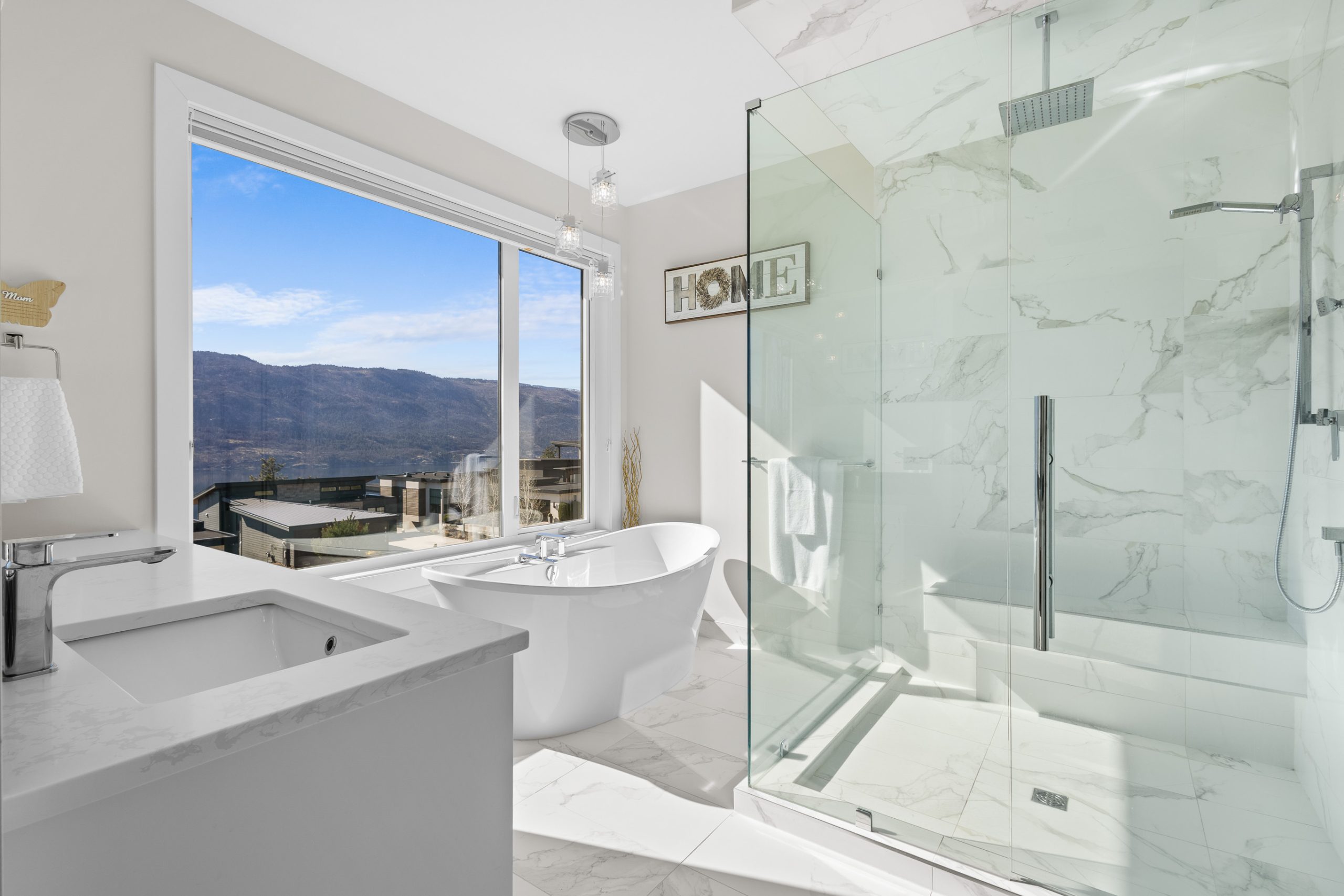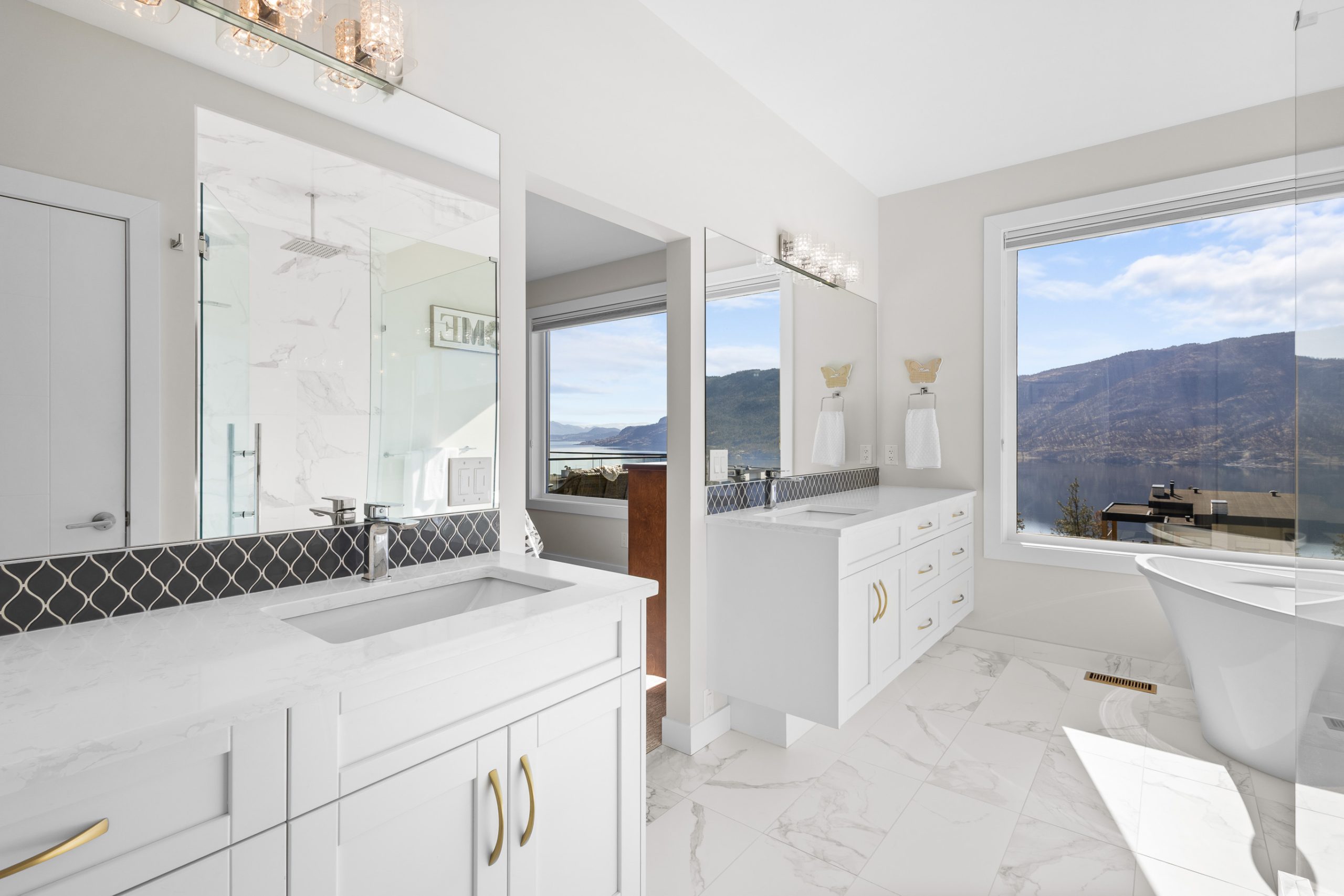 Exceptional custom built residence set on one of Lakestone’s most desirable extra wide lots, showcasing breathtaking 180 degree views of Okanagan Lake. Rare Lakestone offering featuring coveted attached 4 car garage with 11 ft garage door, perfectly suited for a boat with tower, small RV, or multiple vehicles a seldom available feature in this community.