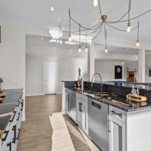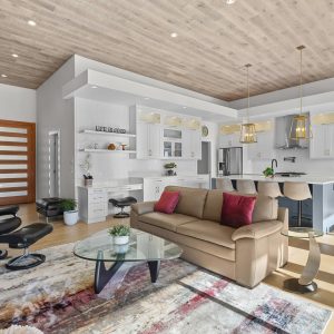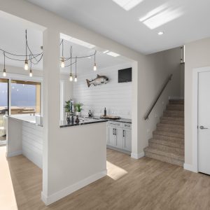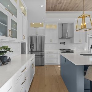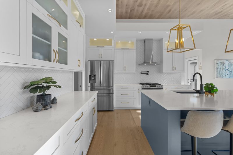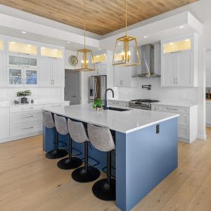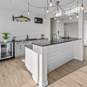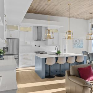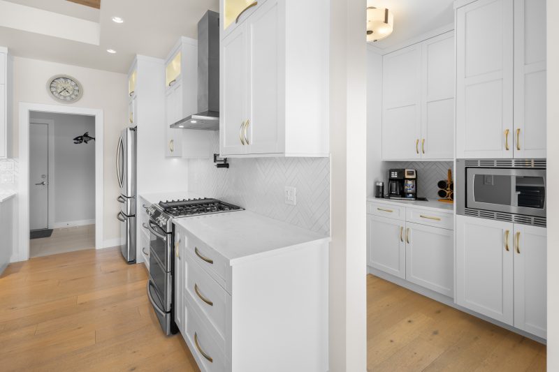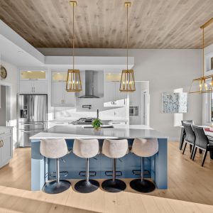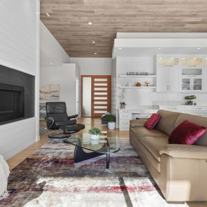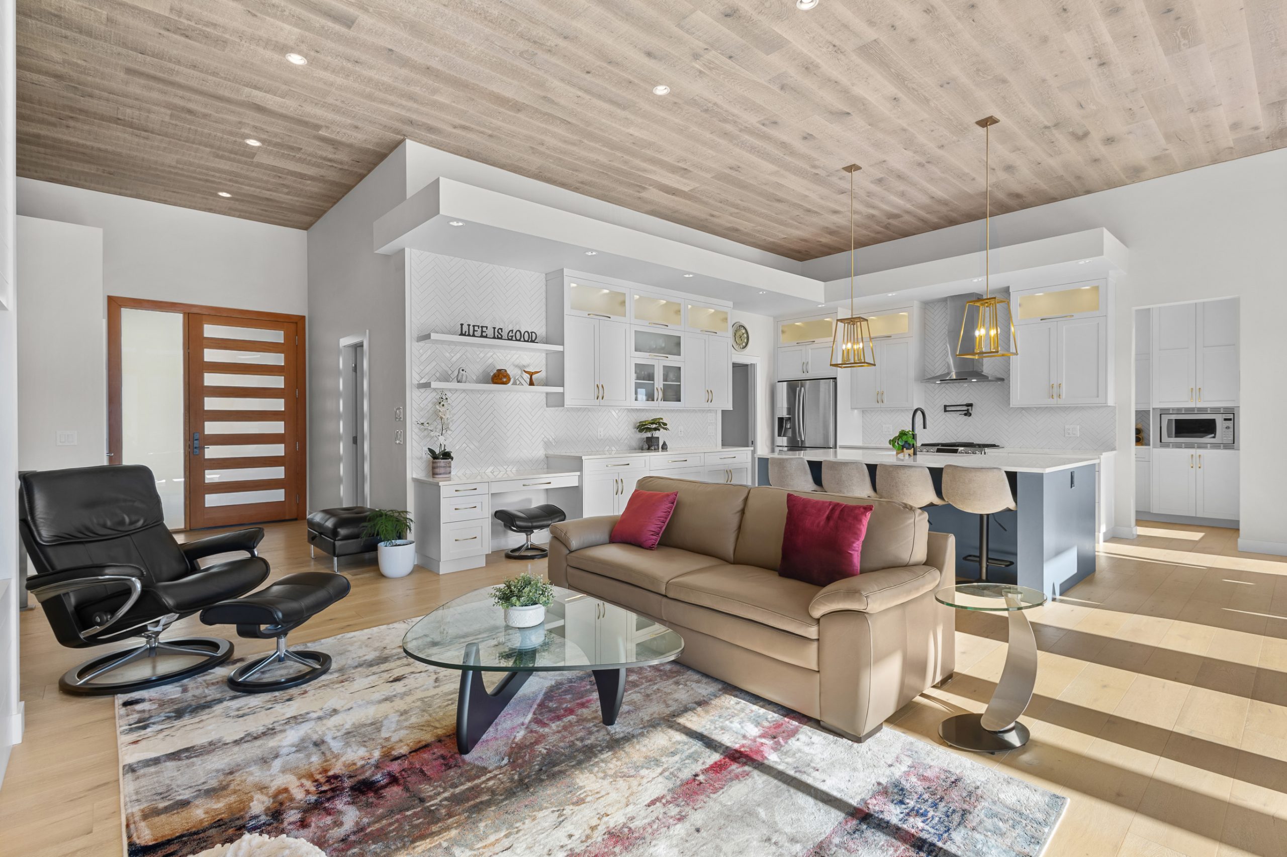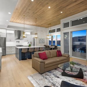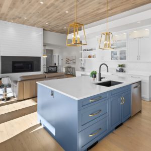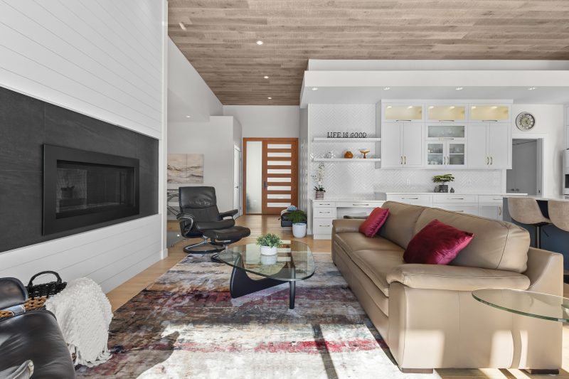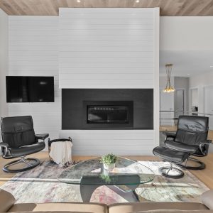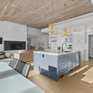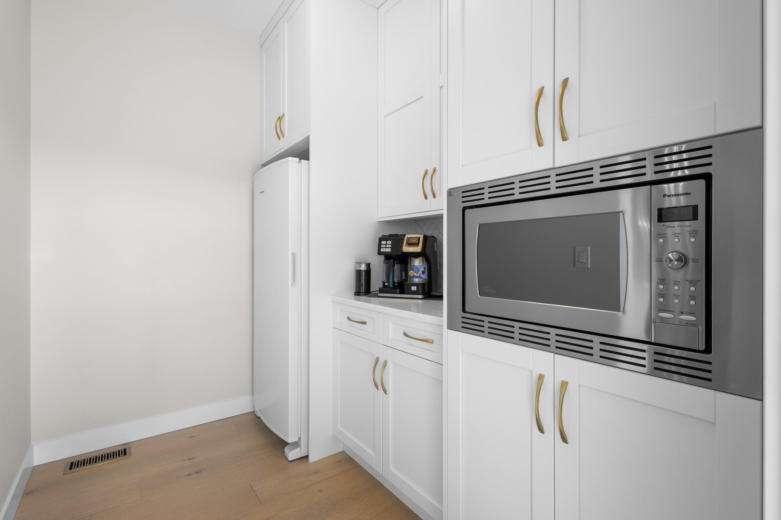 Inside, expansive windows frame stunning lake views from the open concept kitchen, dining, and living areas, creating seamless flow for everyday living and entertaining. The bright kitchen offers generous counter space, abundant cabinetry, and direct access to the view balcony. The living room is anchored by a beautiful fireplace.