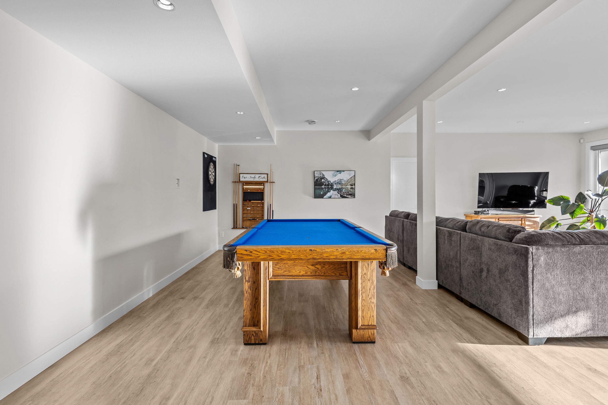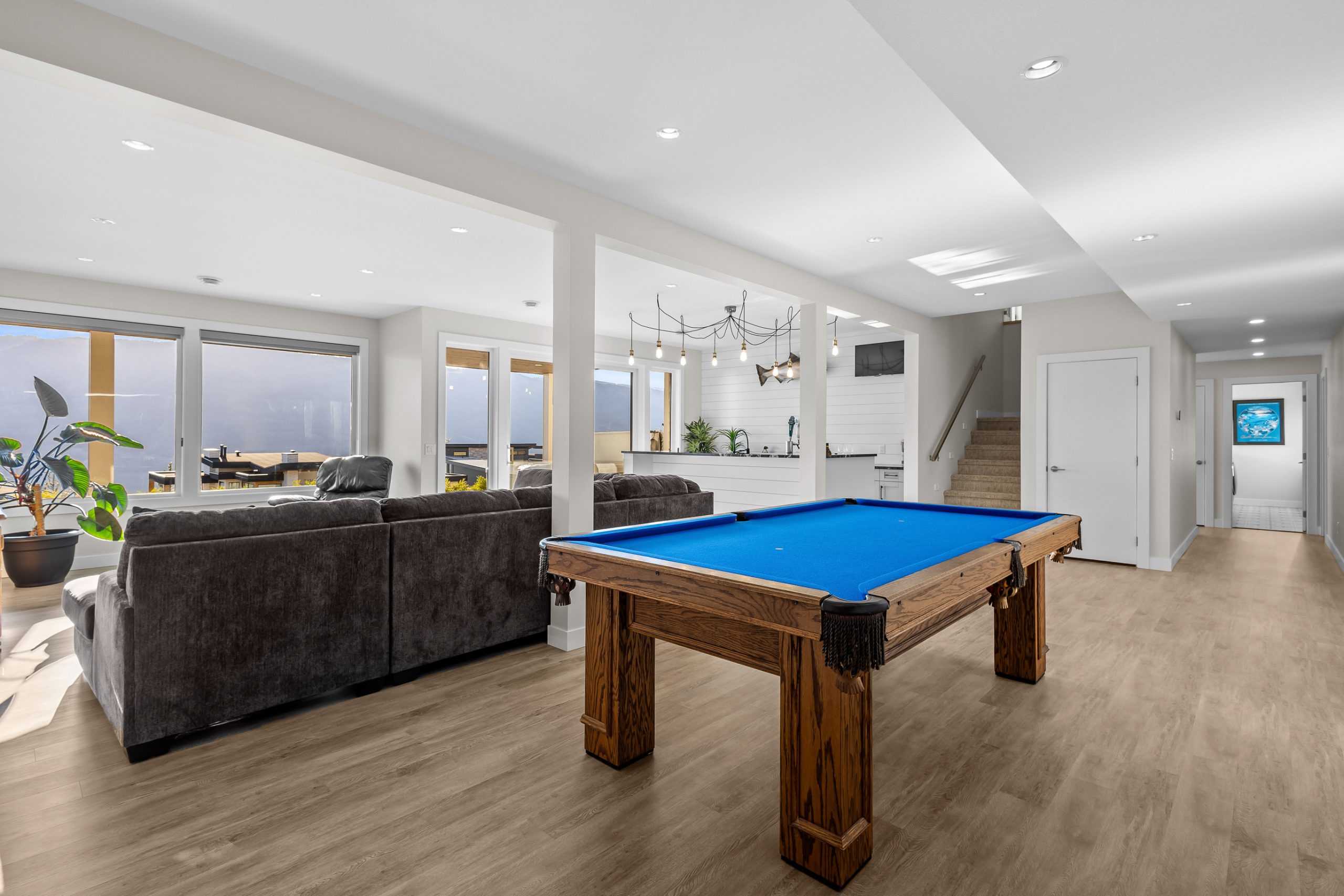 The main floor includes a spacious primary retreat with walk in closet and private ensuite, plus an additional bedroom and dedicated office. The walkout lower level is designed for lifestyle and leisure, featuring a wet bar with keg tap, large family and games room, gym space, and three additional bedrooms. Enjoy the view from lower level patio and hot tub too!