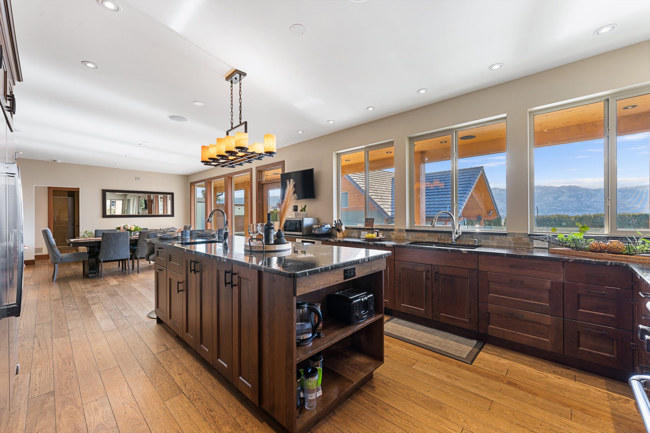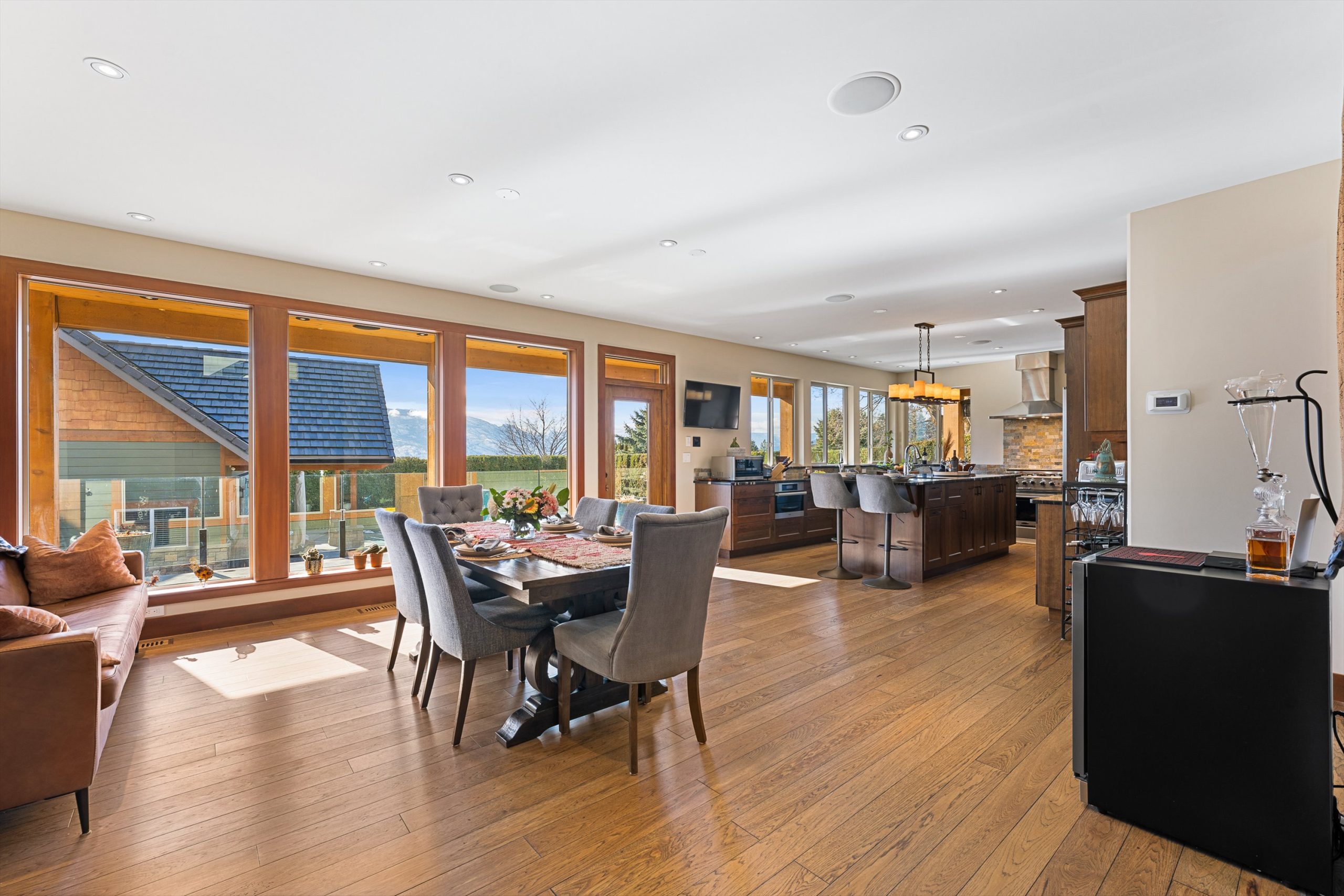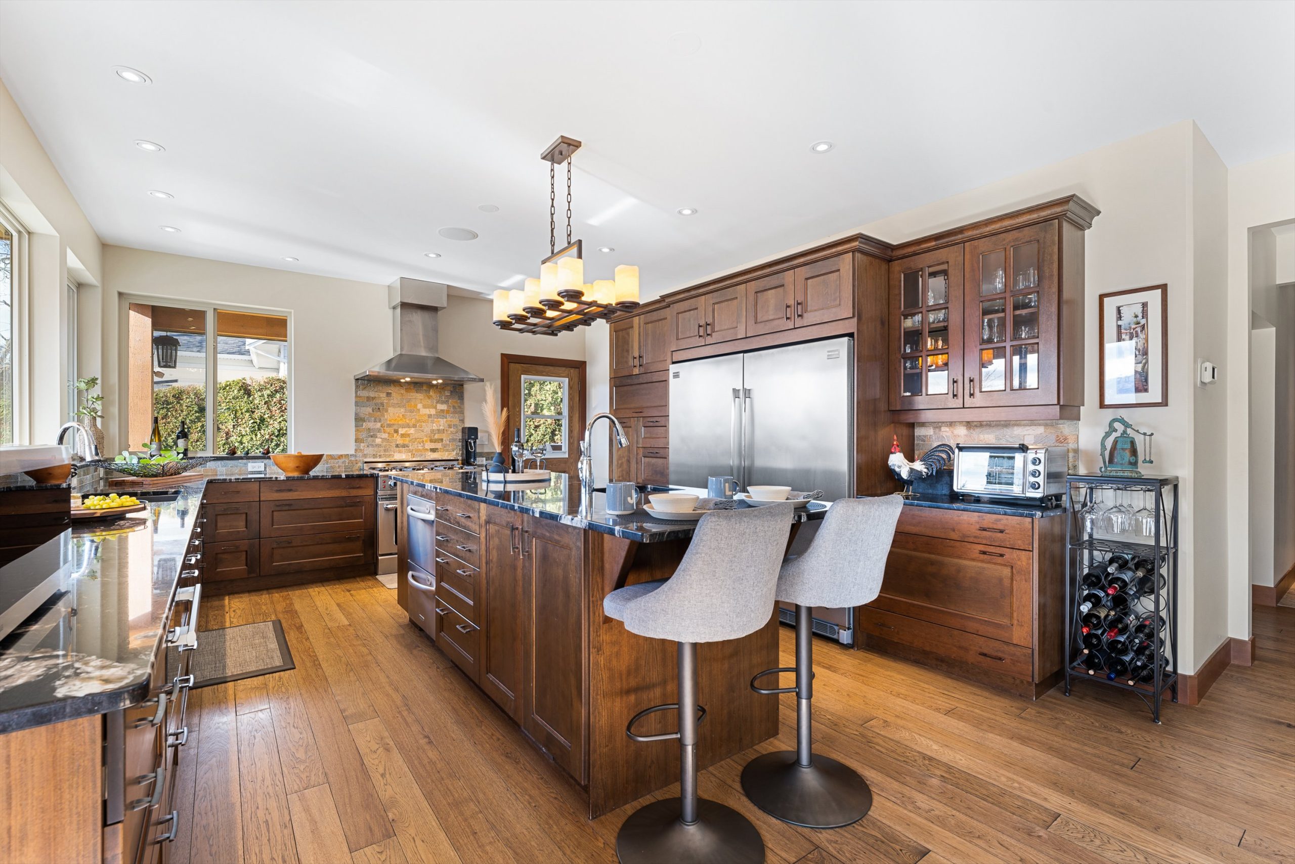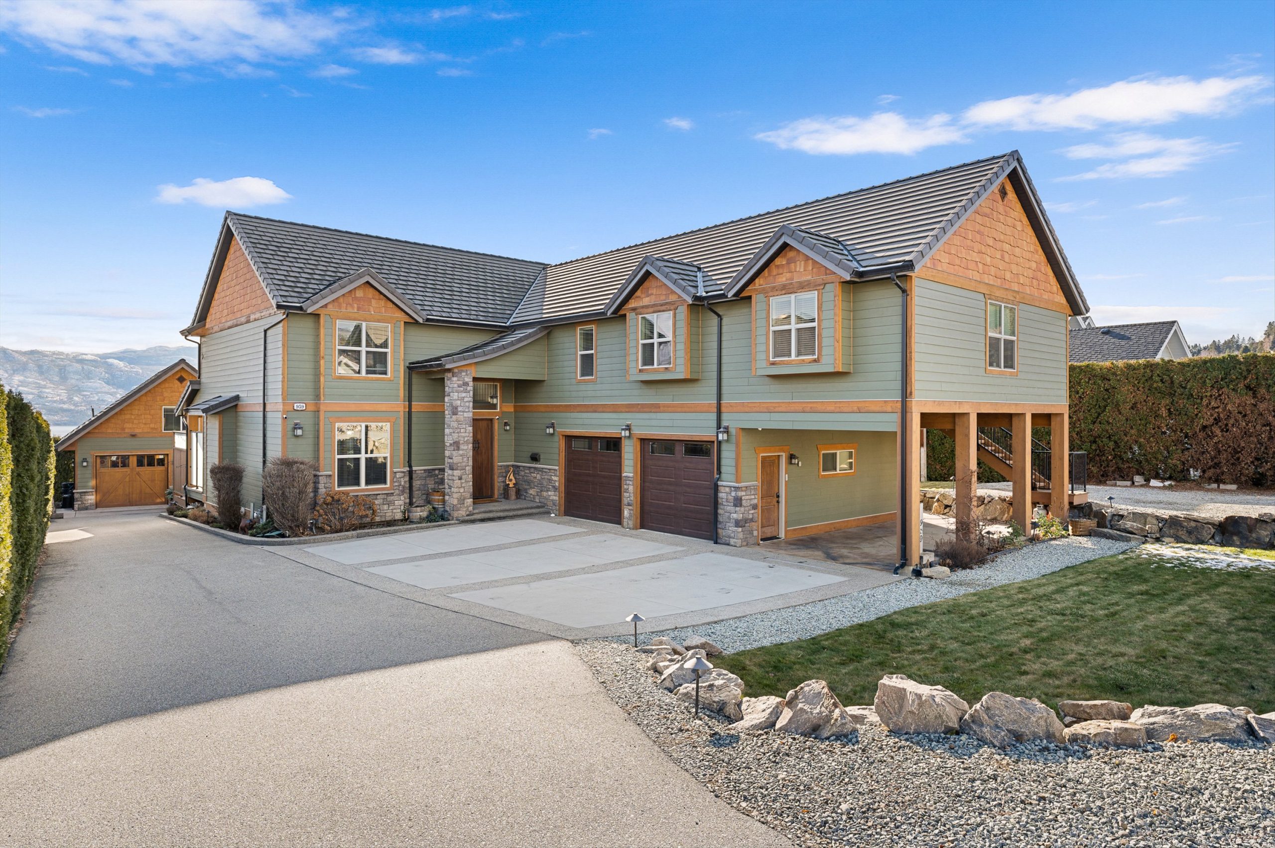 Set on a private 0.36-acre lot in the heart of West Kelowna’s wine country, this West Coast Craftsman offers an exceptional blend of luxury and versatility. Framed by stone, cedar and fibre cement, the home showcases strong architectural lines, soaring ceilings and quality finishes, hickory plank hardwood, cherry and bamboo cabinetry, fir doors and premium quartz and granite throughout.