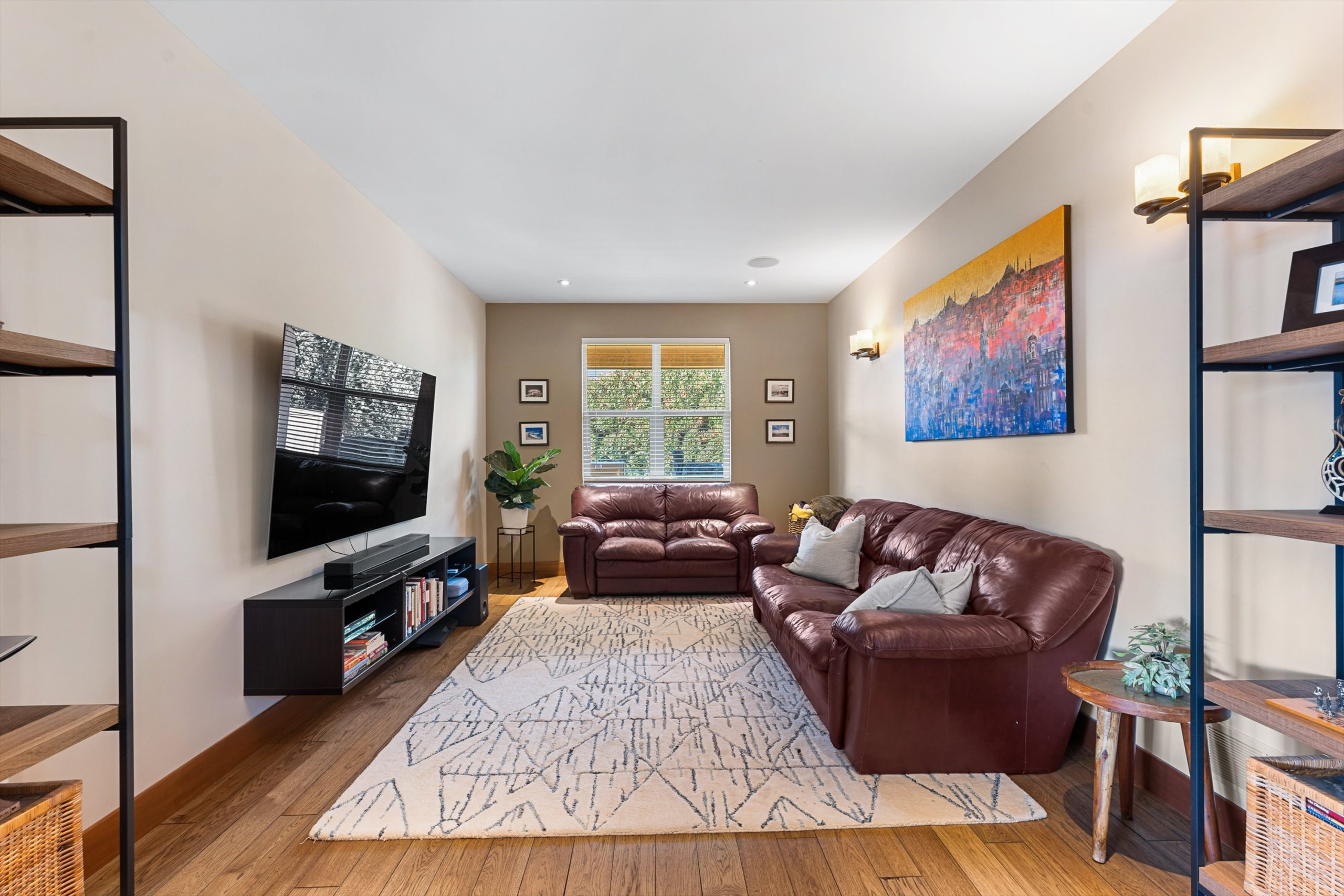 Designed for gathering, the main level opens to a chef’s kitchen with titanium black granite, Culinarian 6-burner gas range, Miele steam oven and expansive island, all flowing seamlessly to dining and living spaces with in-ceiling audio and Lutron lighting.