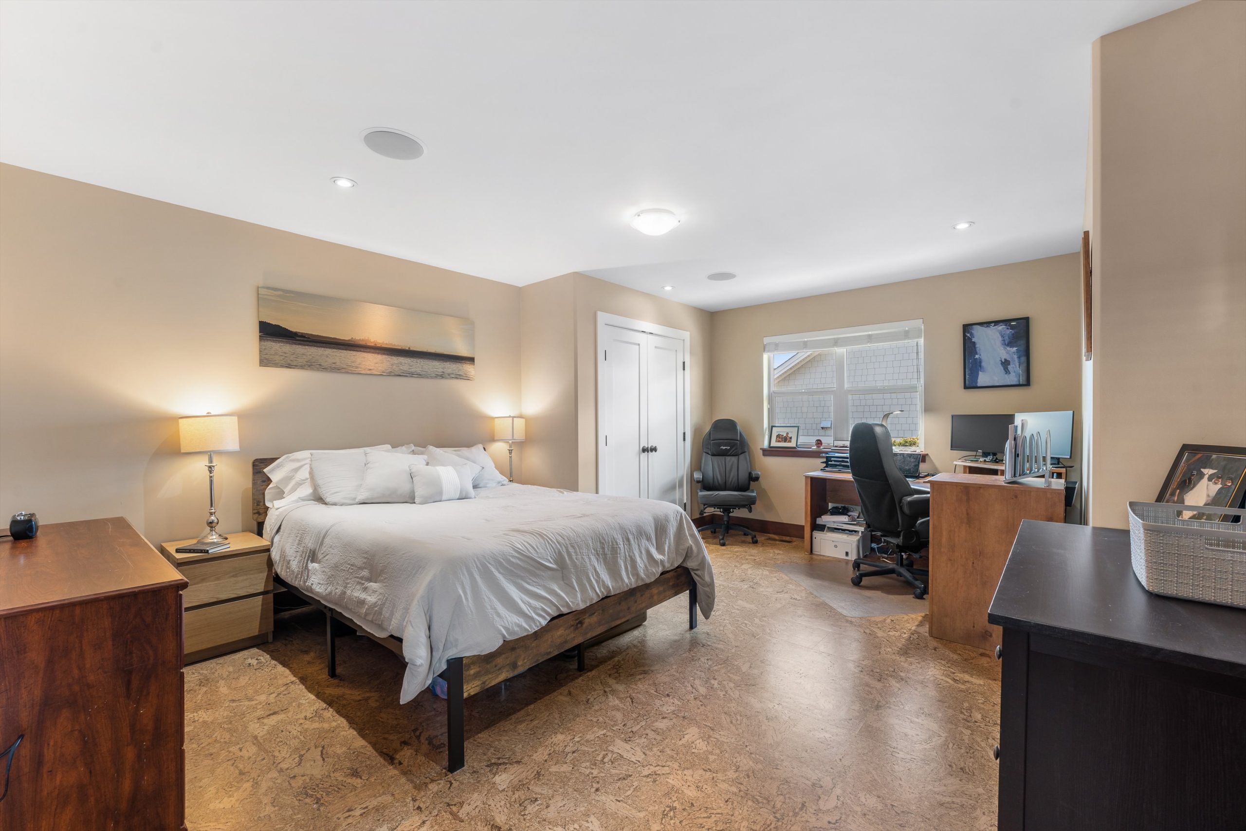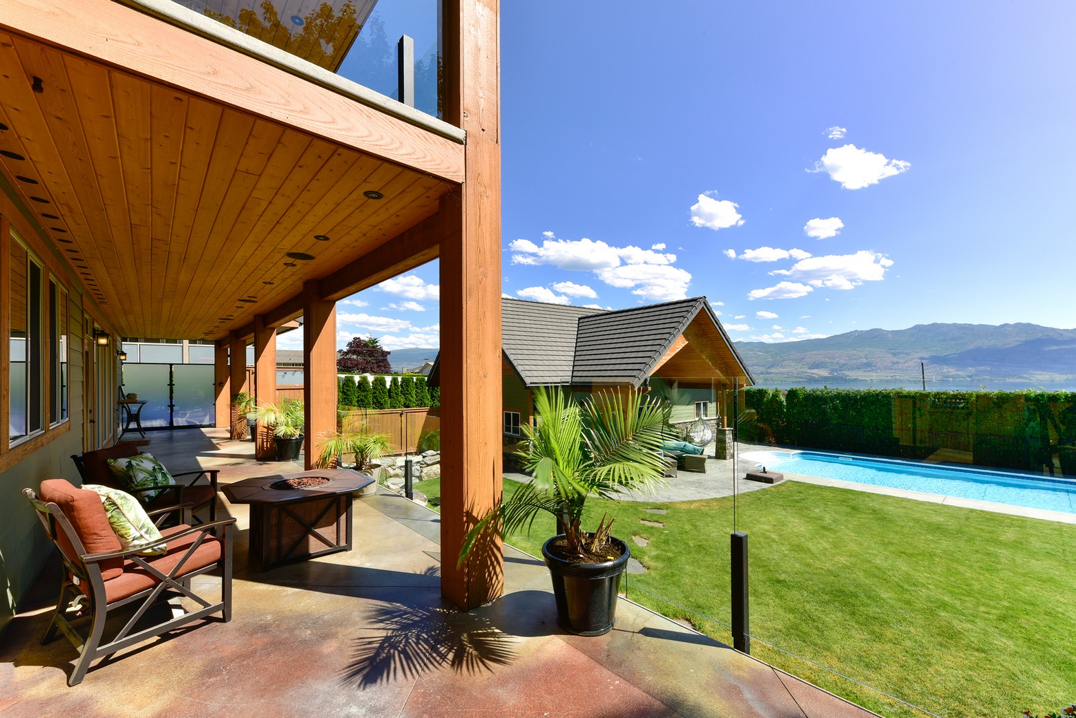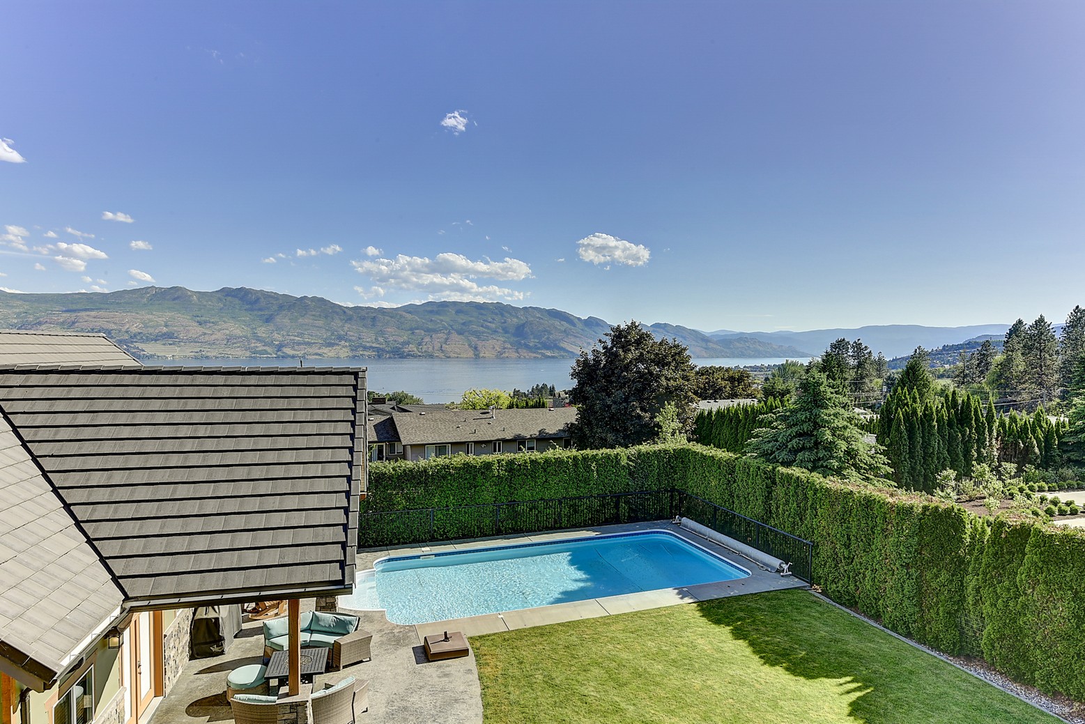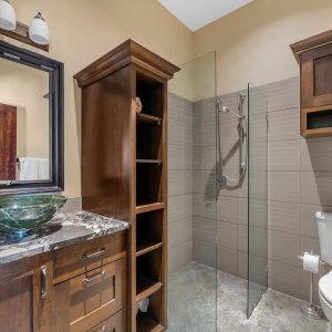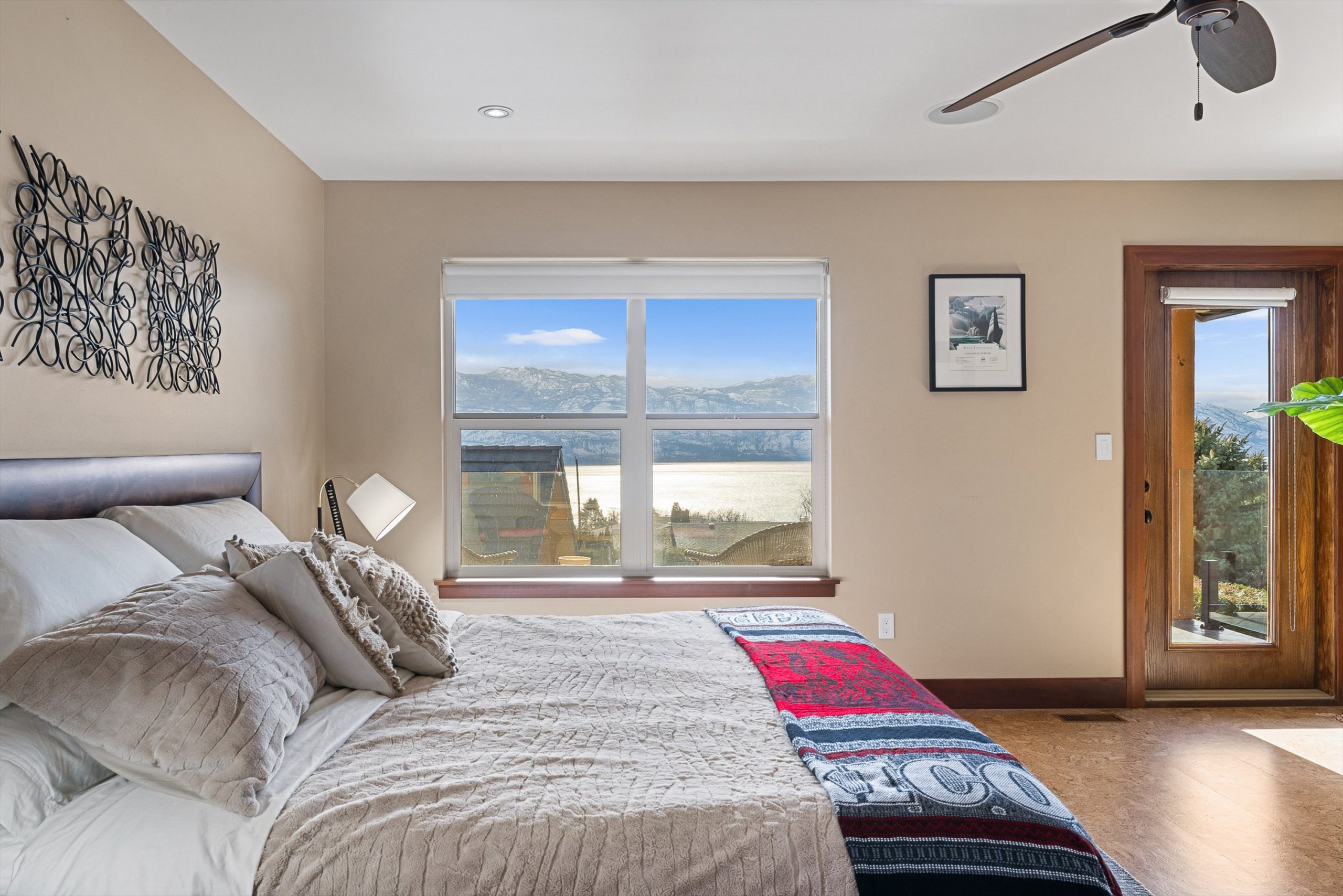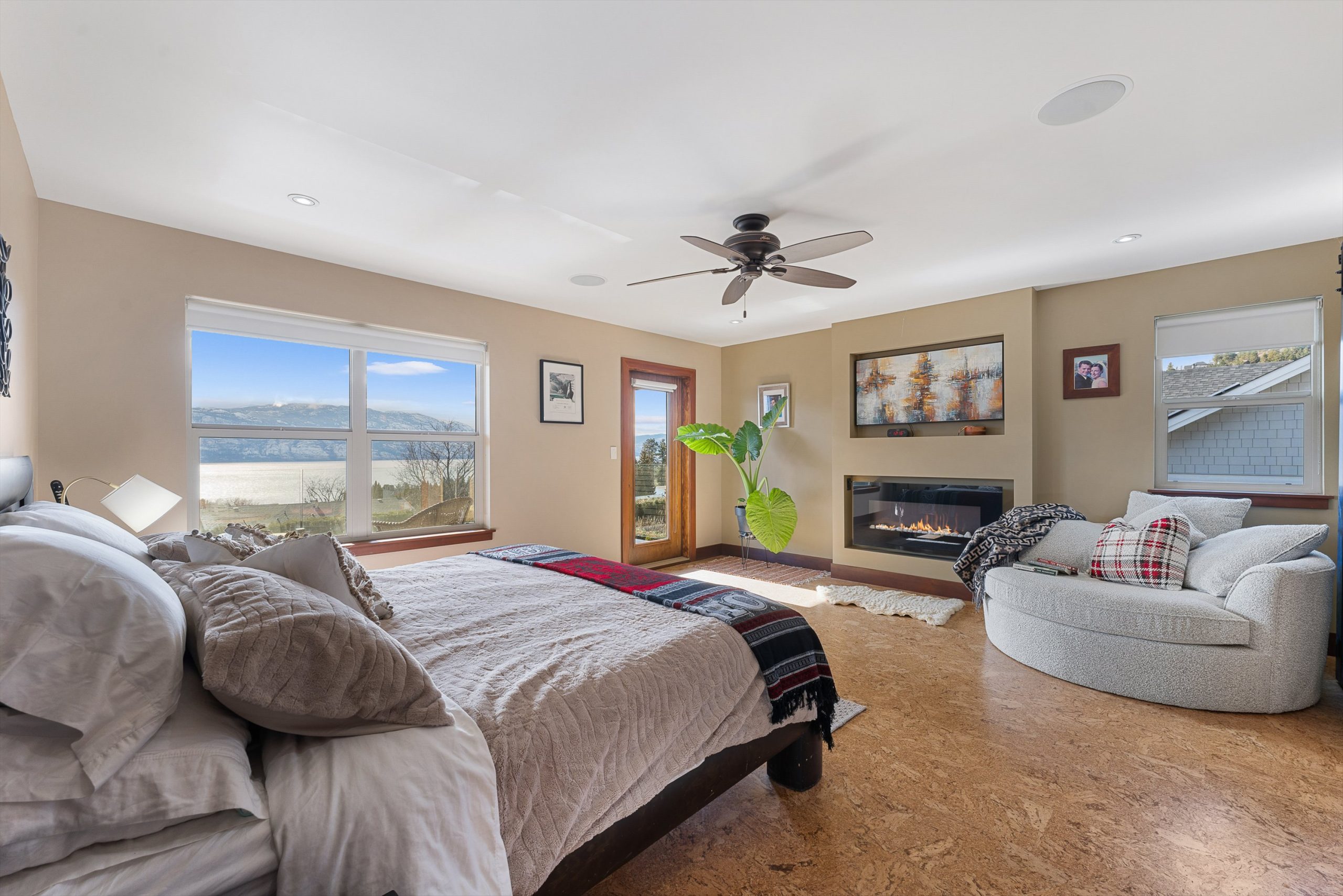 Three additional bedrooms complete the upper level. A legal suite above the garage offers income or guest flexibility, while the detached pool house, with bedroom, bath, kitchenette and separate garage/workshop, adds rare multigenerational potential. With RV parking, wine cellar, climate control systems and walking access to Boucherie Road’s trail, wineries and beaches, this is refined Okanagan living.
